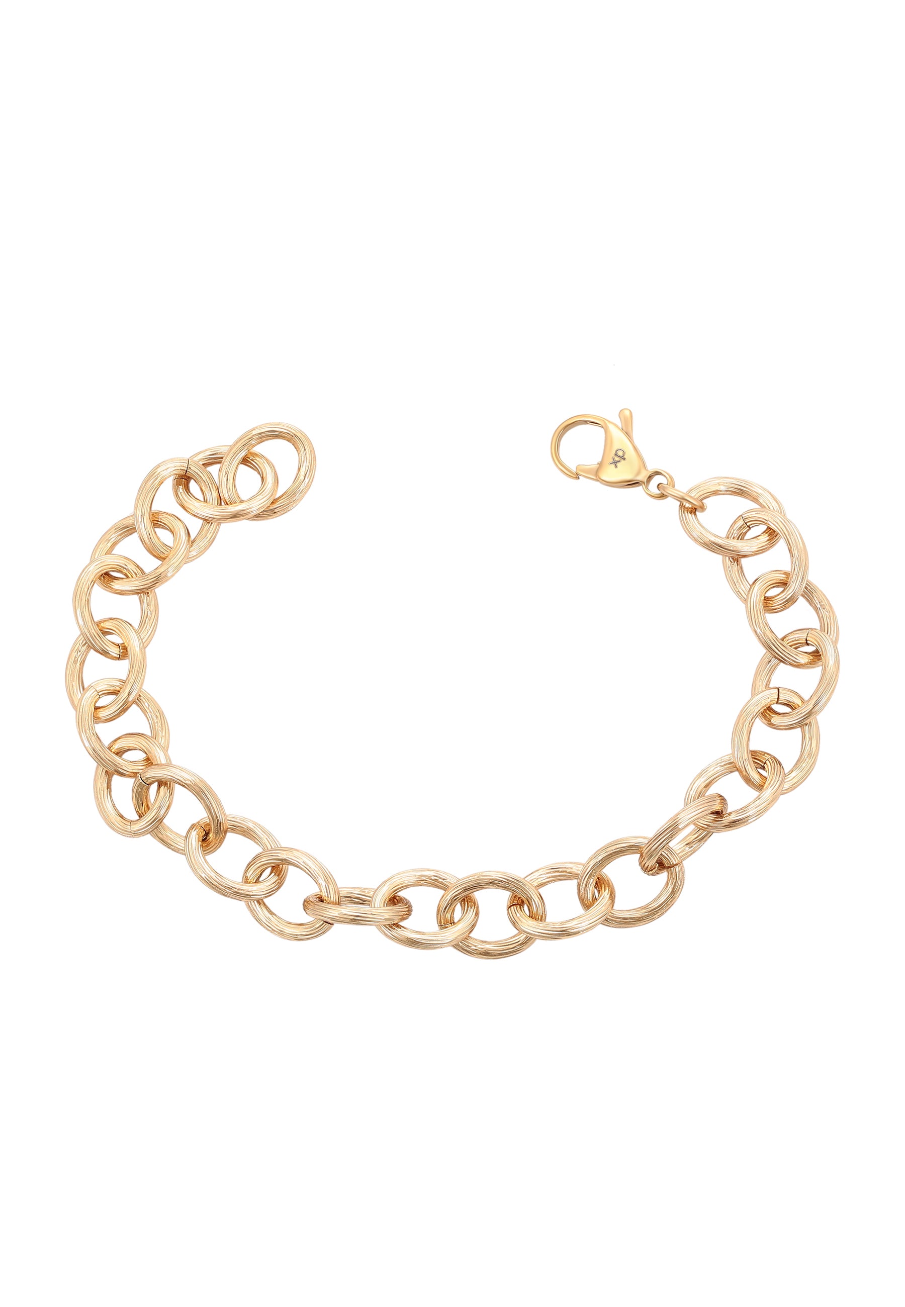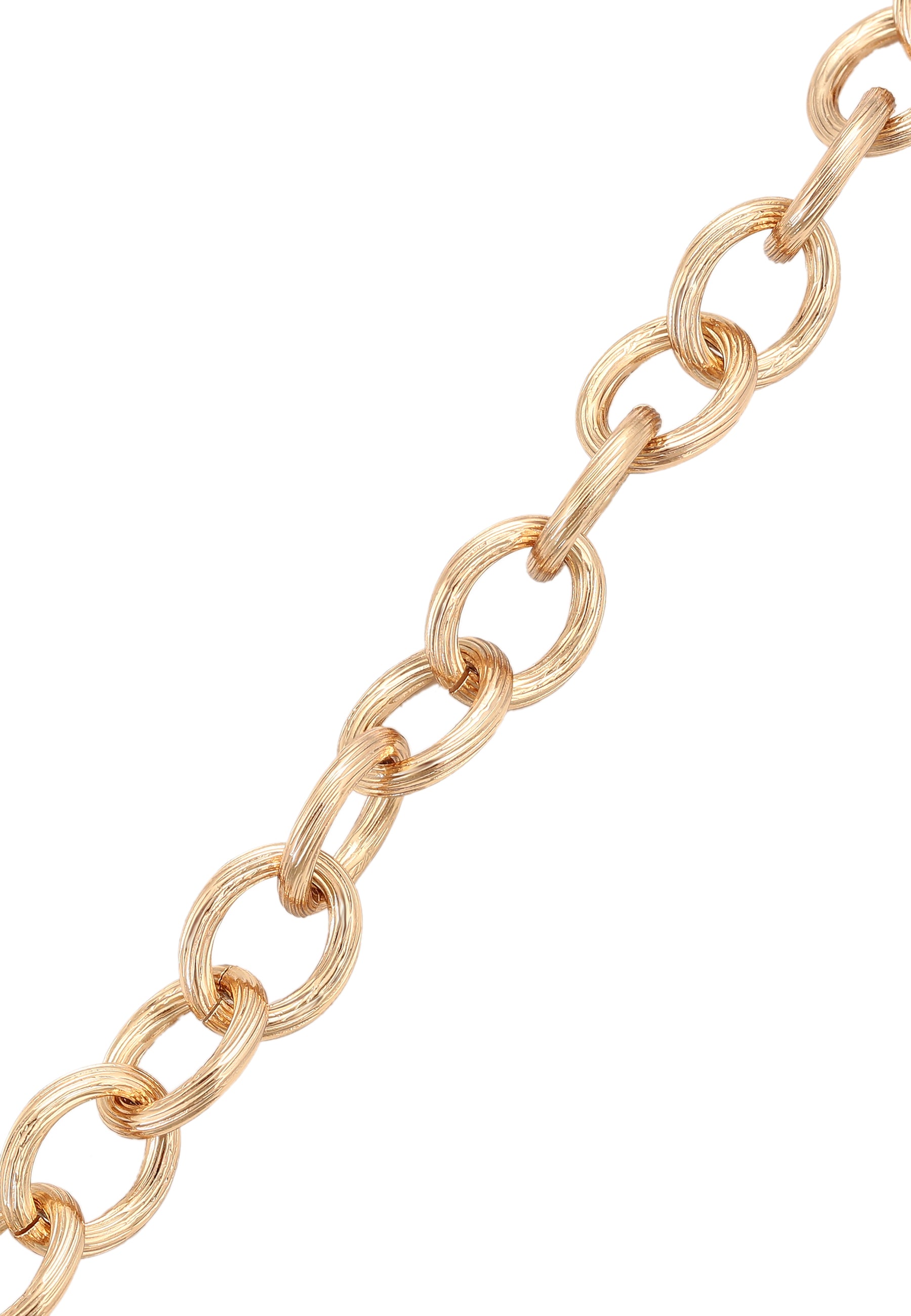 Ta elegancka bransoletka z okrągłych ogniw z Kolekcji Biżuterii wykonana jest z miedzi i posiada wyrafinowany, teksturowany wzór. Zaprojektowana z bezpiecznym zapięciem typu karabińczyk, oferuje zarówno komfort, jak i trwałość. Jej uniwersalny i ponadczasowy styl sprawia, że jest idealnym dodatkiem do podkreślenia każdej stylizacji, od codziennego noszenia po specjalne okazje. Wyrafinowany i trwały dodatek do każdej kolekcji biżuterii.