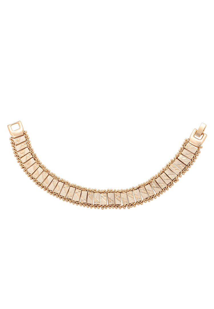 Ta elegancka bransoletka z segmentowanym łańcuszkiem z Kolekcji Biżuterii zawiera delikatne koraliki i wyrafinowany teksturowany wzór, wszystko wykonane z trwałej miedzi. Zaprojektowana z bezpiecznym zapięciem na zatrzask, oferuje zarówno komfort, jak i niezawodność. Jej wszechstronny i ponadczasowy styl sprawia, że jest idealnym dodatkiem do każdego stroju, od codziennego po formalny. Wyrafinowany i trwały dodatek do każdej kolekcji biżuterii.