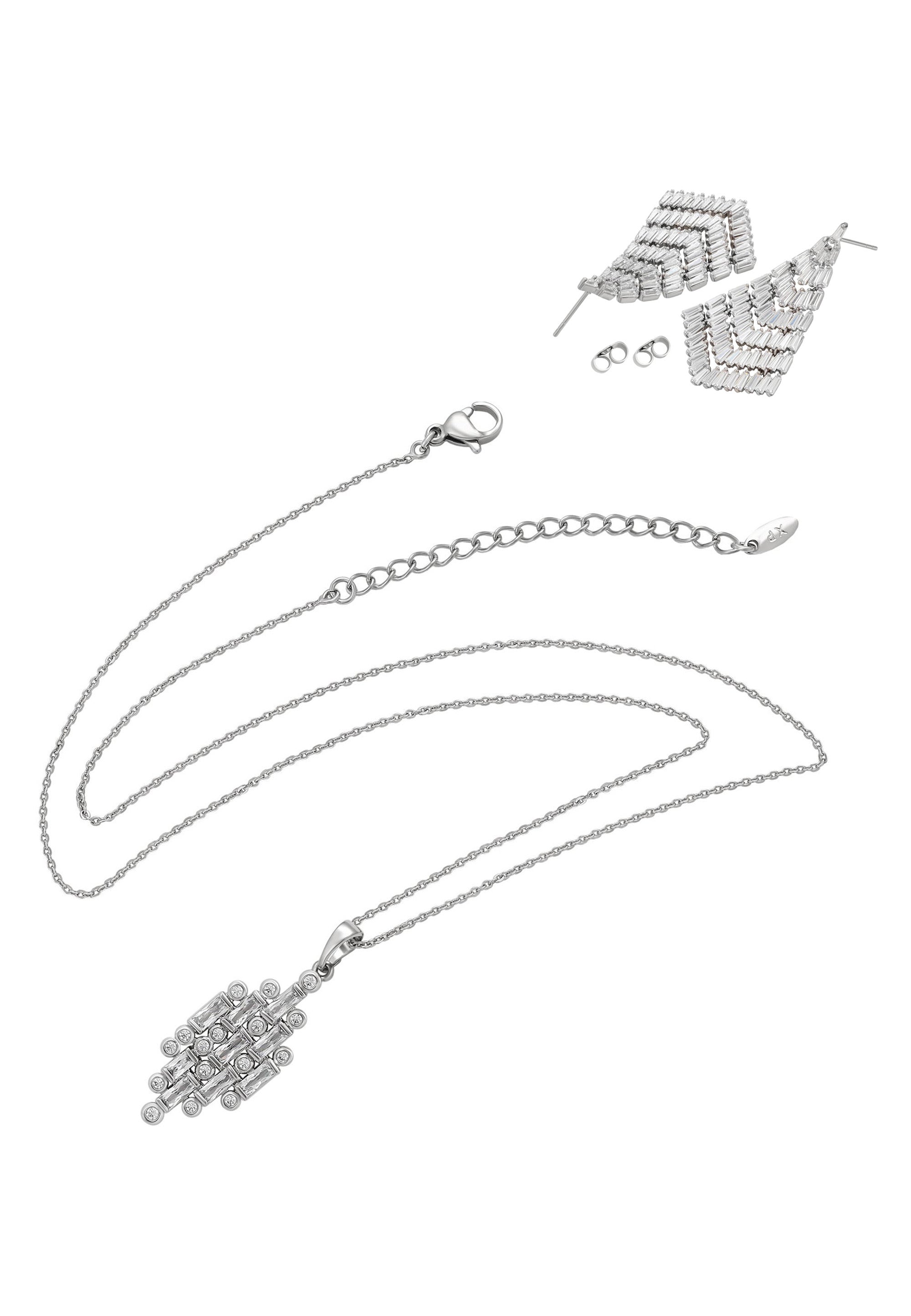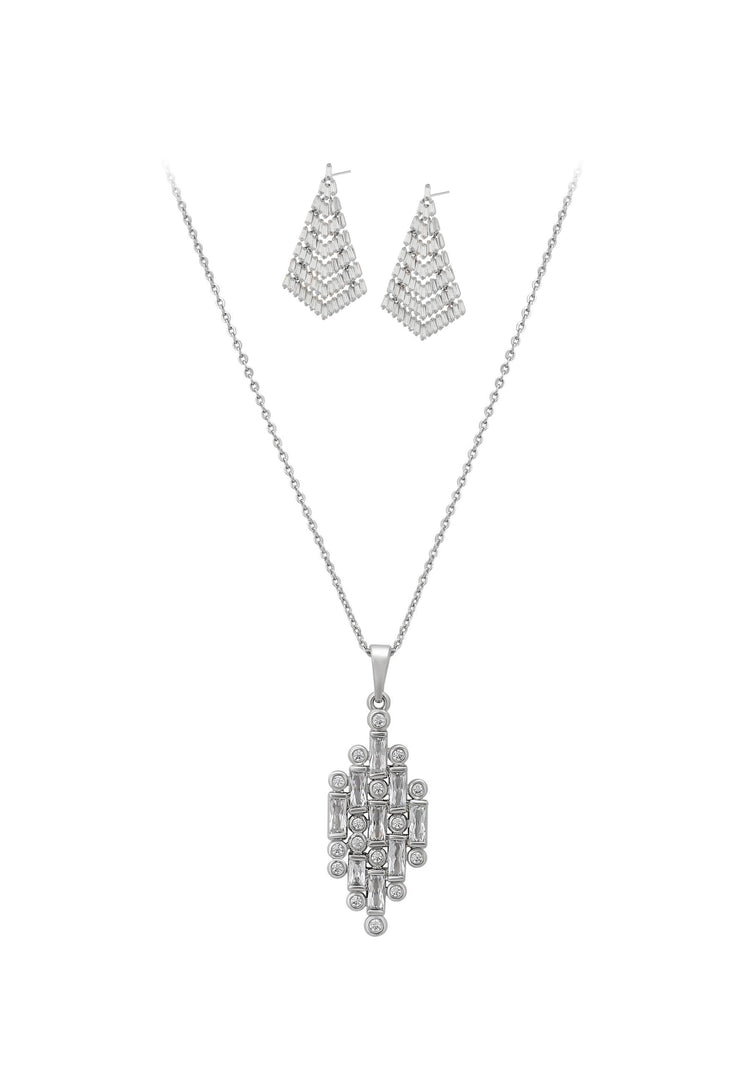Podkreśl swój wygląd tym wykwintnym zestawem biżuterii z naszej kolekcji biżuterii. Ten elegancki zestaw naszyjnik + kolczyki wykonany jest z miedzi i posiada błyszczący wzór, który pięknie odbija światło. Naszyjnik z łańcuszkiem prezentuje zawieszkę wysadzaną kryształami, natomiast pasujące kolczyki wiszące ozdobione są błyszczącymi cyrkoniami i zabezpieczone zapięciami motylkowymi. Zaprojektowany tak, aby być wszechstronny i ponadczasowy, ten zestaw dodaje odrobinę wyrafinowania zarówno codziennym stylizacjom, jak i wyjątkowym okazjom. Idealne połączenie elegancji i klasycznego uroku, ten zestaw biżuterii wnosi promienny styl i bezwysiłkowy blask do każdej kreacji.