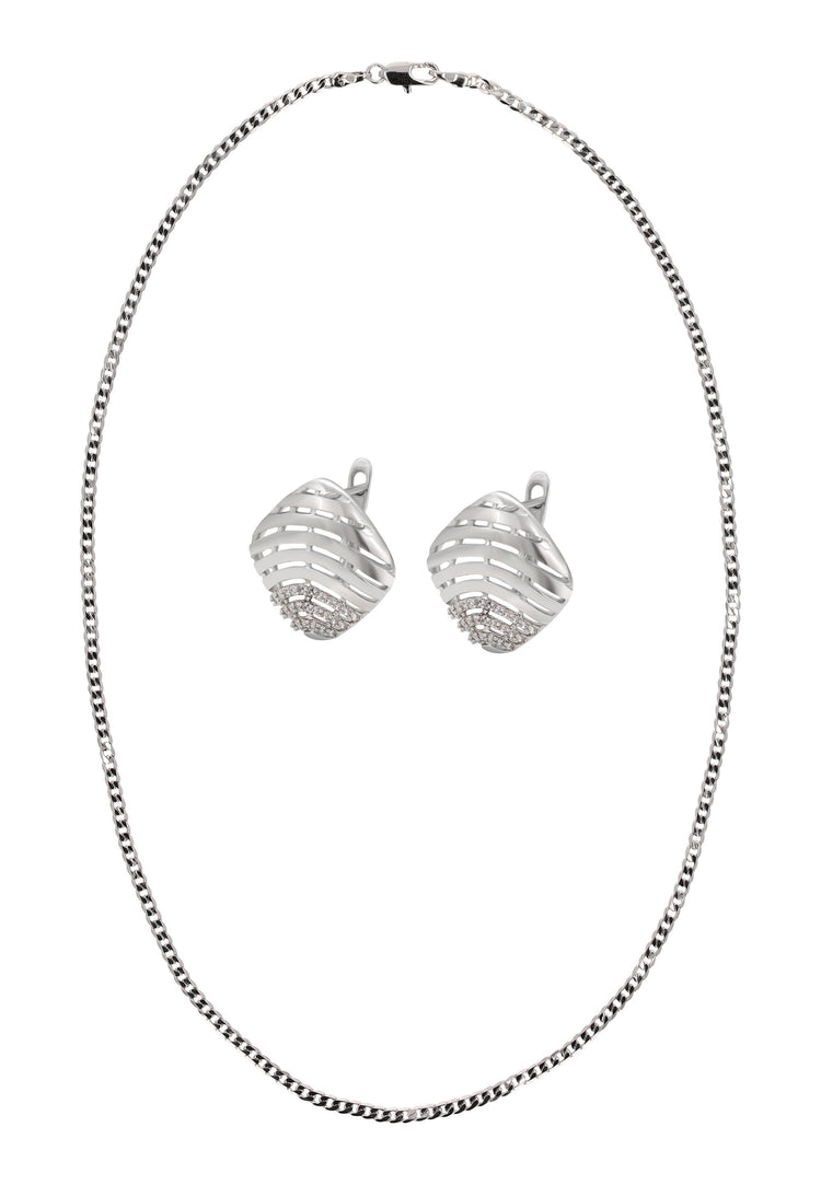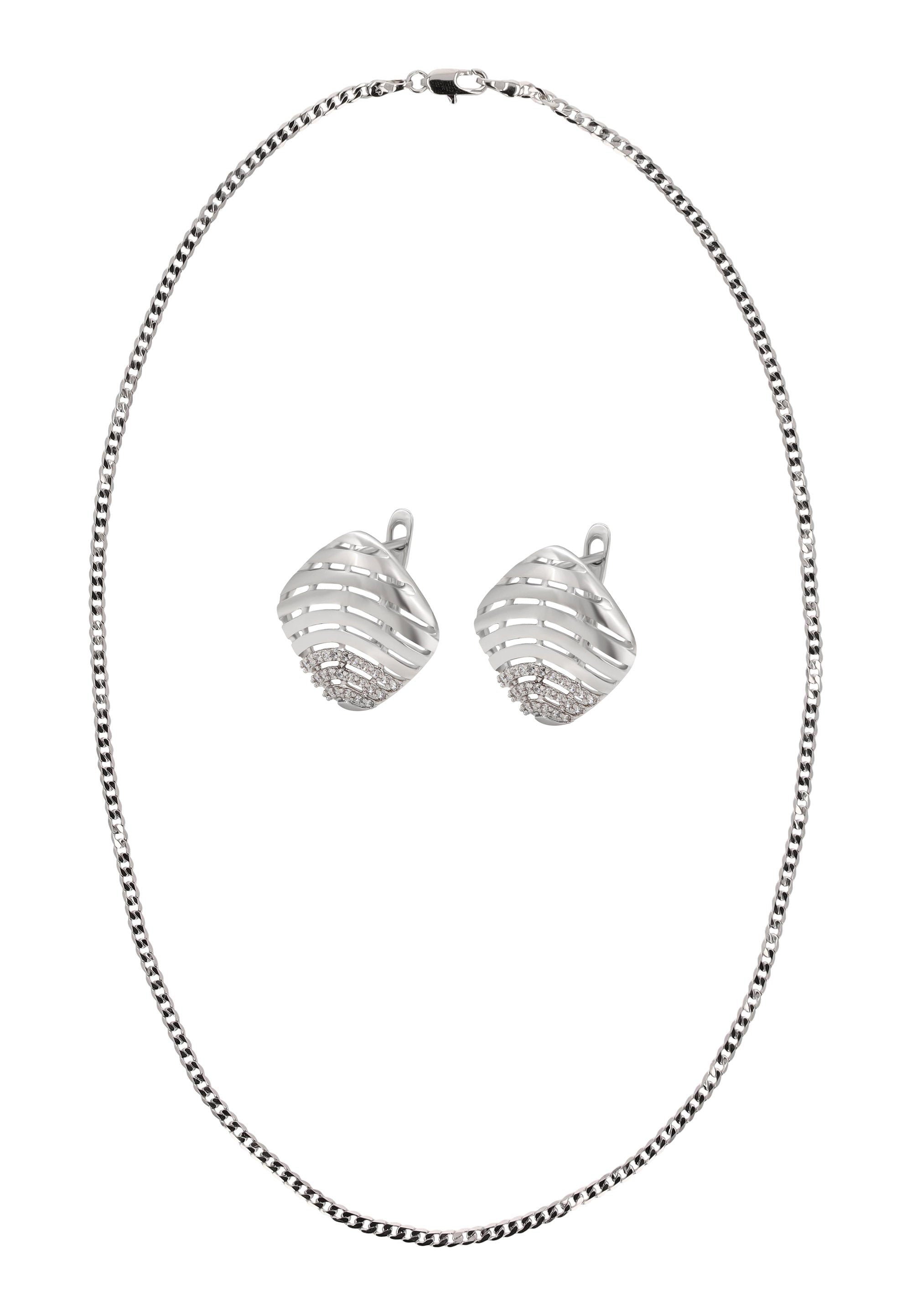 Dodaj odrobinę wyrafinowanego blasku dzięki temu zestawowi biżuterii z naszej Kolekcji Biżuterii. Ten zestaw naszyjnika i kolczyków wykonany jest z miedzi z gładkim wzorem, zawiera delikatny naszyjnik z łańcuszkiem typu box z bezpiecznym zapięciem typu lobster. Pasujące kolczyki są subtelnie ozdobione cyrkoniami i wykończone zapięciami typu latch-back dla wygodnego i niezawodnego noszenia. Elegancki, wszechstronny i ponadczasowy, ten zestaw wnosi subtelną elegancję zarówno do codziennych stylizacji, jak i na specjalne okazje.