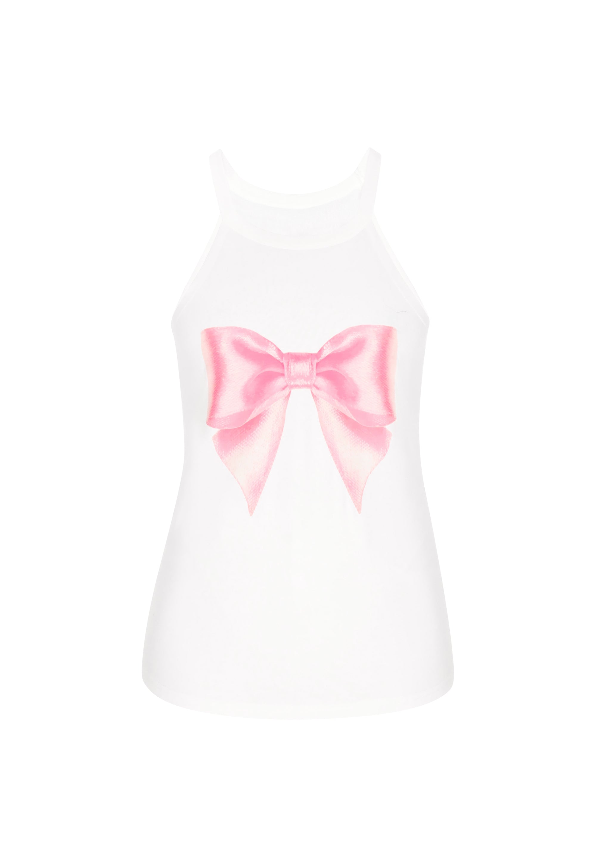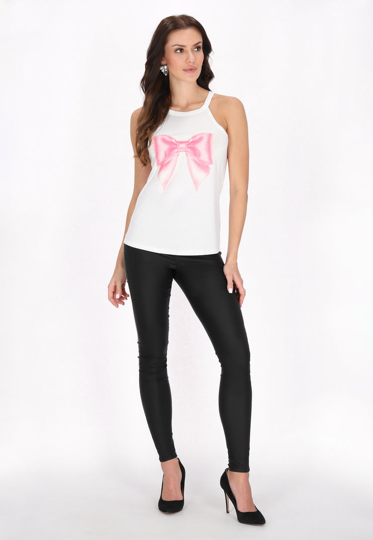 Odkryj ten modny top na szyję zaprojektowany na codzienną modę w regularnym kroju. Z zabawnym motywem kokardki jako stylowym nadrukiem, ten bezrękawnik wykonany jest z miękkiej dzianiny dla maksymalnego komfortu. Idealnie nadaje się na casualowe wyjścia lub do warstwowania, łączy styl i wygodę w naszej kolekcji Fashion Look.