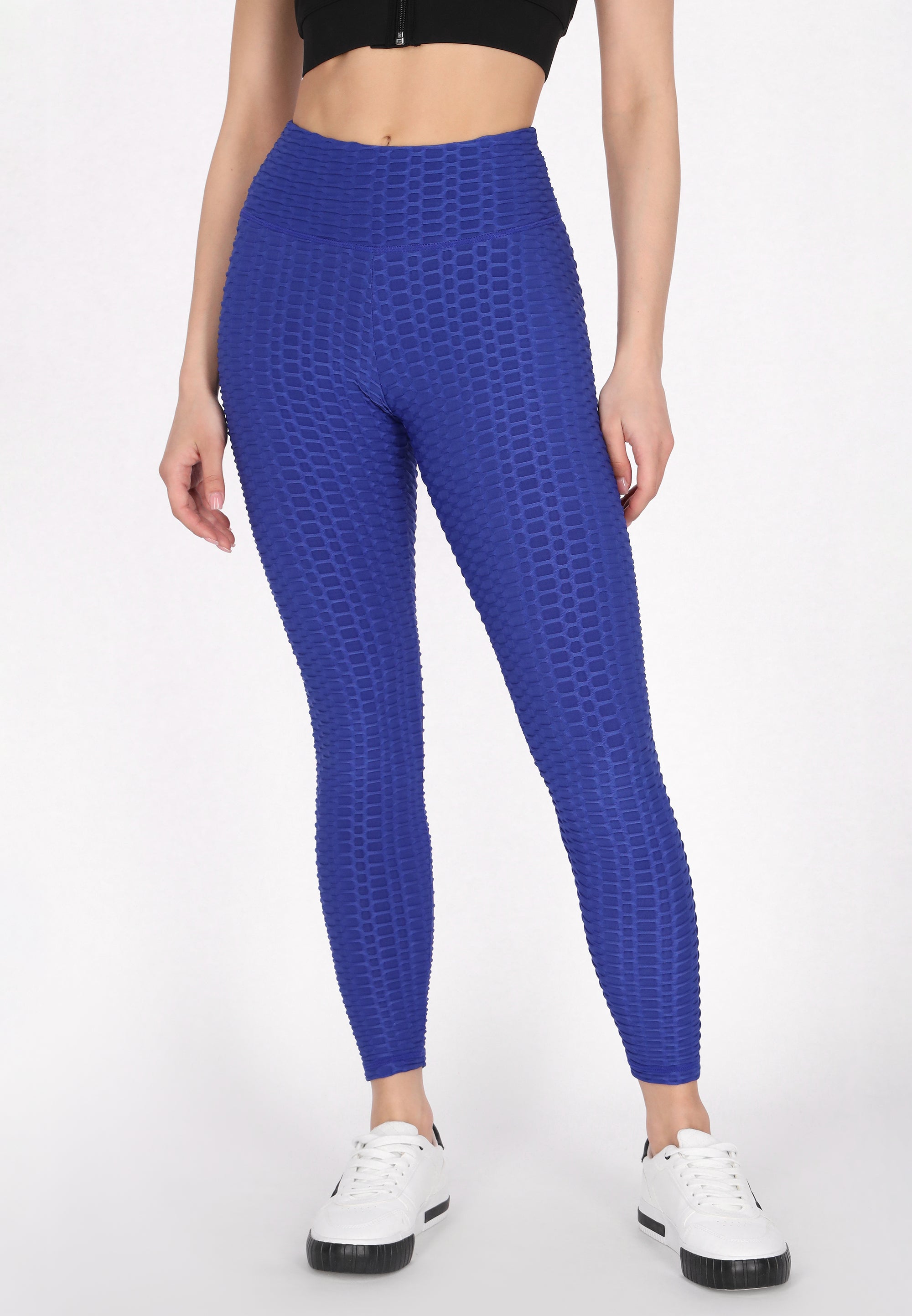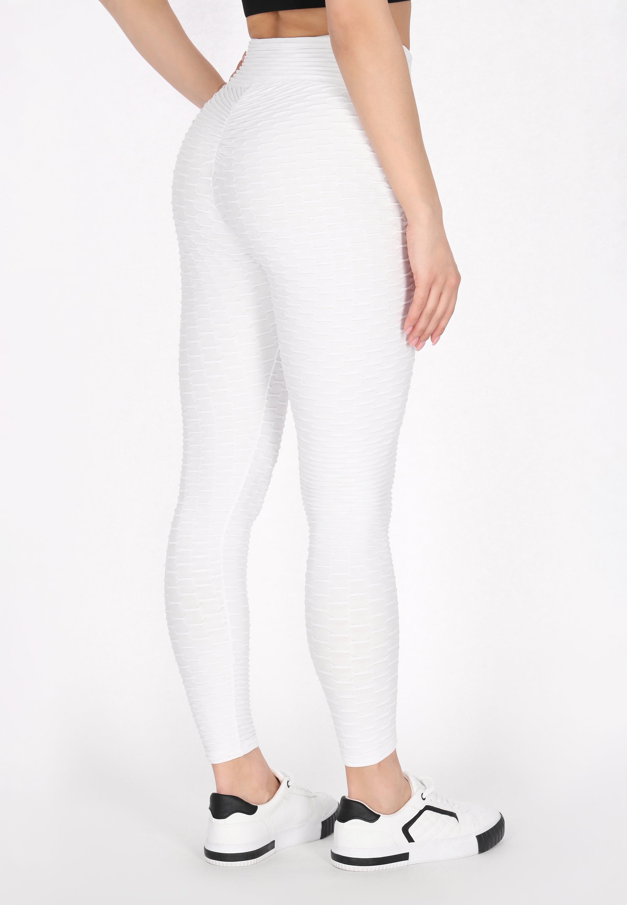 Uwolnij swój aktywny potencjał dzięki tym dopasowanym legginsom. Mają wysoką talię dla wsparcia, teksturowany wzór oraz efekt sznurka dla dodatkowej elastyczności. Zwężane ku kostkom, oferują przylegające dopasowanie, które jest idealne do jogi lub każdej aktywności fizycznej. Postaw na sportowy styl z tym dopasowanym, elastycznym modelem z naszej kolekcji Fashion Look.