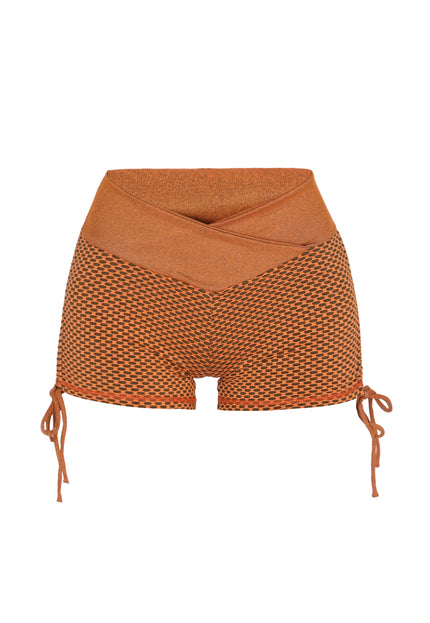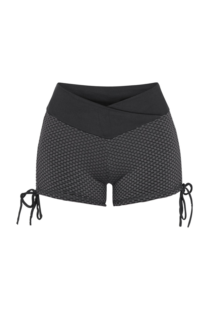 Odkryj komfort i styl dzięki tym modnym, dopasowanym szortom, idealnym do odzieży sportowej. Wykonane z elastycznego dżerseju, posiadają wysoki pas z wzorem krzyżowym dla pewnego dopasowania. Tłoczony wzór dodaje charakteru, a sznurki pozwalają na indywidualne dopasowanie. Idealne do jogi lub ćwiczeń, te wygodne szorty podniosą poziom Twojej sportowej garderoby. Są częścią kolekcji Fashion Look.