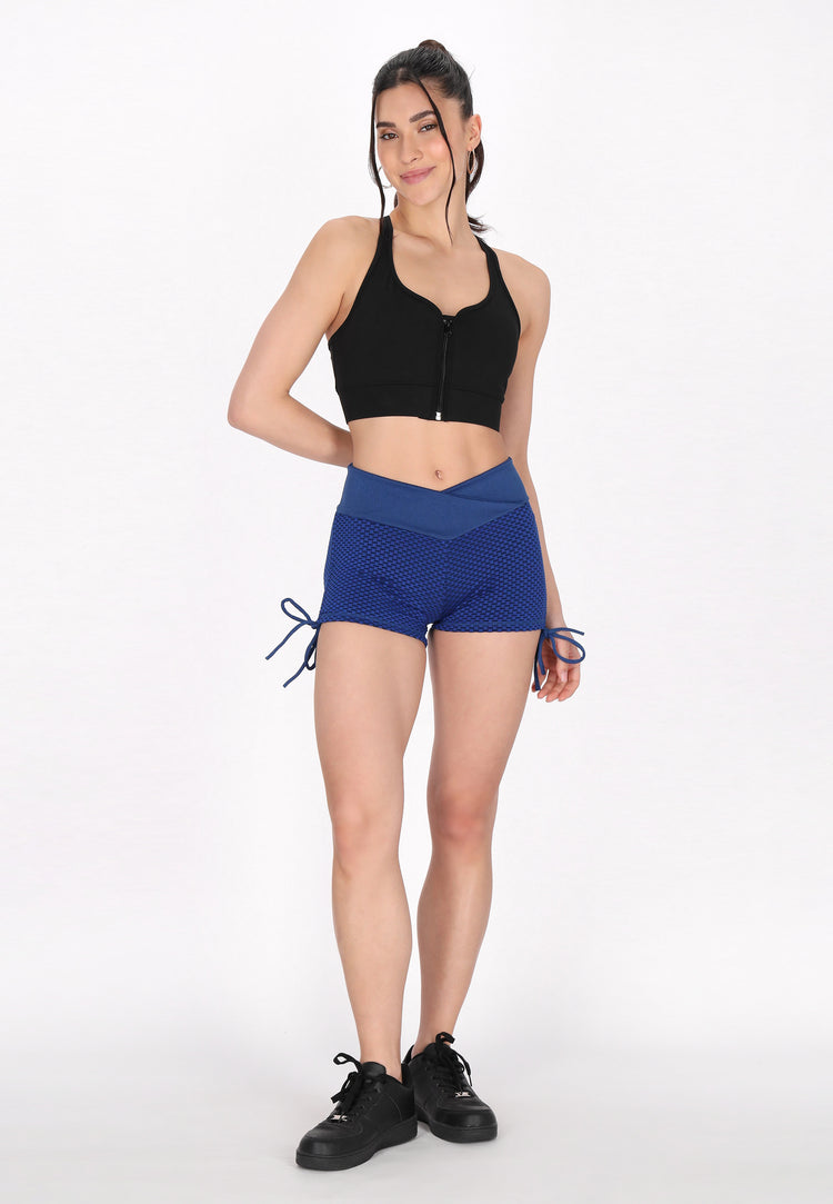Odkryj komfort i styl dzięki tym modnym, dopasowanym szortom, idealnym do odzieży sportowej. Wykonane z elastycznego dżerseju, posiadają wysoki pas z wzorem krzyżowym dla pewnego dopasowania. Tłoczony wzór dodaje charakteru, a sznurki pozwalają na indywidualne dopasowanie. Idealne do jogi lub ćwiczeń, te wygodne szorty podniosą poziom Twojej sportowej garderoby. Są częścią kolekcji Fashion Look.