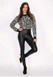 Designed for style and comfort, this cropped sweater features a bold animal stripe pattern that runs throughout the garment. The ribbed crew neck, cuffs and hem add structure to the design. Made from soft knit fabric, this figure-hugging sweater adapts effortlessly to your body shape. Perfect for casual yet fashionable looks combined with different bottoms.