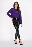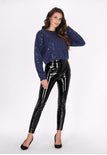 Elevate your style with this chic cropped sweater featuring long sleeves and a round neck. Adorned with shiny sequins that cascade beautifully, this modern knit piece offers a snug fit at the hem and cuffs. Perfect for special occasions.