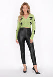 Enhance your everyday style with this stylish cardigan with a pointed neckline and long sleeves. This regular-fit cardigan fastens at the front with decorative buttons for added elegance. Made of soft knit fabric, it provides comfort while the charming bow pattern decorated with pearls adds a chic touch. Perfect for everyday wear and elegant styling! It is part of the Fashion Look Collection.
