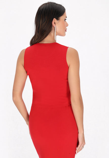 Keyword: casual, comfortable, everyday fashion, fashion look collection, knitted, plain, regular fit, rhinestones, round neck, sleeveless, stylish, top