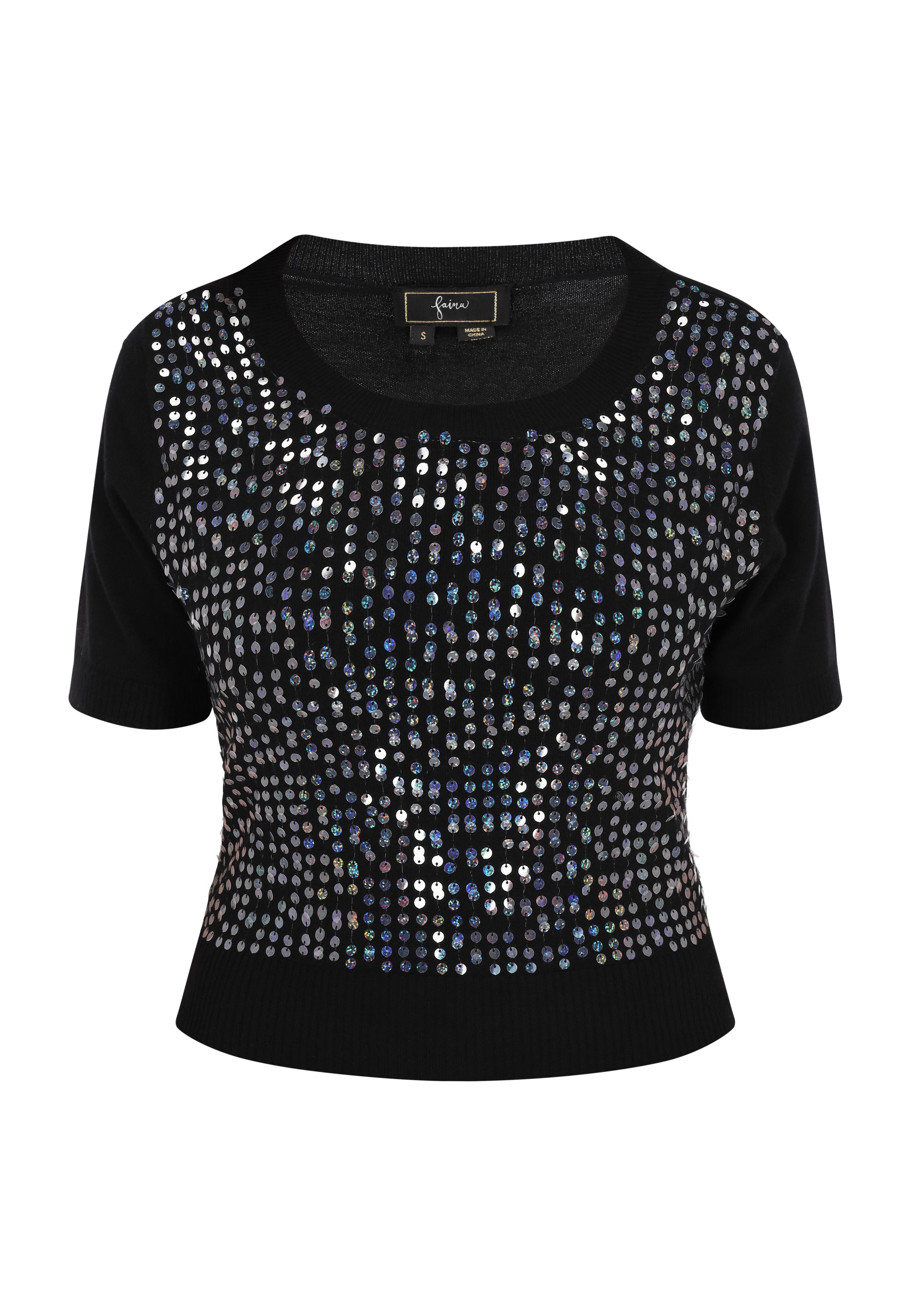 Keyword: casual, comfortable collection, everyday fashion, fashion lover, knitted, plain, regular fit, ribbed hem, round neck, sequins, short sleeves, top, trendy
