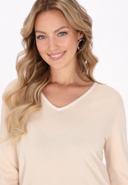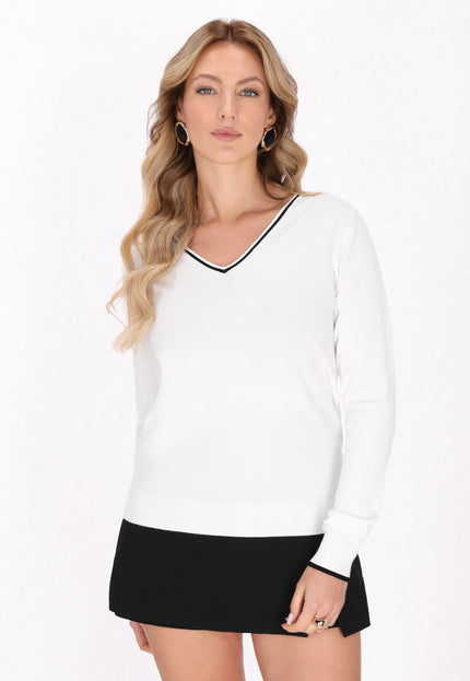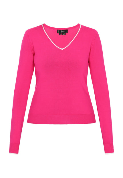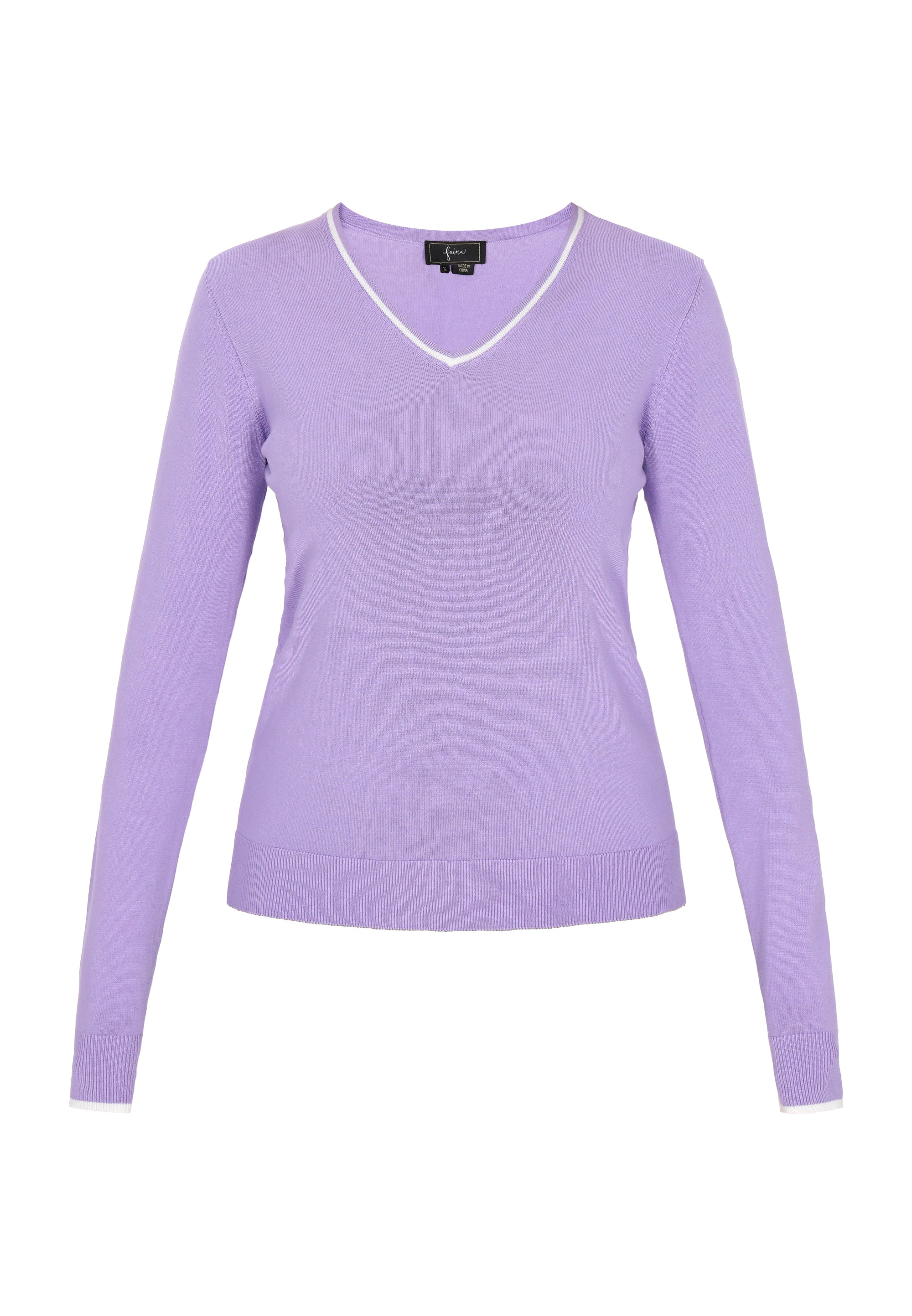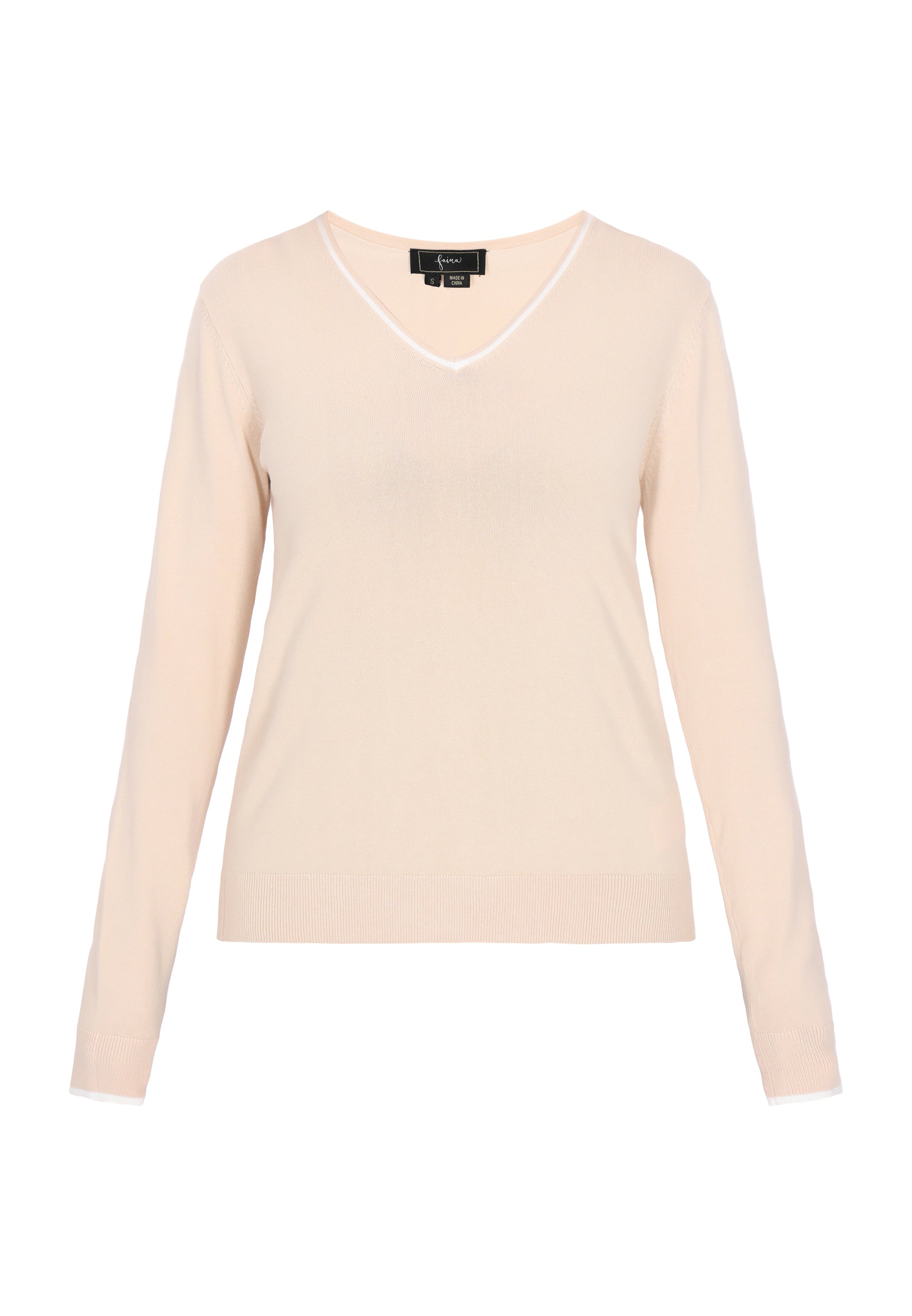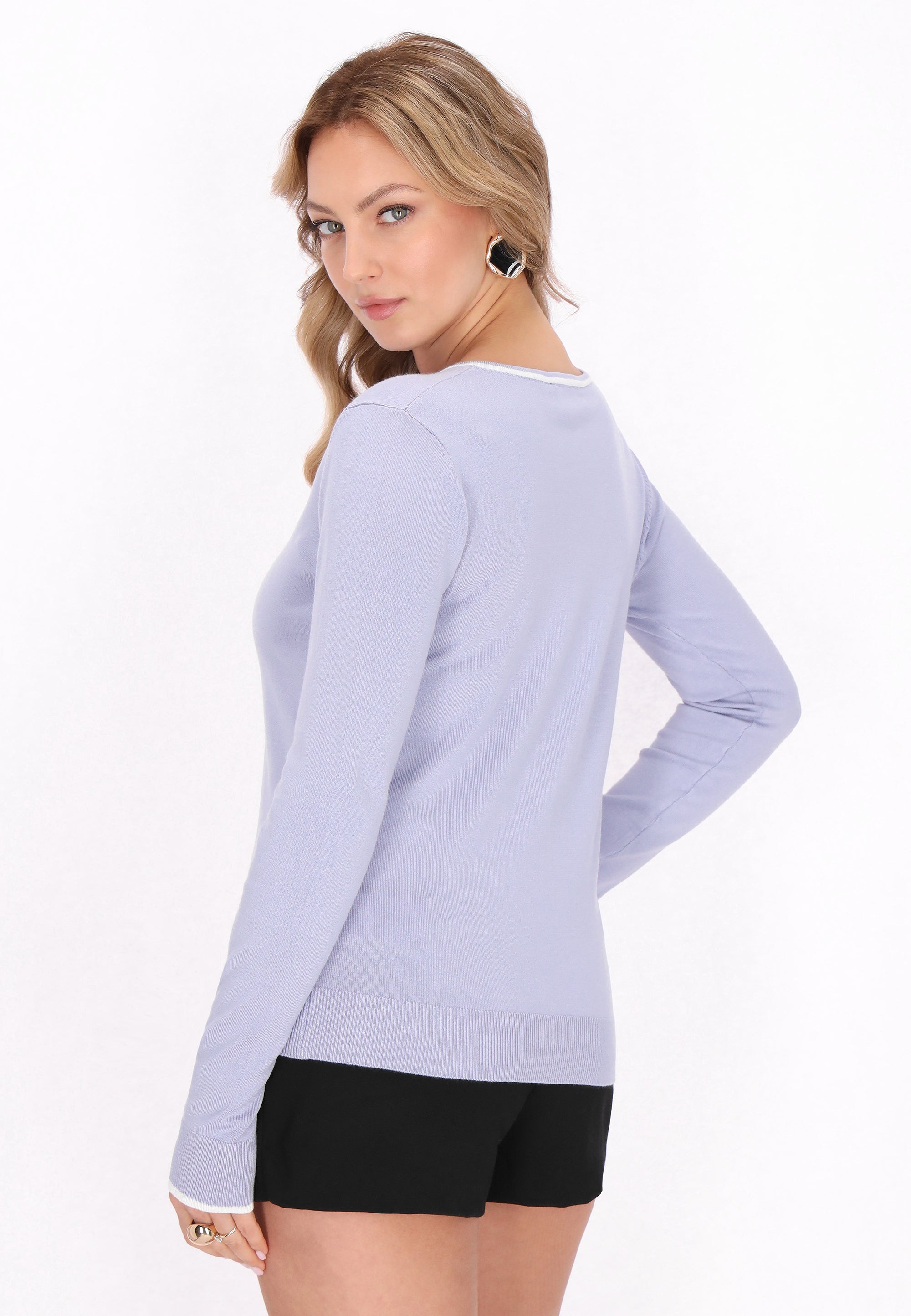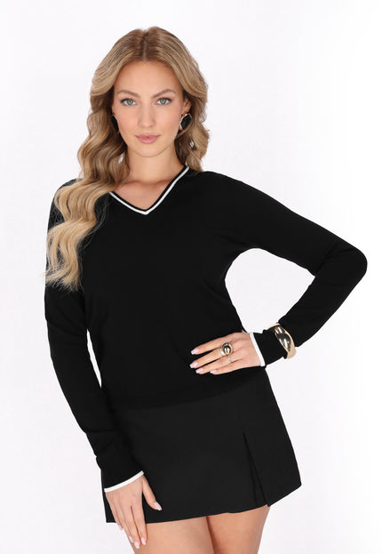 Enhance your closet with this stylish regular fit sweater with a pointed neckline, long sleeves and elegant contrast trim. Crafted from a soft knit fabric, it provides comfort perfect for everyday wear. The fitted silhouette enhances the look, while the ribbed hem adds a casual touch. It is part of the Fashion Look Collection.