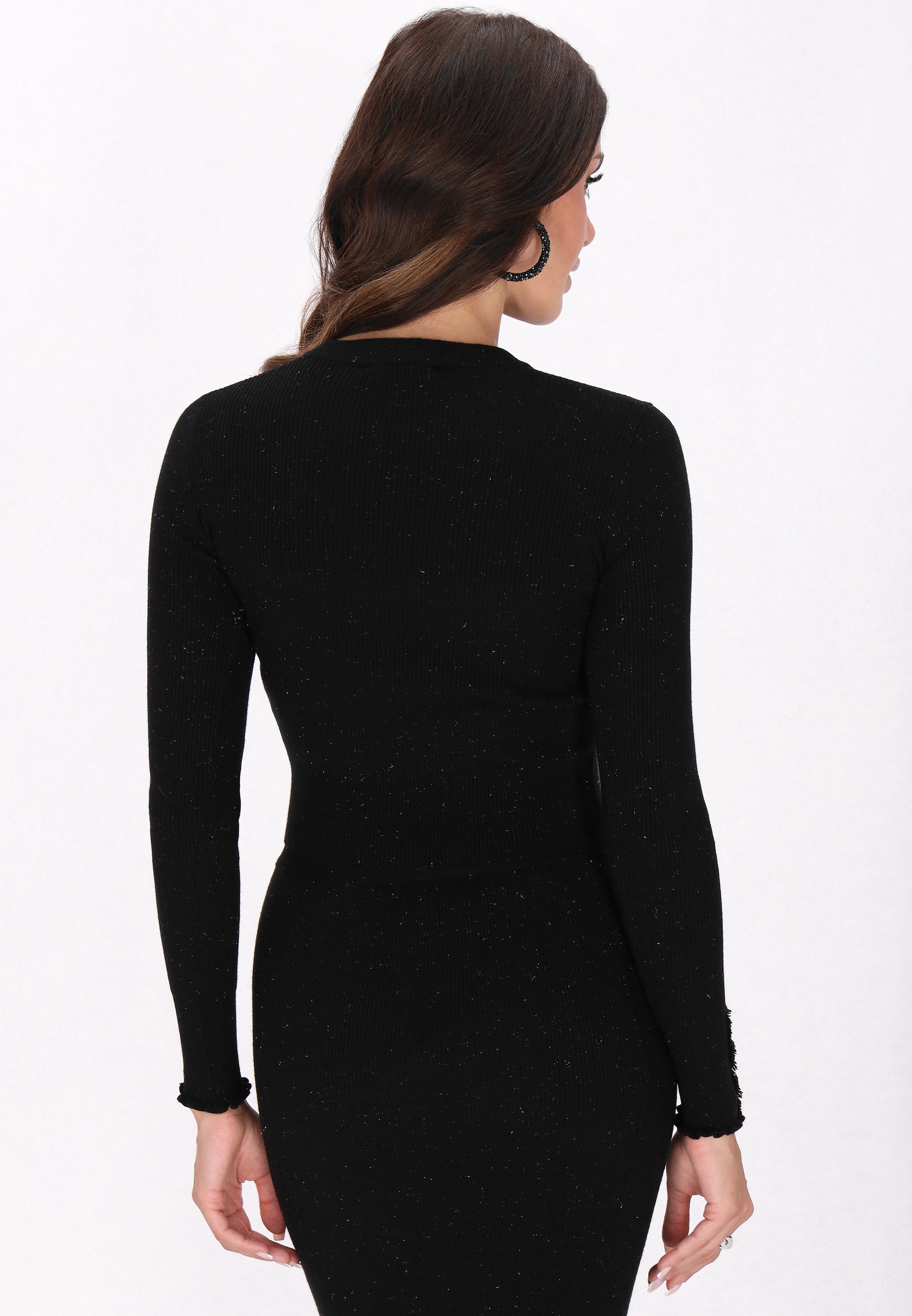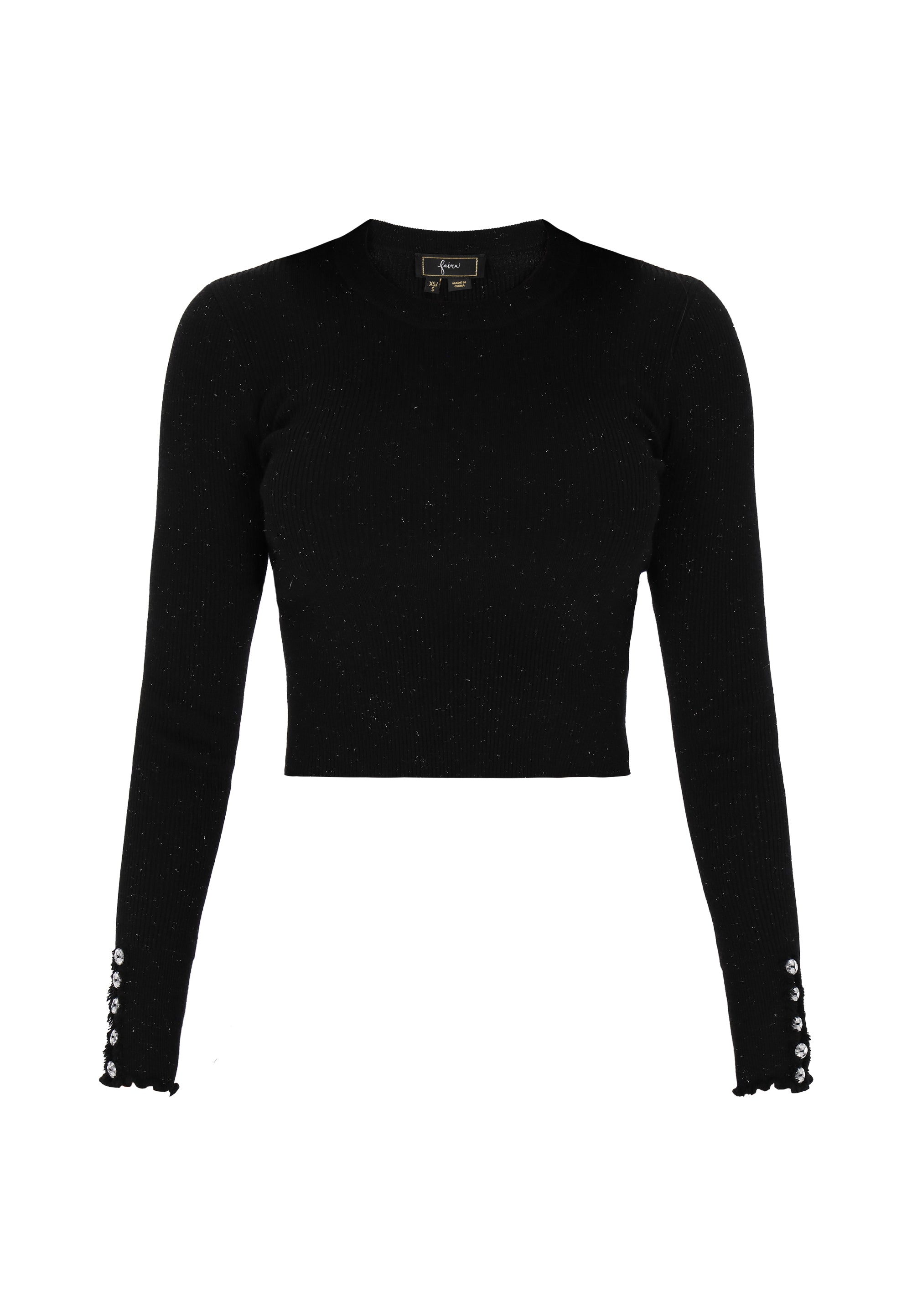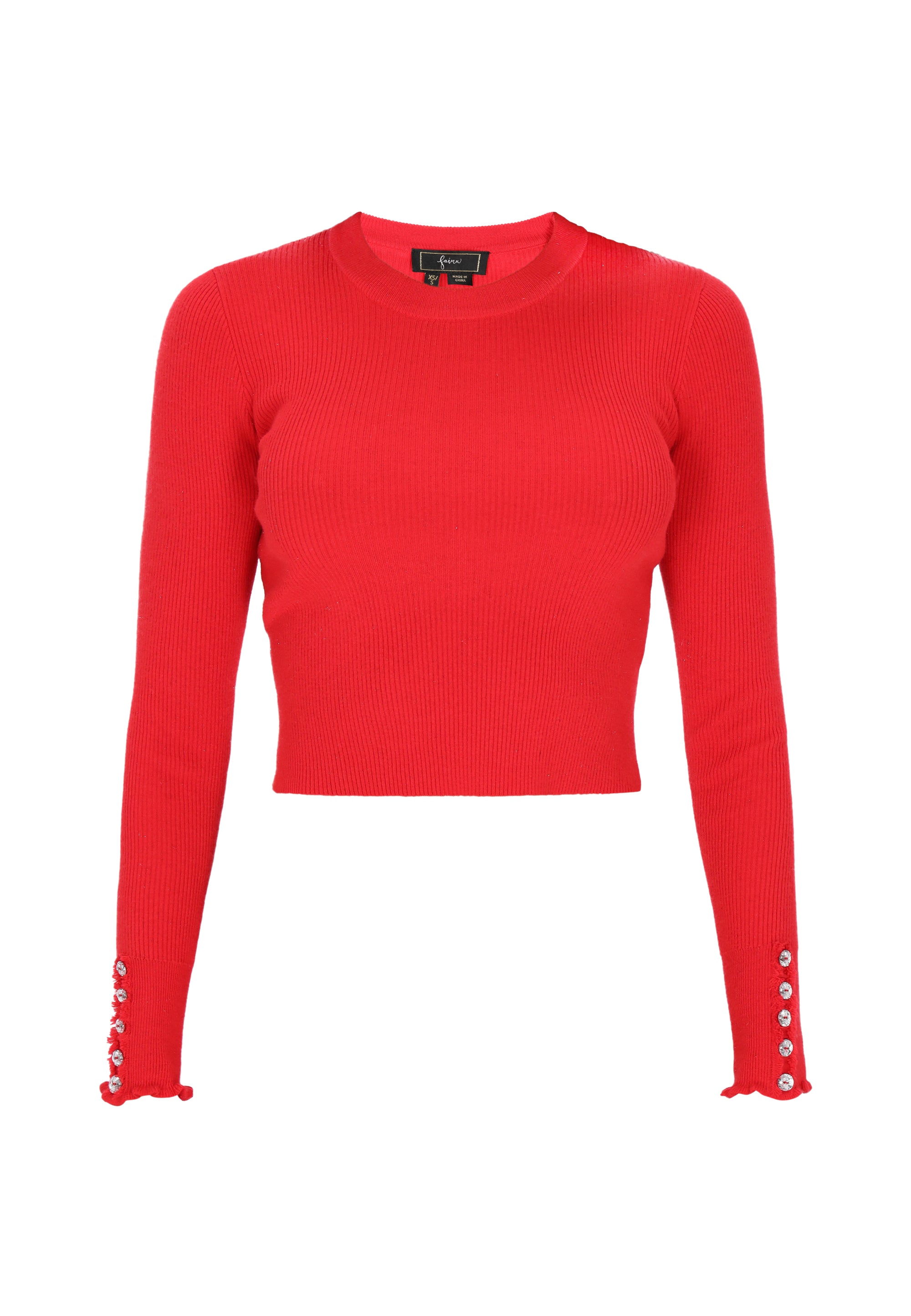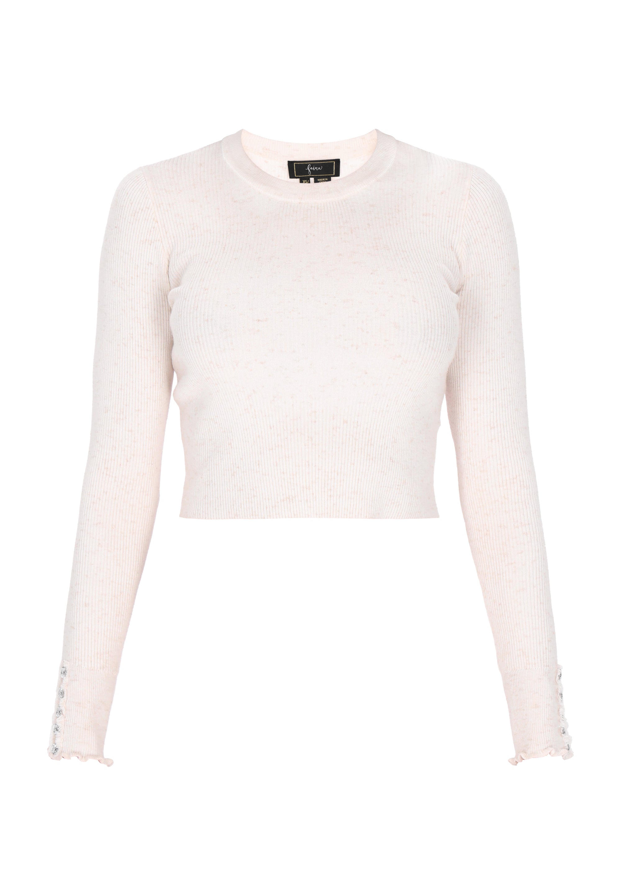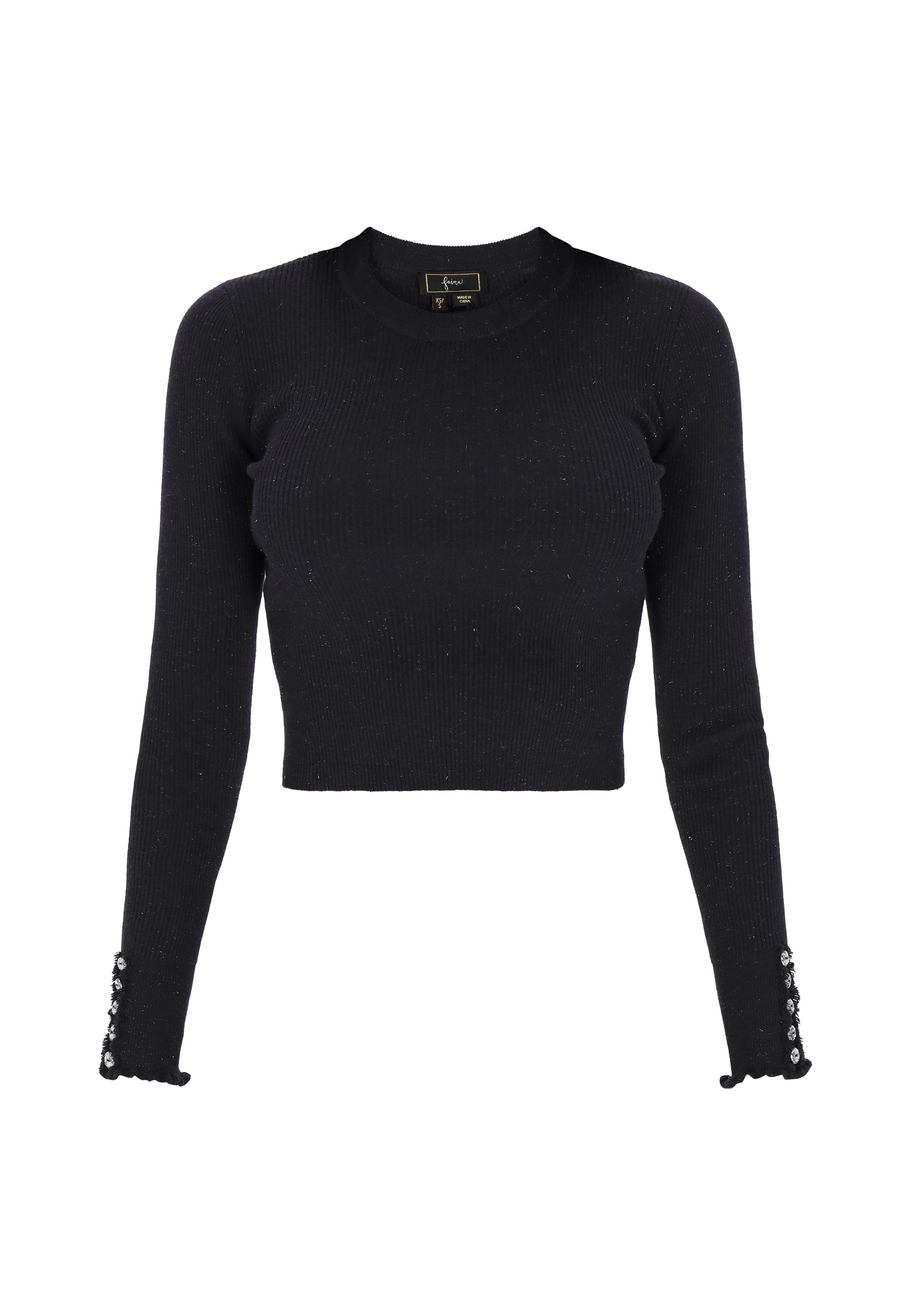 Discover this stylish sweater in a slim, cropped fit with a round neckline and long sleeves. Decorative buttons on the wrists emphasize its elegance, while the ribbed knit fabric ensures comfortable wear. This smooth model from the Fashion Look Collection is perfect for casual outings, making it an essential addition to your closet.