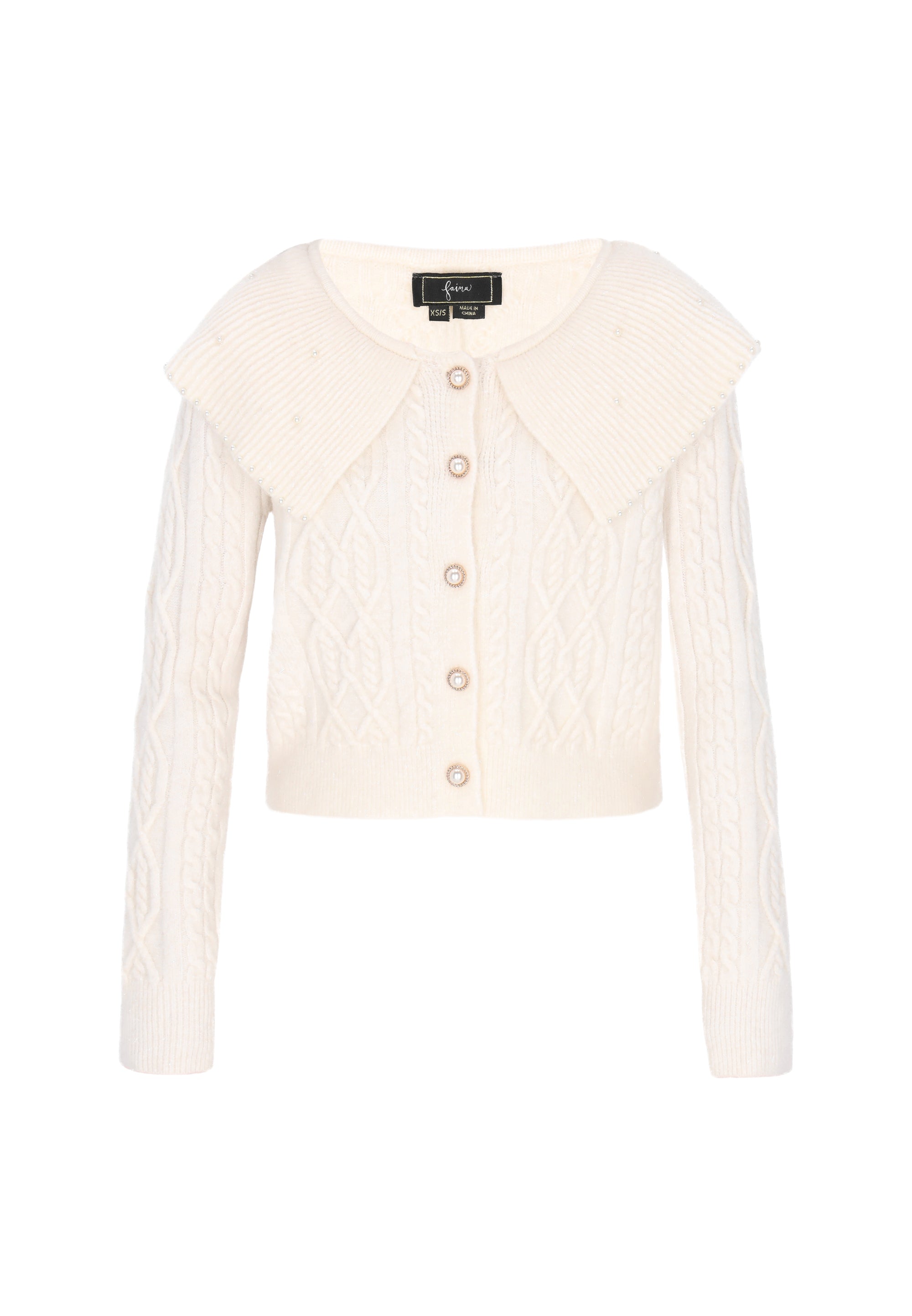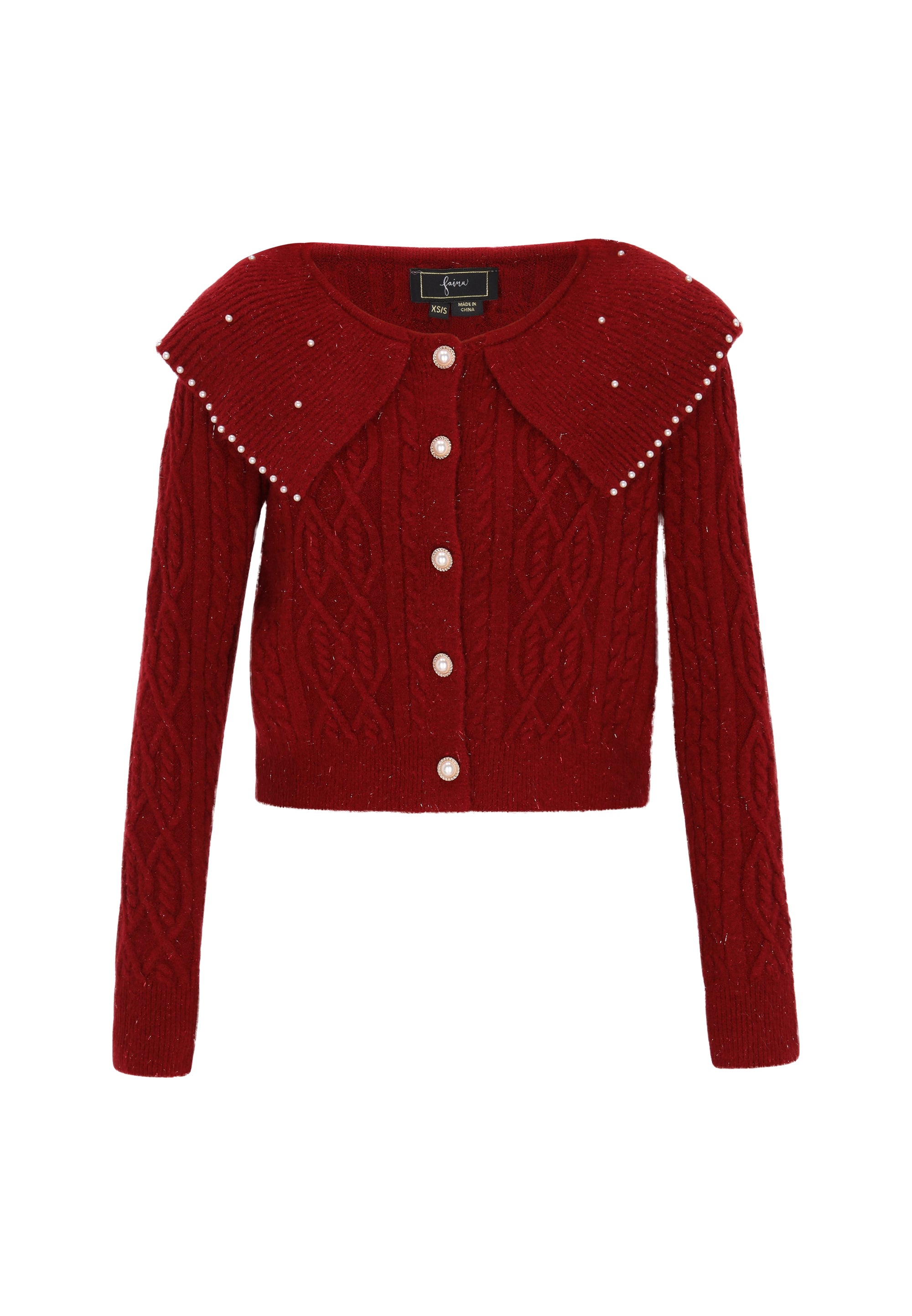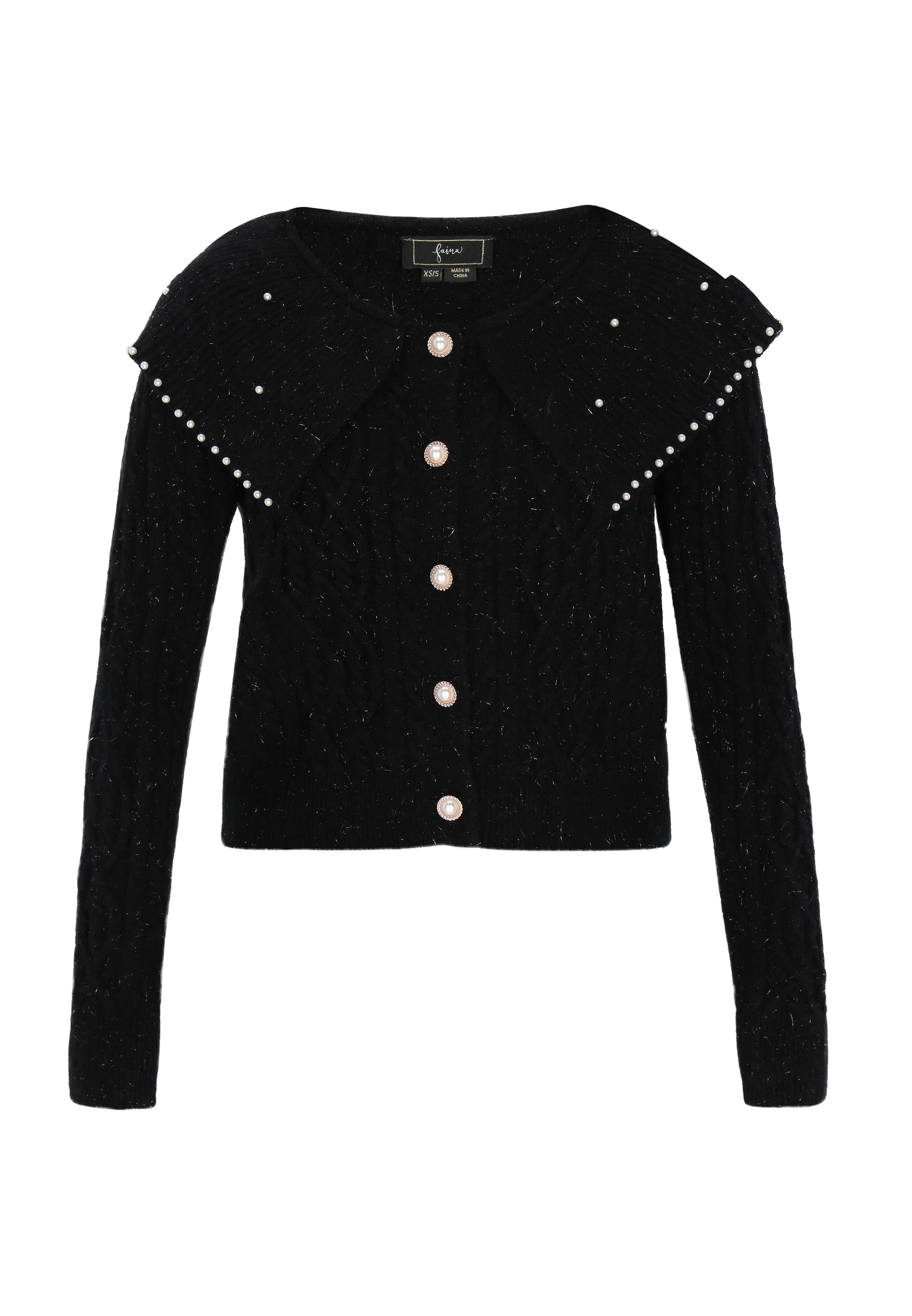 The stylish regular cut cardigan is a unique combination of classics and girlish charm. Made of soft knit fabric with a decorative plaid weave, it impresses with its details: an elegant puritan collar, shiny metallic thread and decorative pearl buttons. Long sleeves and comfortable cut make it an ideal choice for everyday wear - with jeans, skirts or dresses. The cardigan combines comfort and subtle elegance, fitting perfectly into a casual style with a touch of romance. It is part of the Fashion Look Collection.
