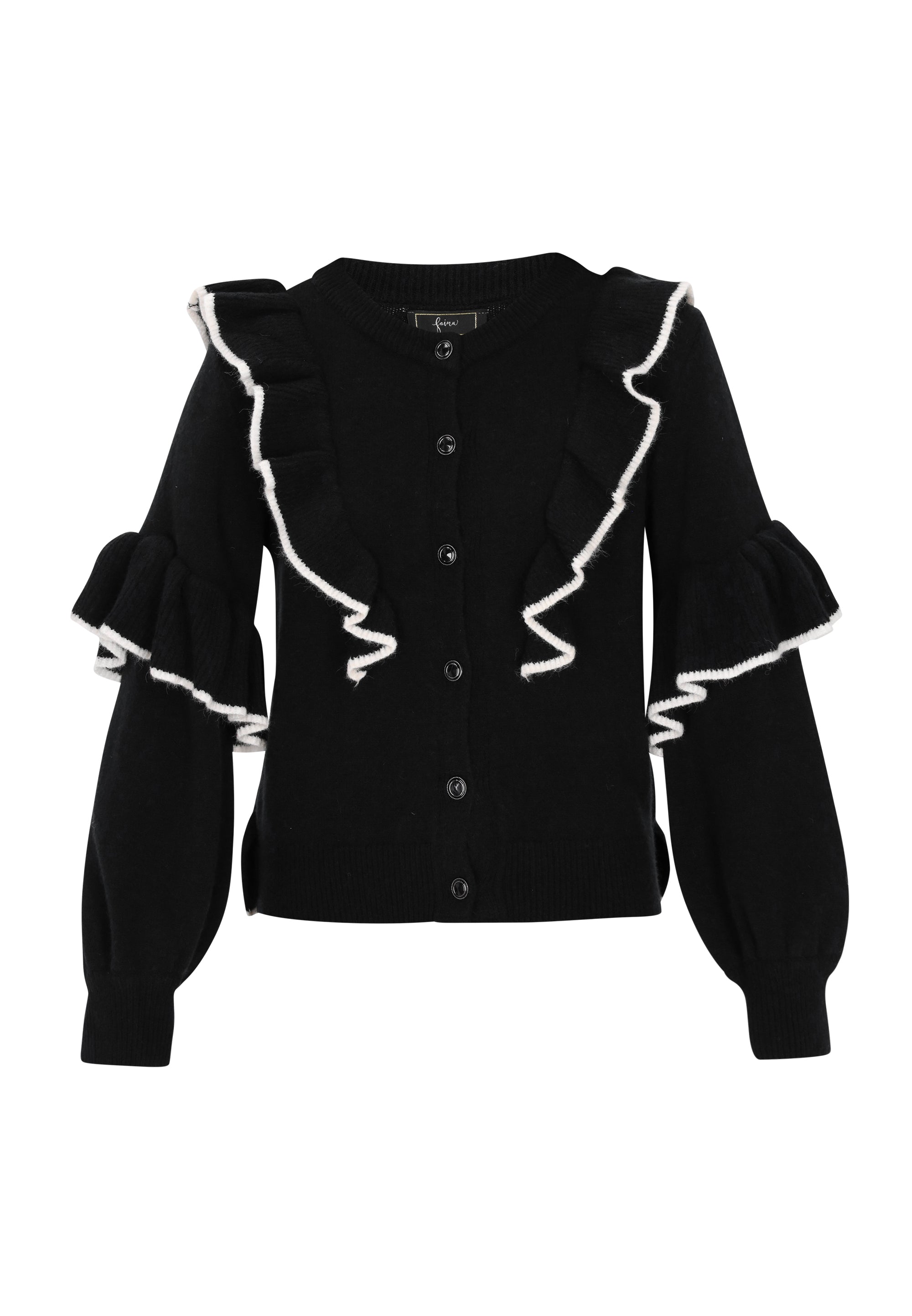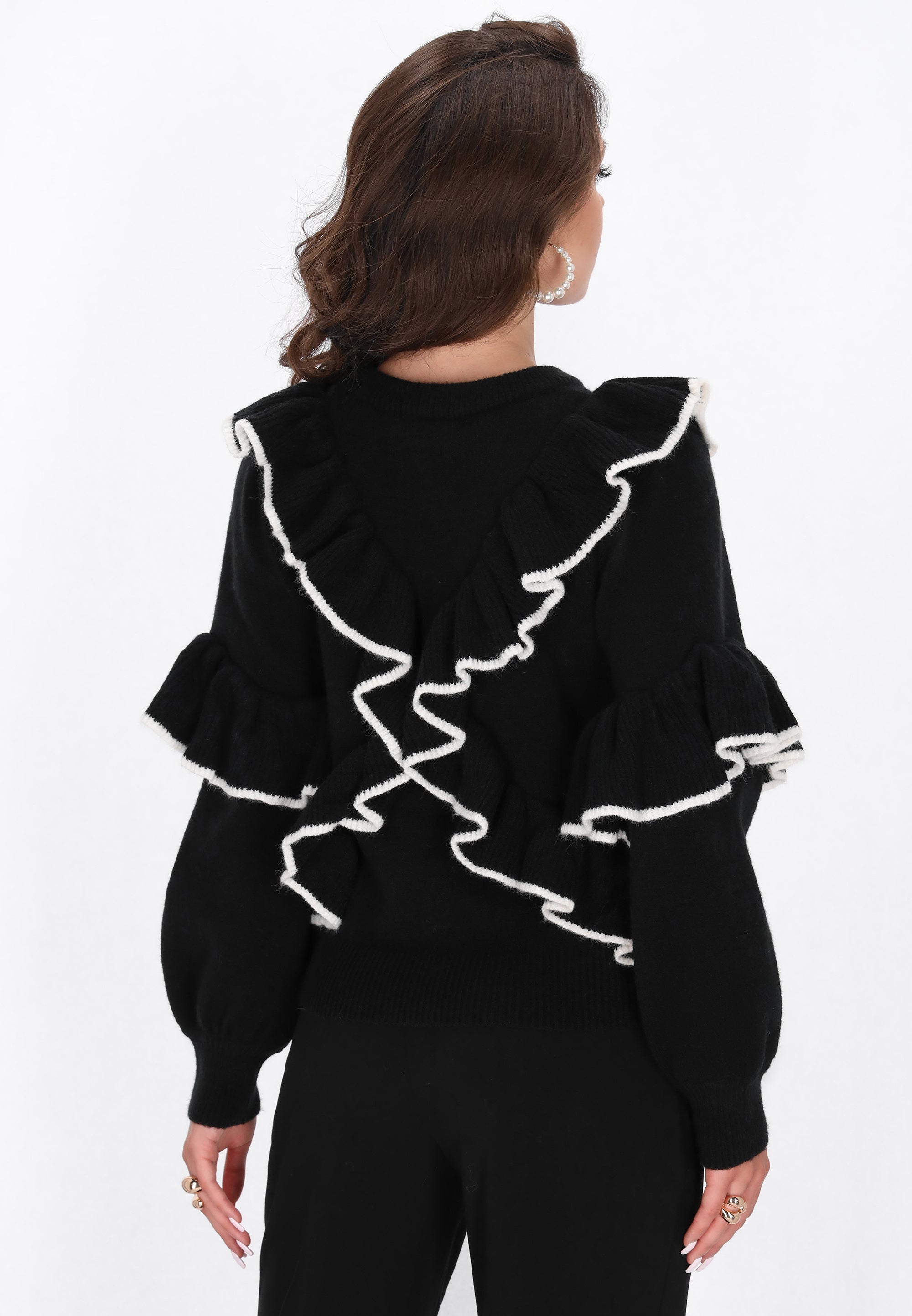 This loose-fitting cardigan is the perfect everyday option, combining comfort with romantic style. Made of soft, knitted fabric, it features a smooth, uniform pattern and a round neckline that beautifully accentuates the neck. Long sleeves add lightness and feminine charm, while decorative ruffles and contrast trim add a unique touch. The cardigan is buttoned, which allows you to adjust it freely and create styles from different layers. The cardigan from the Fashion Look Collection is designed for women who appreciate casual comfort with a touch of romance.