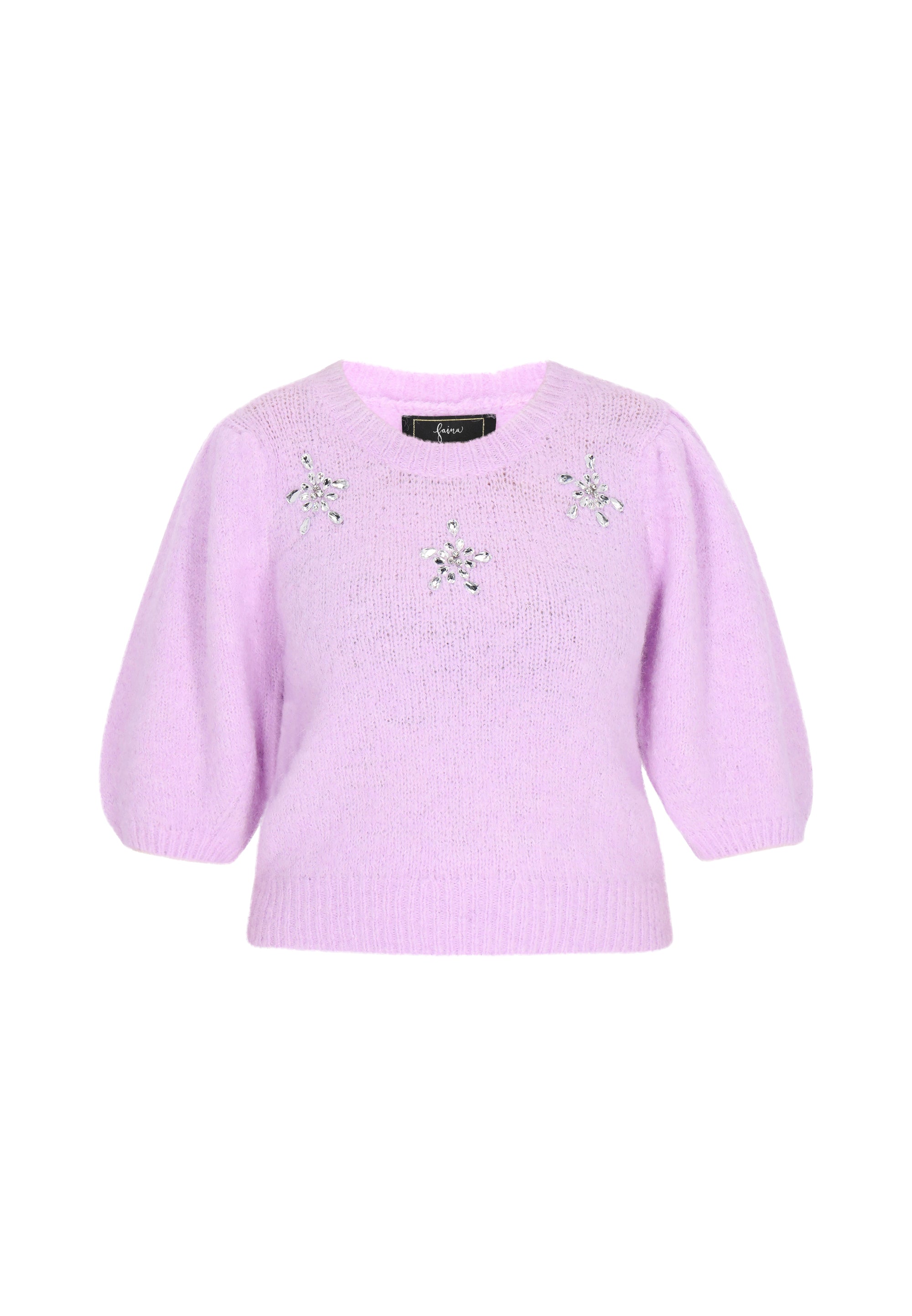 Add a stylish twist to your casual wardrobe with this regular-fit sweater from the Fashion Look Collection. Made from soft knitted fabric in a classic plain pattern, it features a comfortable round neck and half puff sleeves for a trendy silhouette. Subtle rhinestones add just the right amount of sparkle, making this sweater both cozy and chic for everyday wear.