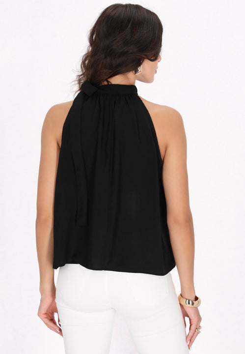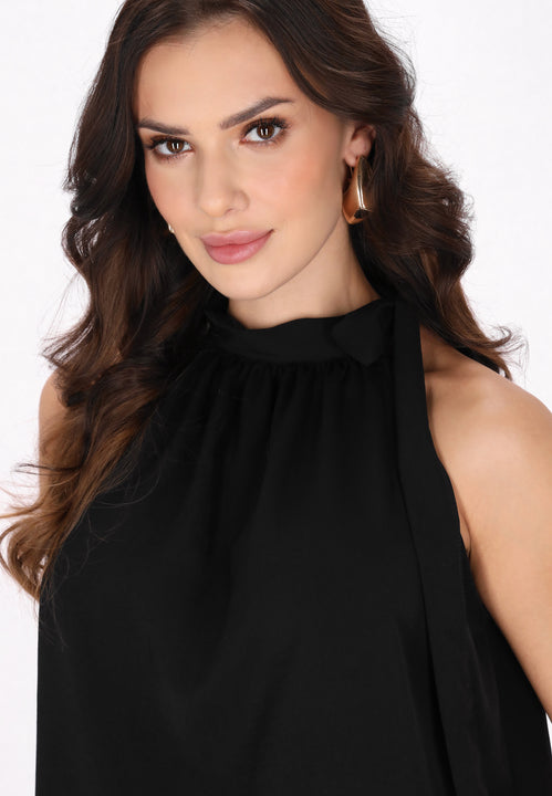 Introducing a chic halter top designed for effortless elegance. Featuring a halter neckline with a gathered effect for a soft, flowing look, it is accented by a stylish tie detail. The regular fit and straight hemline ensure comfort while maintaining a polished silhouette. Perfect for both casual and semi-formal occasions, this versatile top from the Fashion Look Collection adds a touch of sophistication to any wardrobe.