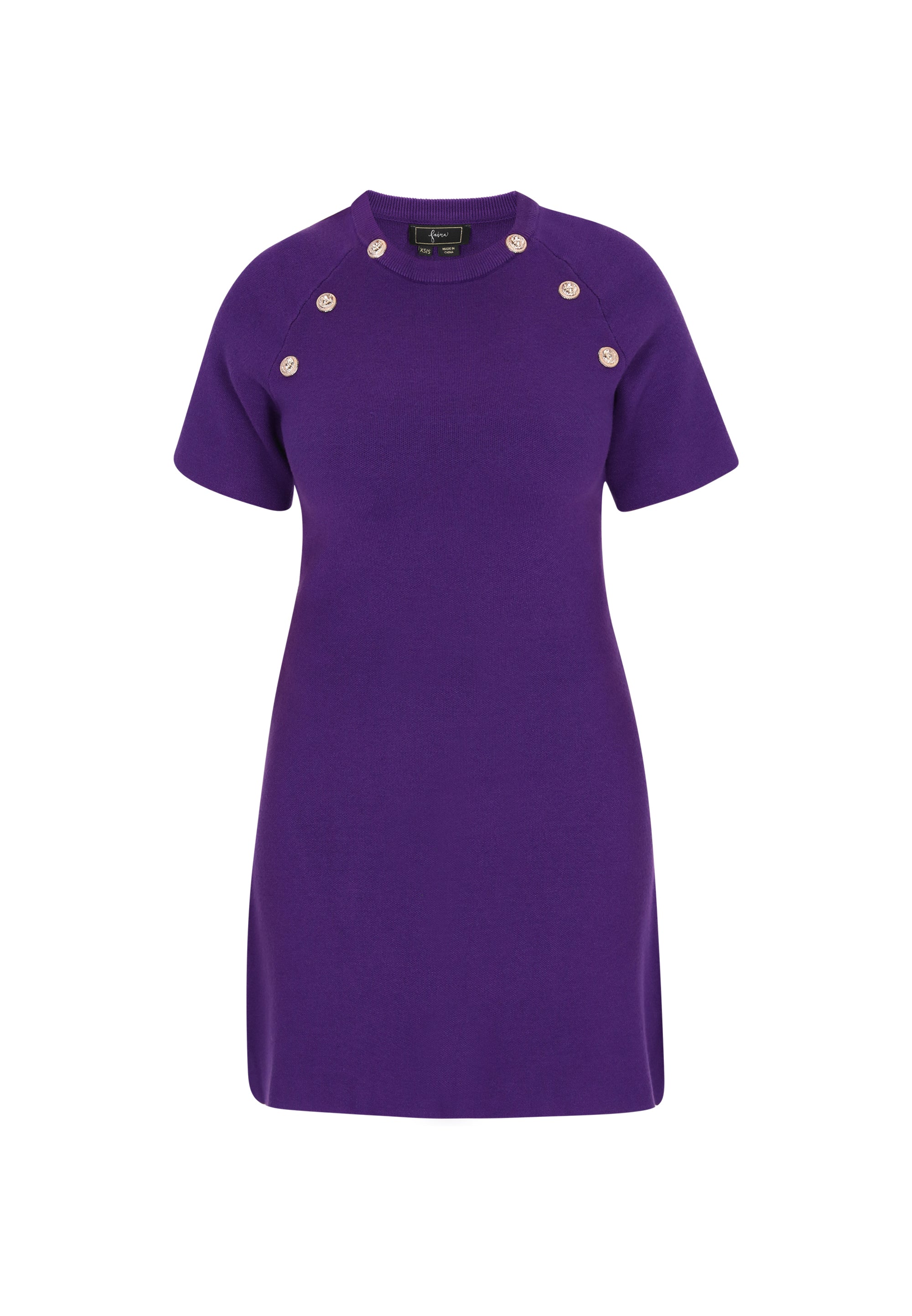 Embrace effortless style with this regular-fit mini dress from the Fashion Look Collection. Made from soft knitted fabric in a classic plain pattern, it features a comfortable round neck and short raglan sleeves for ease of movement. Decorative buttons add a subtle detail, making this dress a perfect blend of casual comfort and chic simplicity for everyday wear.