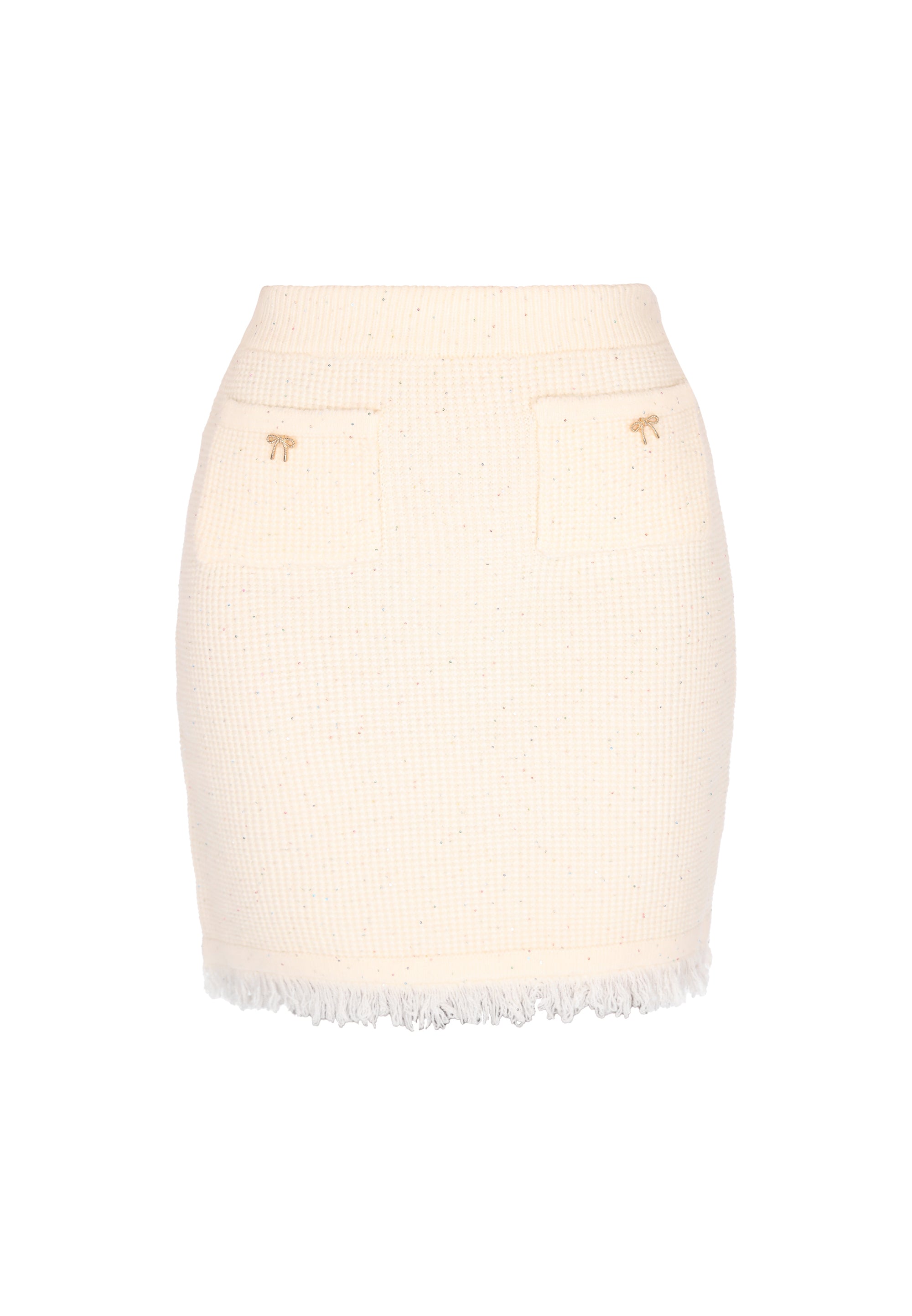 Combine comfort and style with this regular-fit mini skirt from the Fashion Look Collection. Made from waffle knit fabric in a plain pattern, it features a flattering high waist and practical pockets. Embellished with sequins and decorative tape, this skirt adds a subtle sparkle to your casual, comfortable everyday looks.