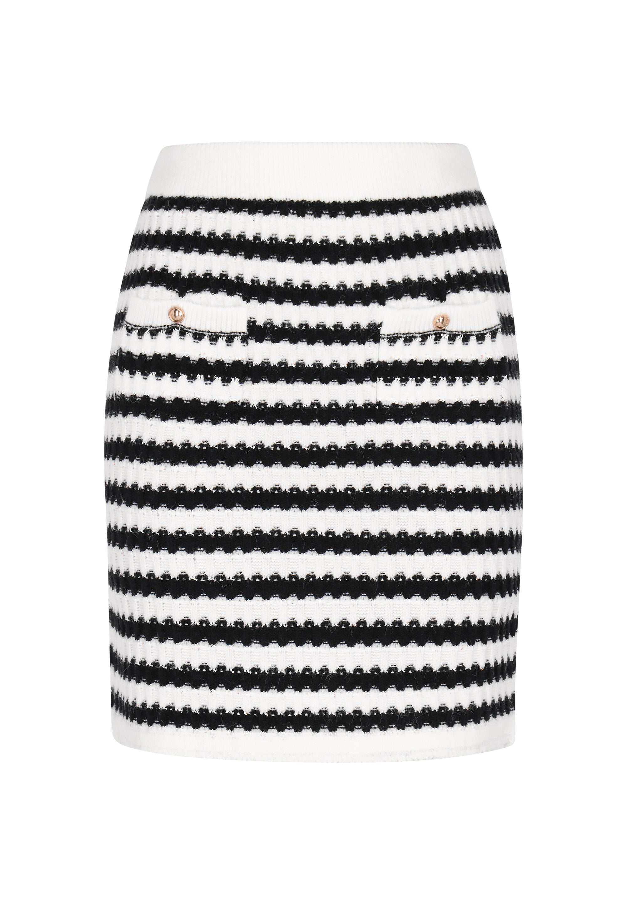 This knit mini skirt from the Fashion Look Collection is the perfect combination of comfort and everyday style. With a regular cut, it subtly accentuates the silhouette, while the striped pattern adds a modern and casual touch. Pockets and decorative buttons add functionality and a stylish finish. Made of soft, stretchy knit fabric, the skirt is comfortable and cozy, ideal for everyday wear - for school, work or weekend outings.