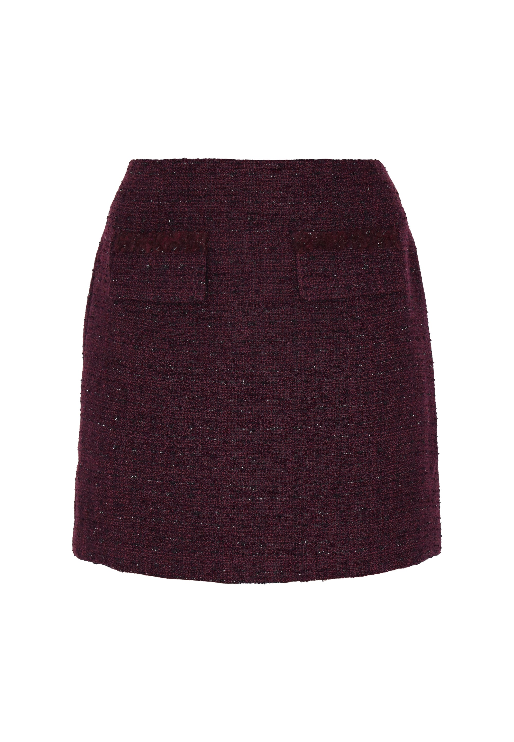 This elegant bouclé style mini skirt is the quintessence of class and chic. Made of textured fabric with a touch of metallic thread, it subtly shines, adding a unique touch to the styling. The regular cut ensures a comfortable fit, while decorative flaps on the front and a discreet zipper add a sophisticated finishing touch. Ideal for elegant styling with a blazer, as well as for more modern combinations in chic style. The skirt will work perfectly as a timeless closet piece in the Fashion Look Collection.