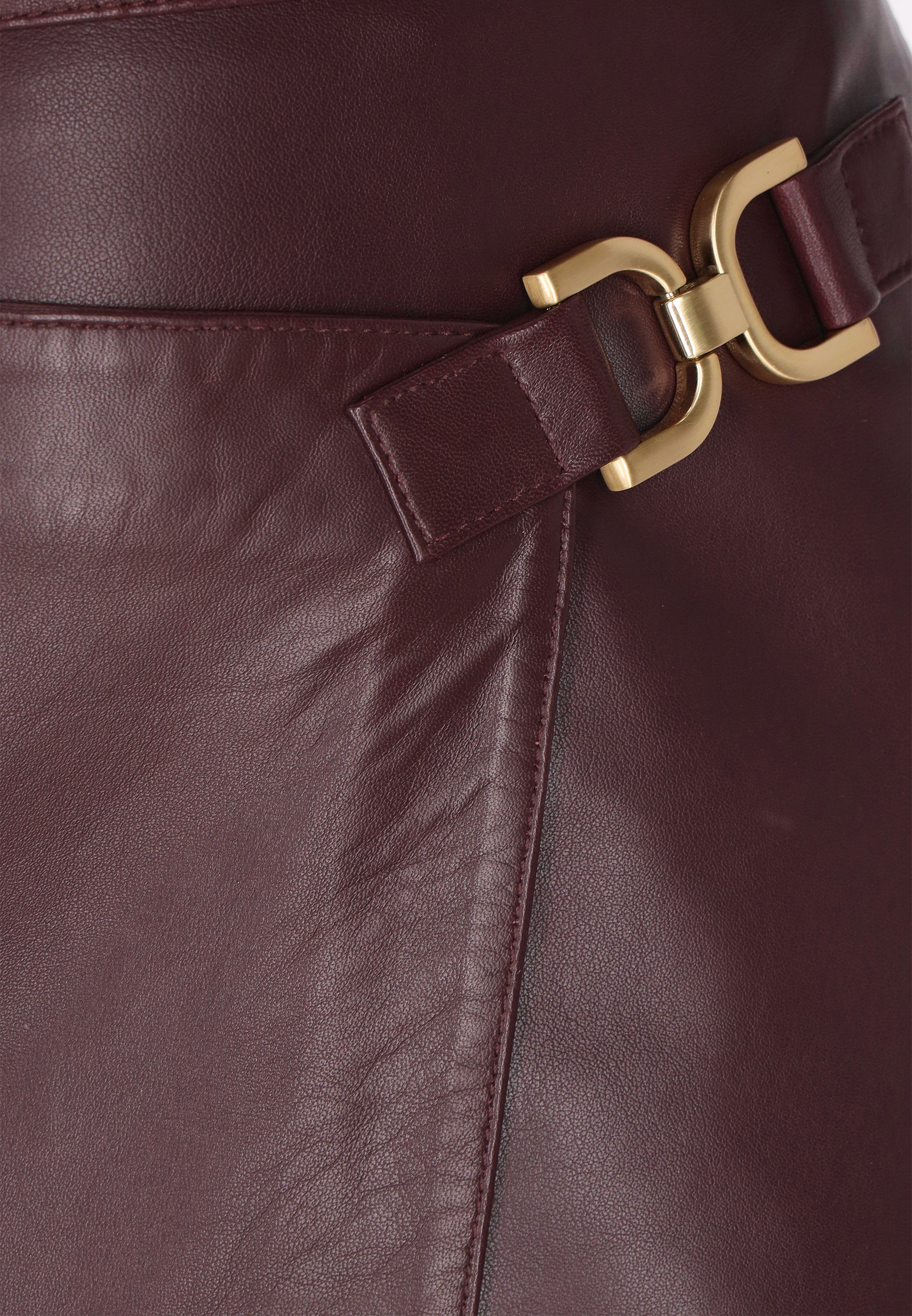 Make a refined statement with this wrap midi skirt from our Fashion Look Collection. Crafted from luxurious lamb leather, it features a high waist and regular fit that flatters the silhouette with effortless elegance. The wrap design is secured with a sleek buckle and hidden zipper, adding a modern touch to its classic structure. Finished in a plain color pattern, this skirt is the perfect choice for evening outings or special events. Sophisticated, stylish, and undeniably chicit's a standout item that elevates any elegant wardrobe.