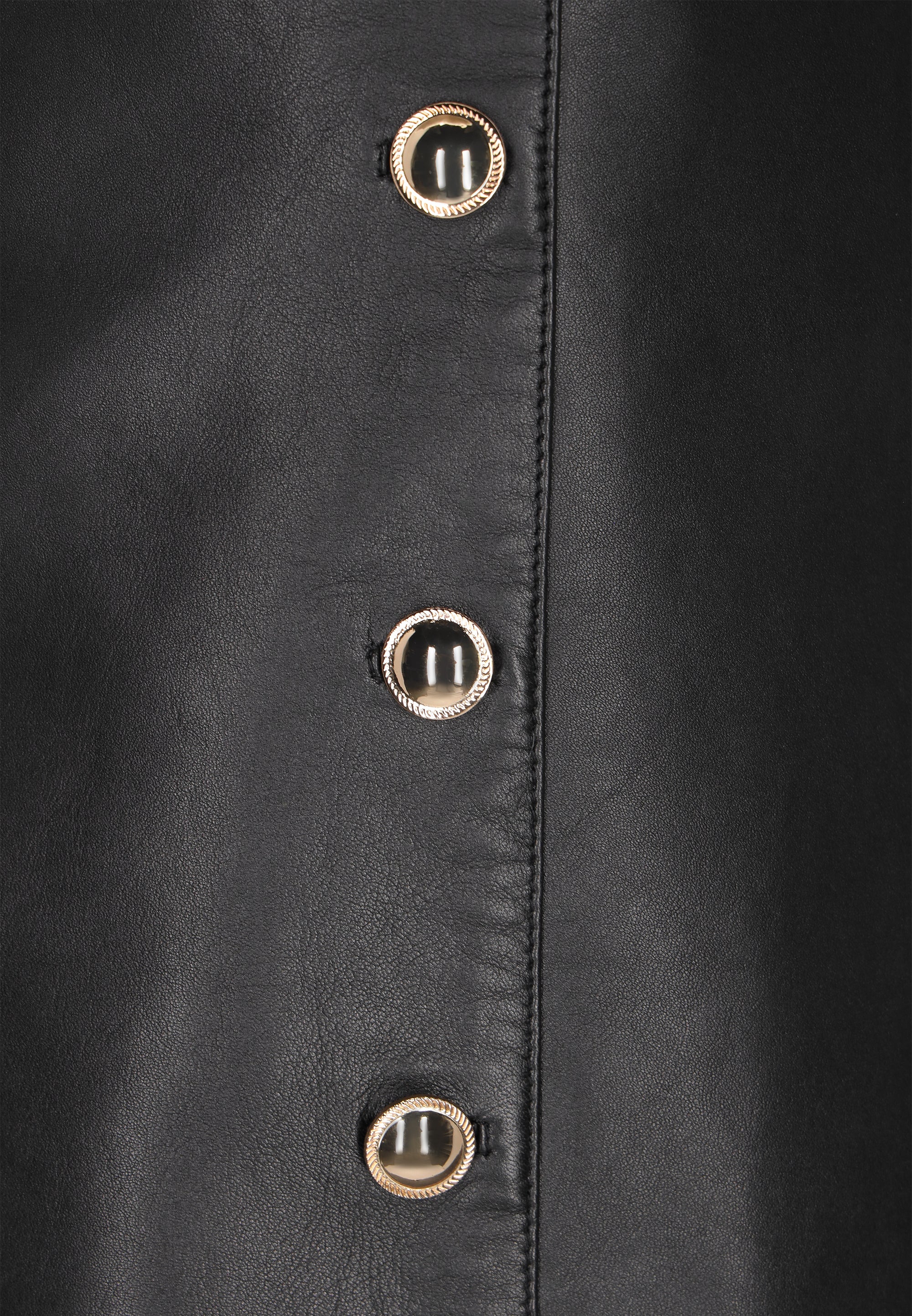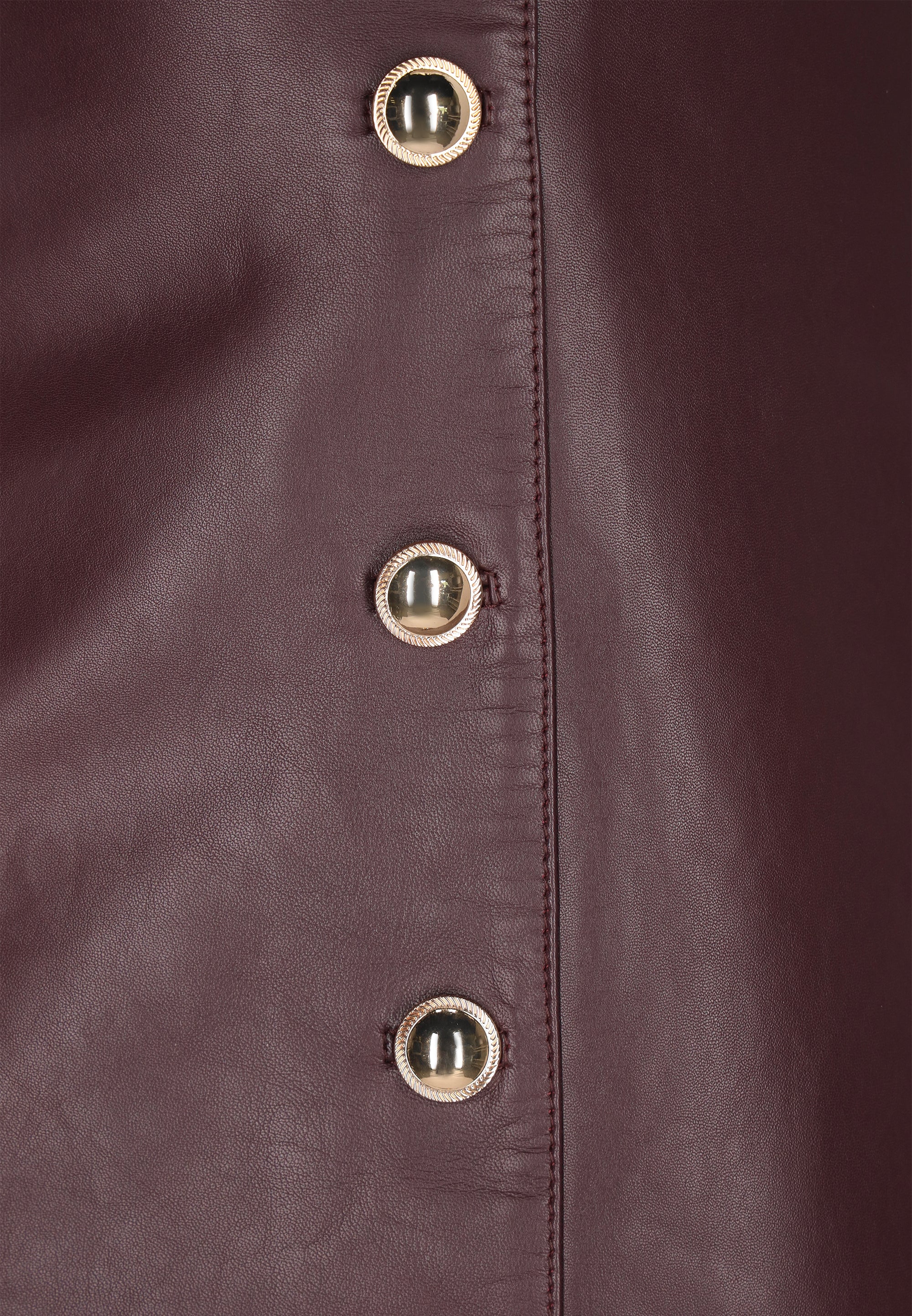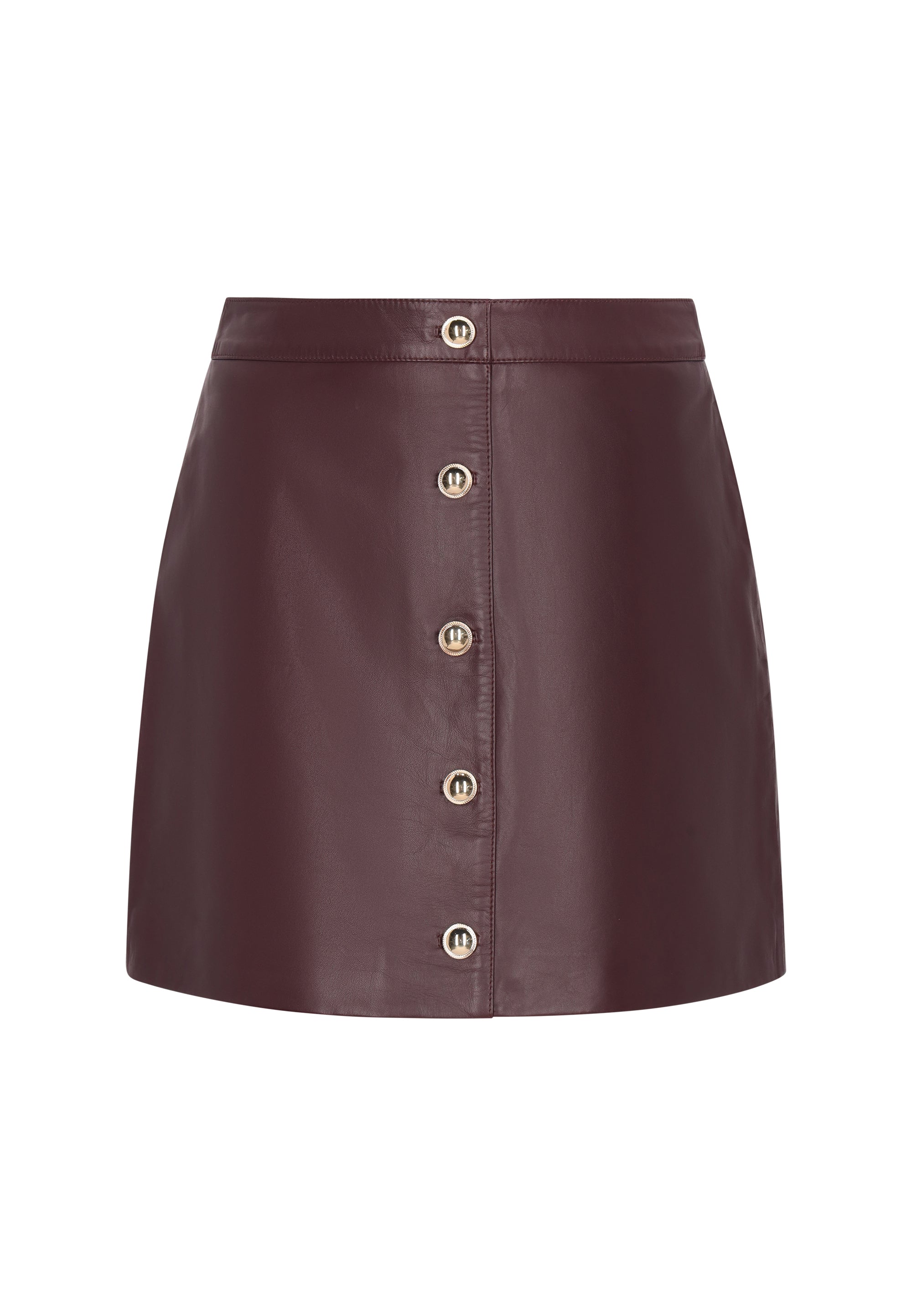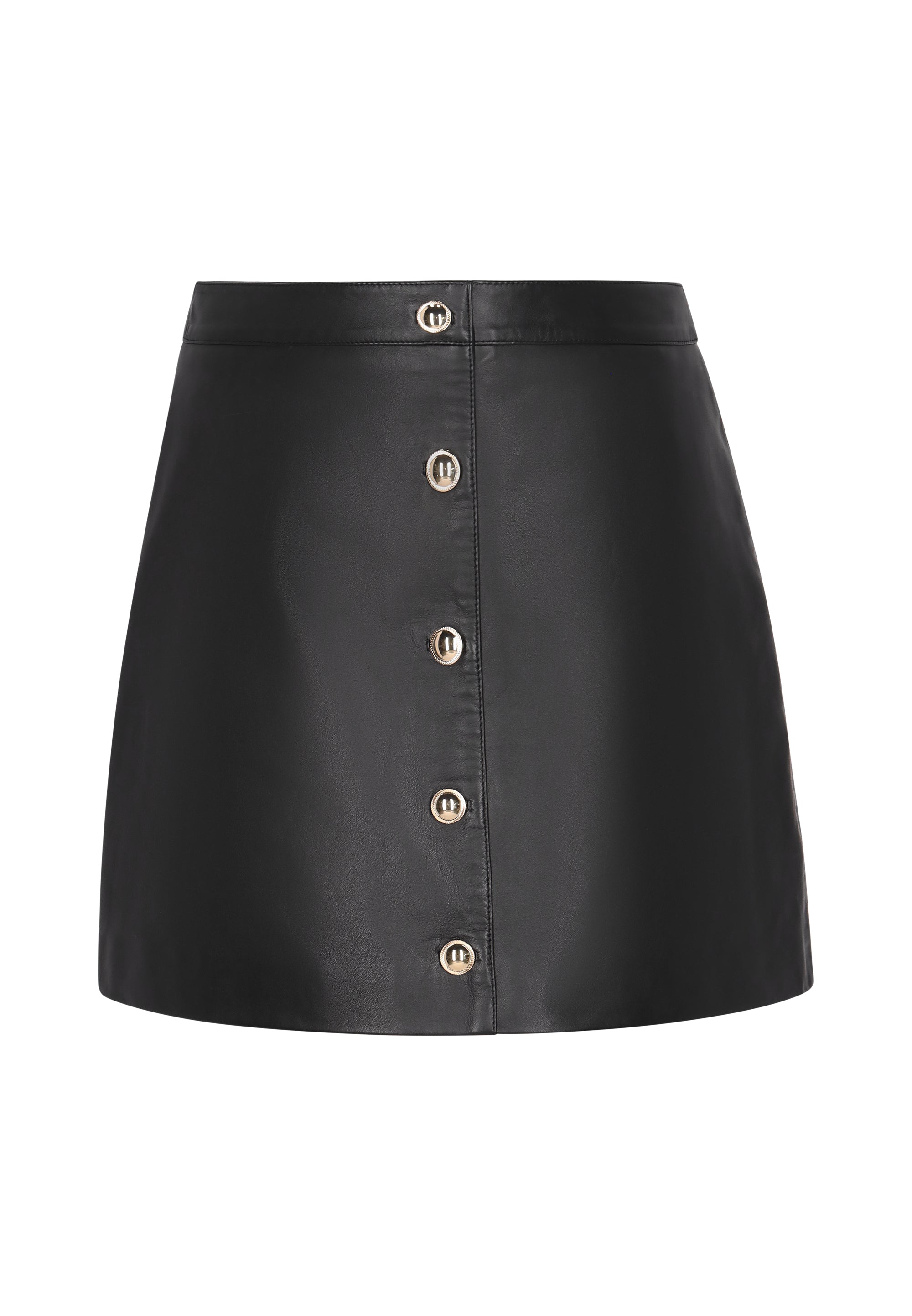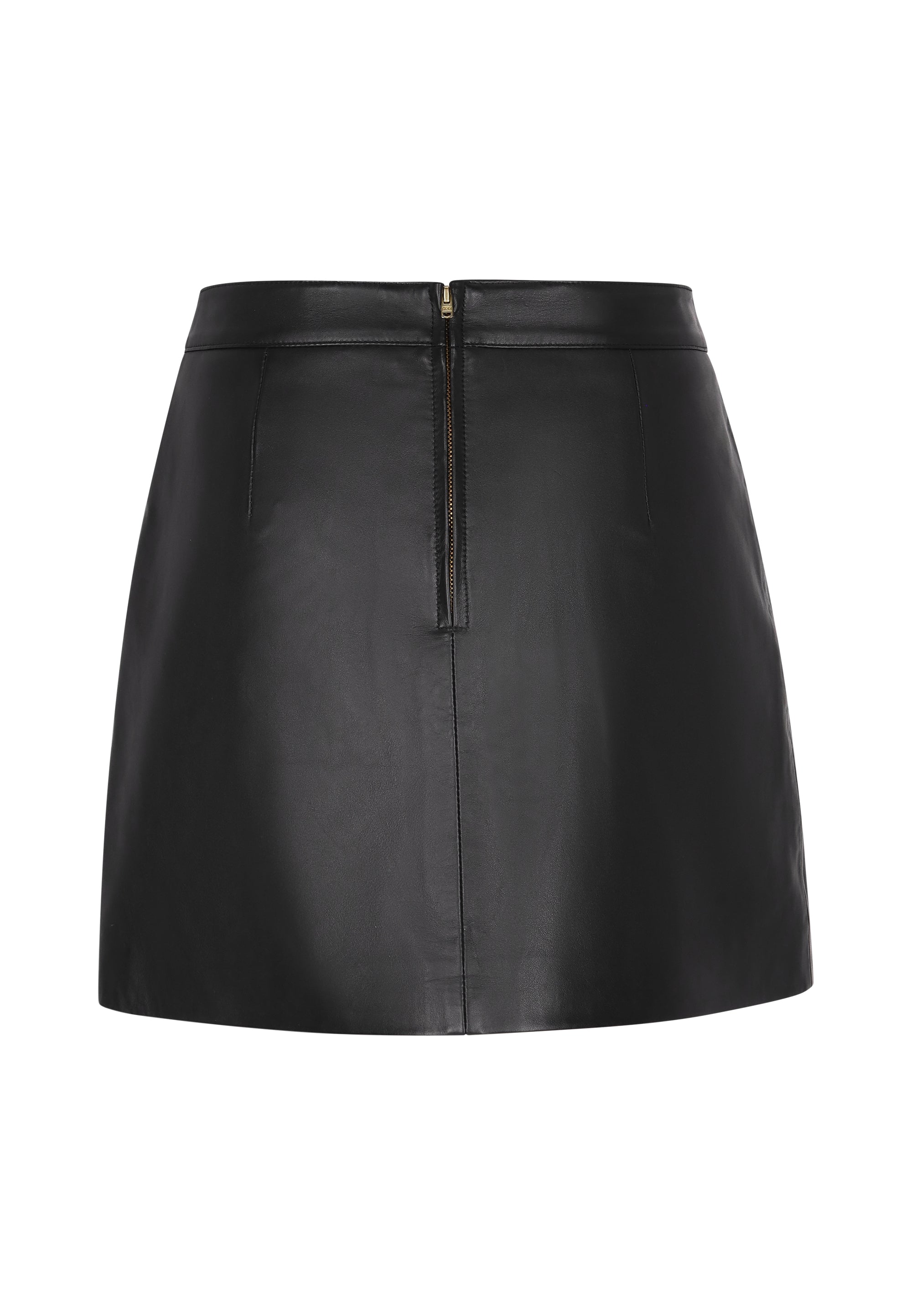 Step into sleek sophistication with this mini skirt from our Fashion Look Collection. Designed with a high waist and regular fit, it accentuates your silhouette while offering a timeless, elegant look. Made from premium lamb leather, this item features refined decorative buttons and a zipper closure for a polished finish. The plain color pattern adds versatility, making it the perfect choice for evening outings or special events. Stylish and statement-worthy, this skirt brings a modern edge to any elegant ensemble.
