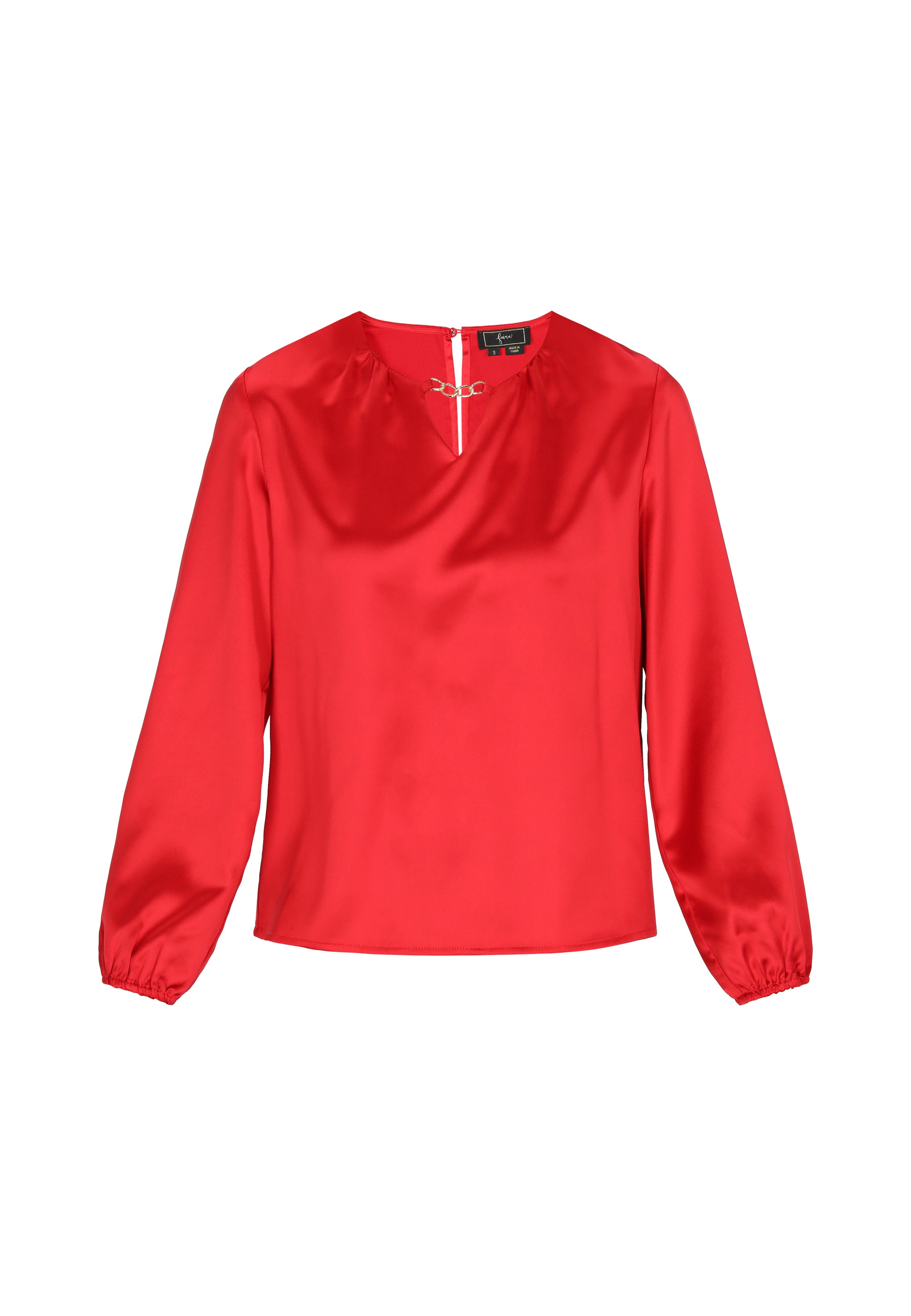 Embrace effortless elegance with this blouse from our Fashion Look Collection. Designed in a relaxed fit, it drapes beautifully for a sophisticated yet comfortable silhouette. The keyhole neck adds a subtle touch of allure, while the long bishop sleeves with elastic cuffs bring a graceful, feminine charm. Made from a woven fabric in a plain pattern, it exudes timeless refinement and versatility. Perfect for elegant events or stylish occasions, this blouse is a must-have item that seamlessly combines classic design with modern fashion appeal.