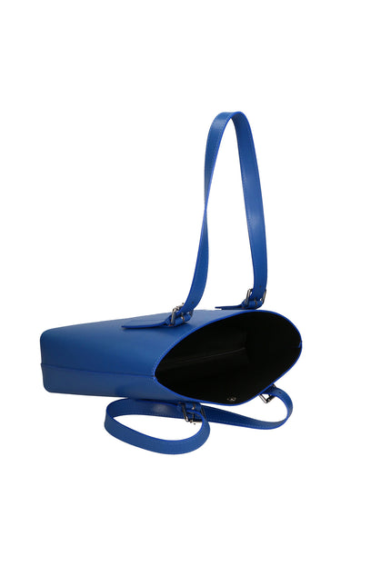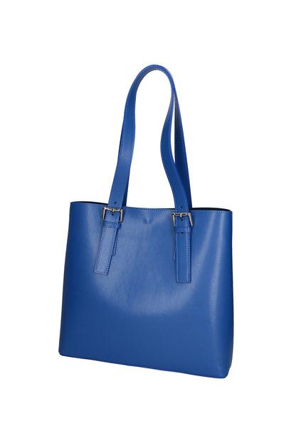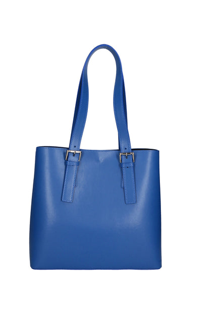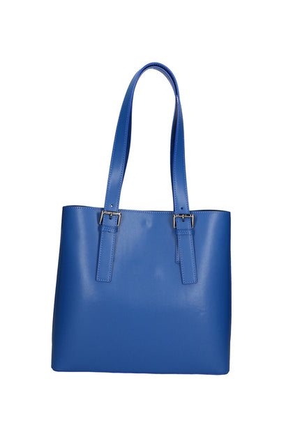 Elevate your style with this trapeze handbag, designed for everyday versatility in the Fashion Look Collection. It fits A4 documents effortlessly and features top handles for easy carrying. The main compartment includes a secure zipper and snap button closure, while the chic metal buckles and plain leather finish add a casual yet sophisticated touch to any outfit.