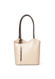 Elevate your style with this structured handbag, featuring a sleek, upright design. The wide base tapers towards the top and is complemented by two shoulder straps that make it easy to carry. A vertical zip pocket provides additional storage space, while the clean lines and minimal embellishments give the bag a timeless and versatile appeal.