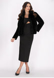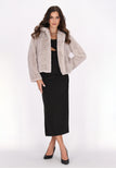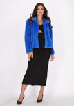 Discover this elegant outerwear piece made of luxurious faux fur for a chic touch. It has a loose fit, rounded collar fastened with jewel buttons and long sleeves for comfort. The jacket is also equipped with pockets, It is ideal for wearing for evening outings. It is part of the Fashion Look Collection.