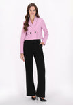 Discover a stylish double-breasted blazer. Its regular cut and cropped design, combined with a V-neck and lapel collar, exude elegance. Long sleeves and heart-shaped buttons add a romantic touch. Darts provide a fitted silhouette, while lining ensures comfort. This woven blazer with a smooth finish is a stylish addition to your wardrobe from our Fashion Look Collection.