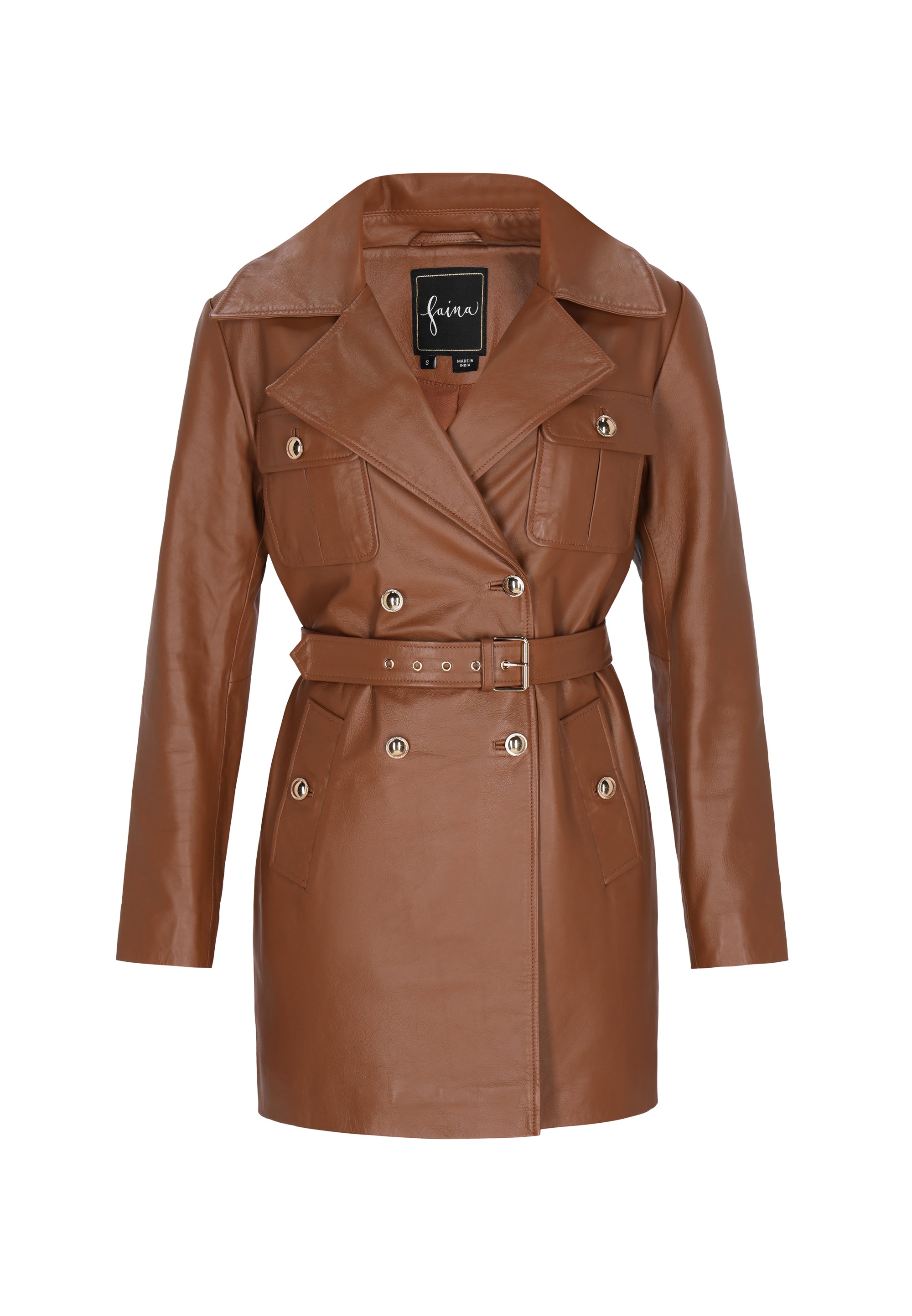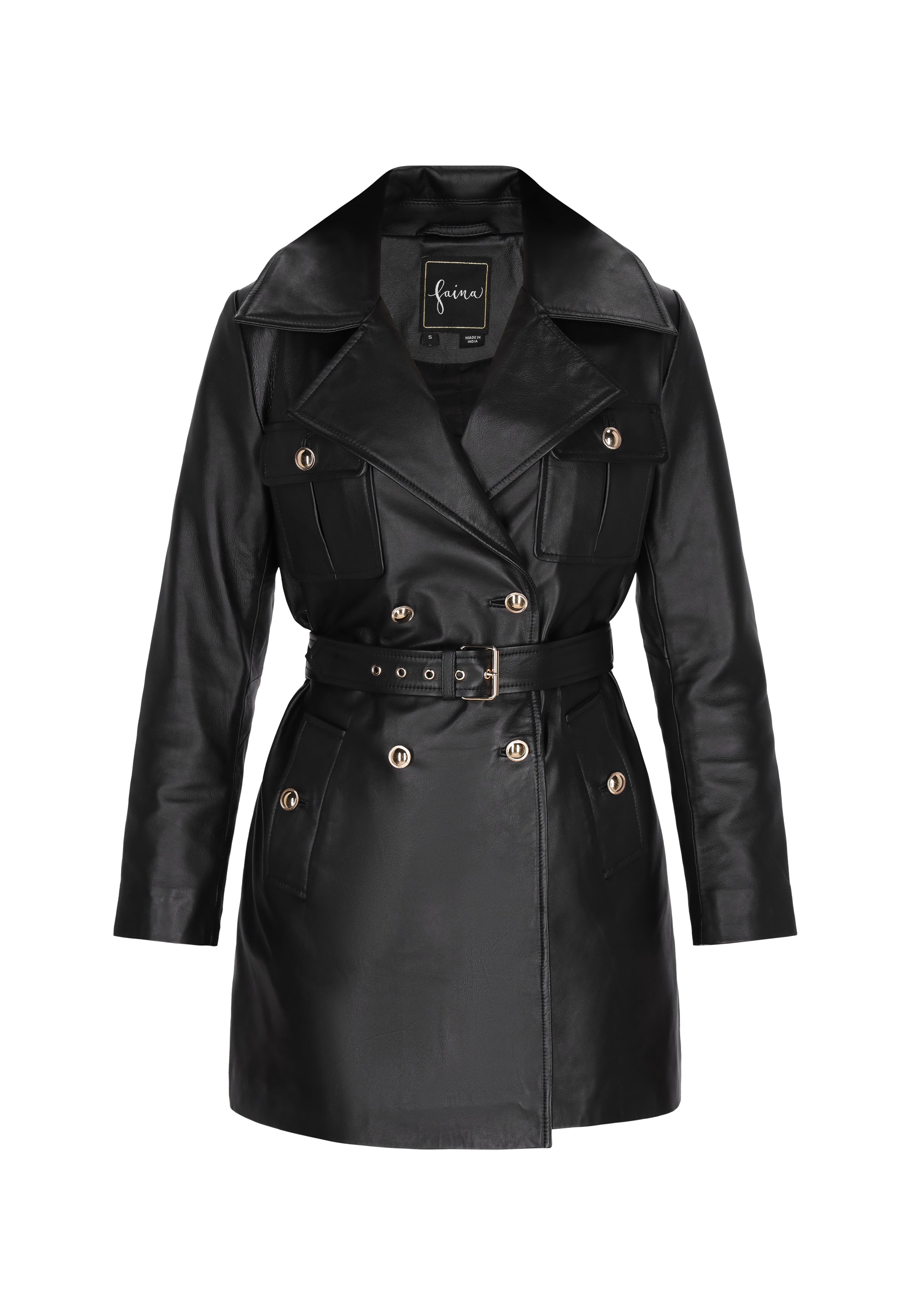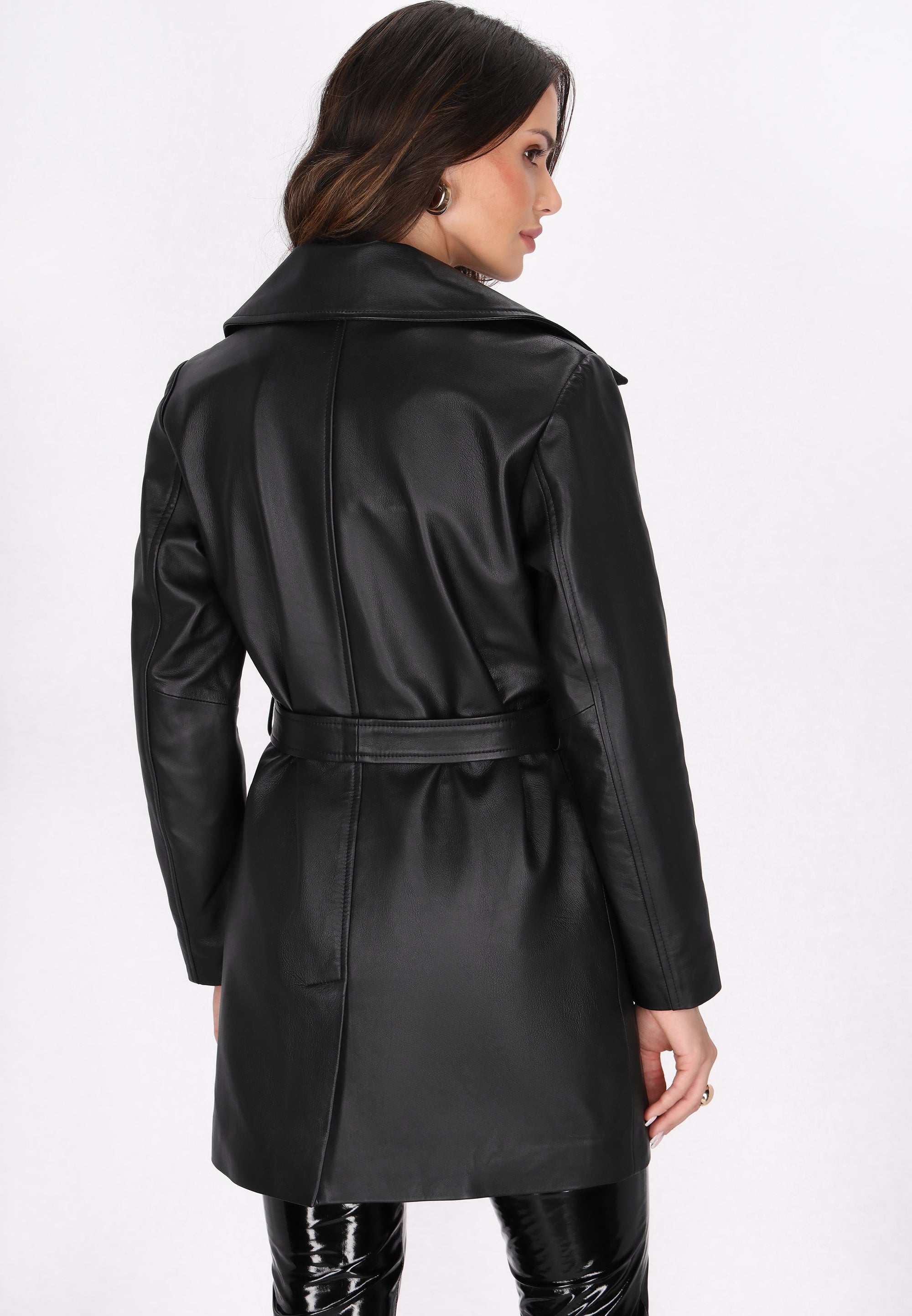 Enrich your closet with this elegant double-breasted coat with a regular fit. It features a classic lapel collar, long sleeves and pockets adorned with decorative buttons combining style and functionality. With a belt included, this stylish lambskin coat is the perfect choice for any chic occasion. It is part of the Fashion Look Collection.