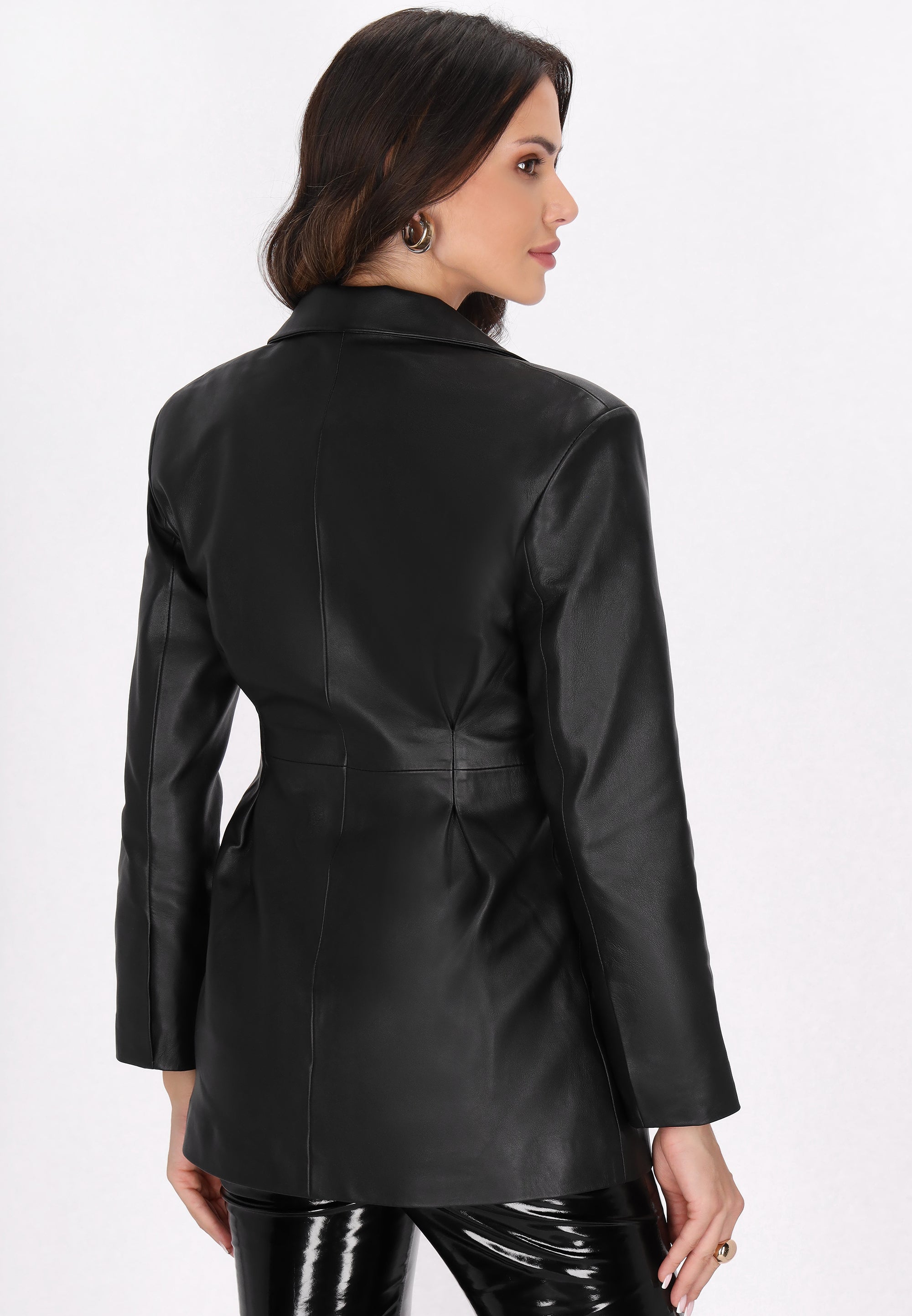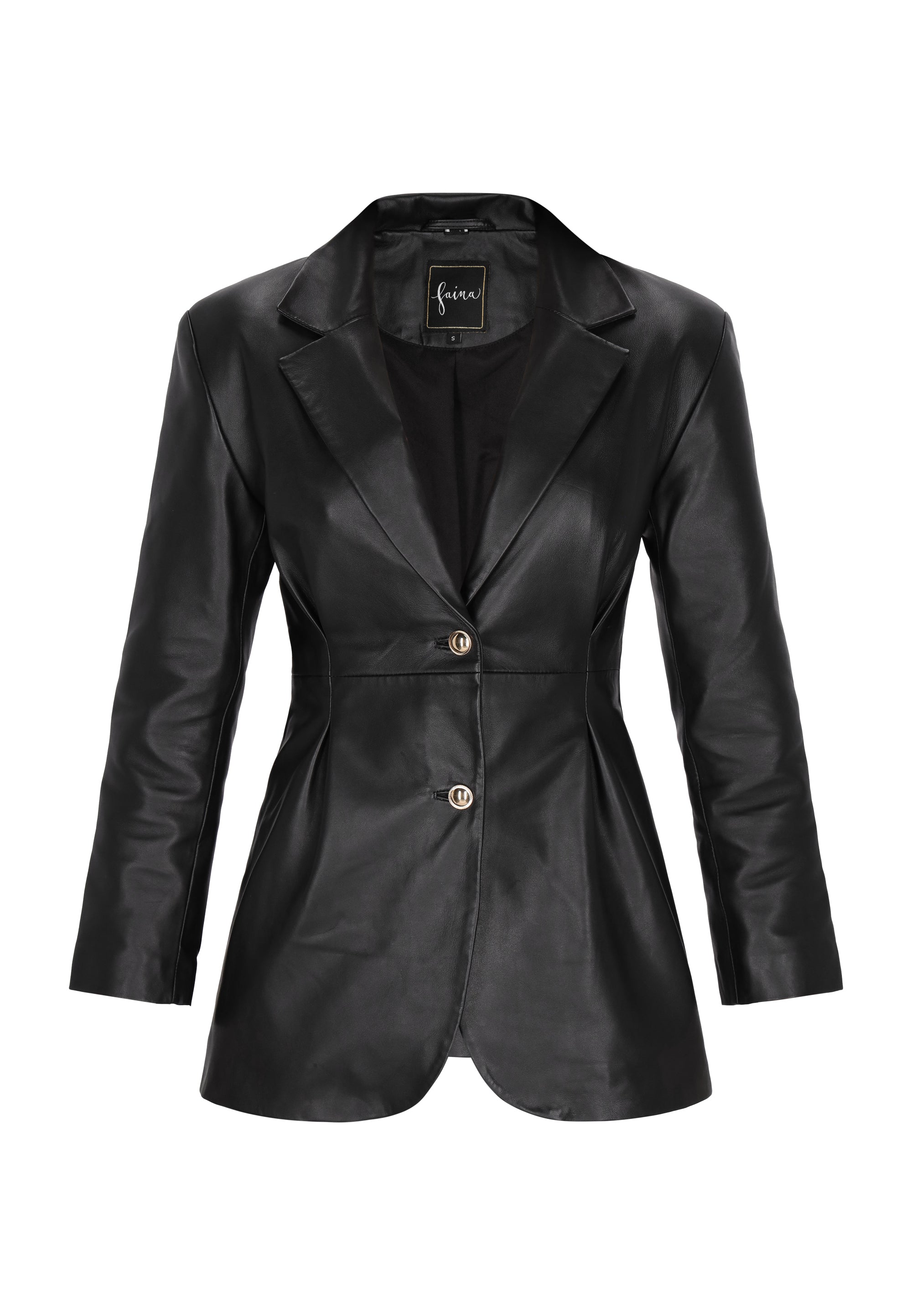 Opt for sophistication with this fitted jacket featuring a regular fit and classic lapel collar. The single-breasted cut embellished with decorative buttons exudes elegance, while the darts create a stylish silhouette. Ideal for formal or semi-formal events, this lambskin model from the Fashion Look Collection will refine your outerwear with a sophisticated finish.