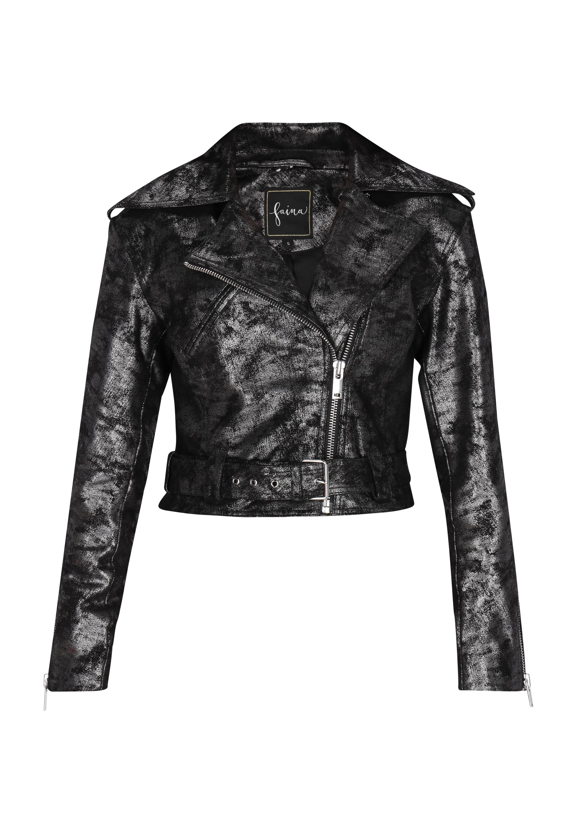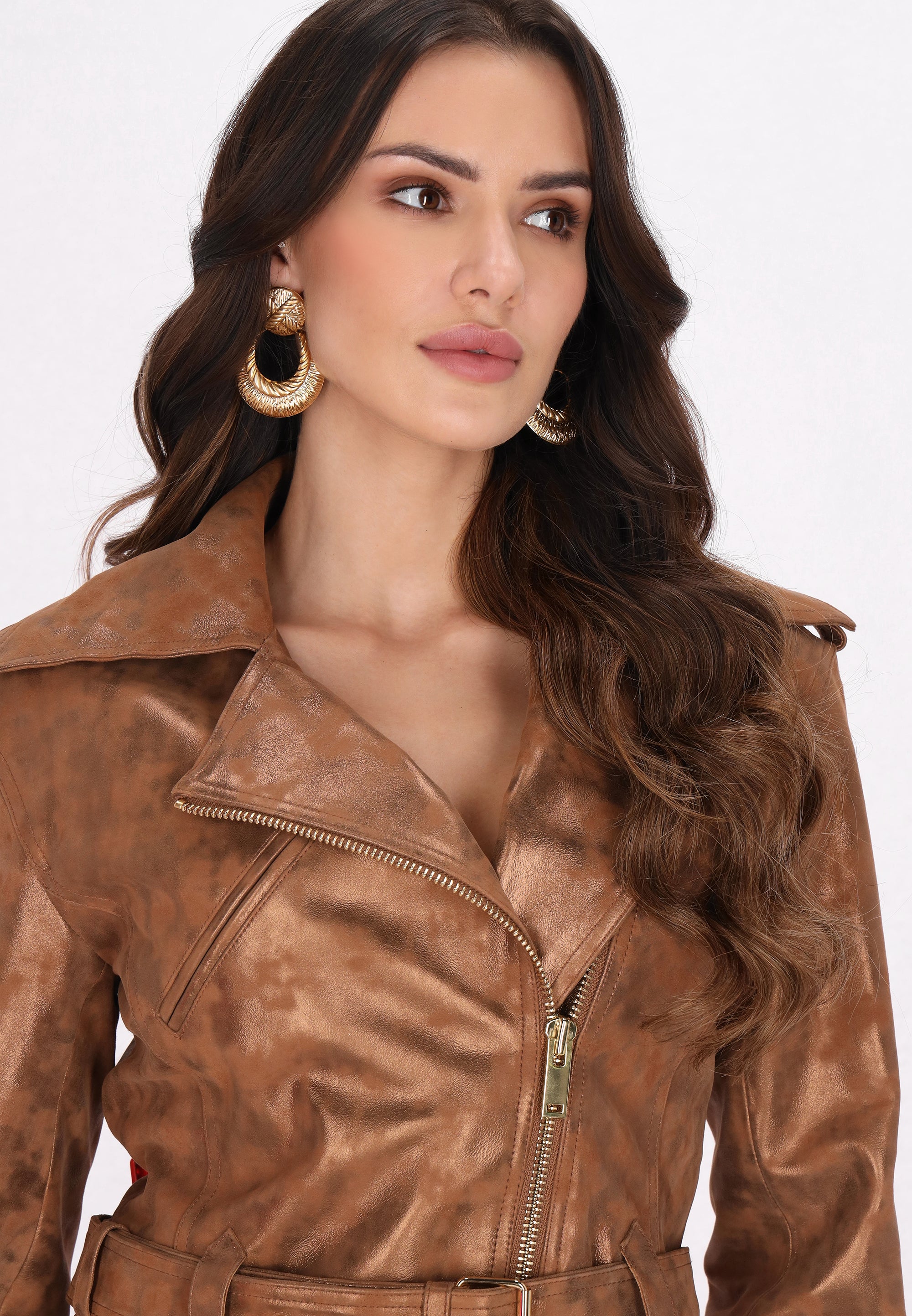 Refresh your style with this regular-fit Biker jacket, featuring a classic lapel collar and long sleeves with elegant zipper closures. Shoulder epaulettes and a belt provide fashionable style, while metallic accents elevate its sleek look. Zipper closure. Perfect for any event, this stylish jacket from the Fashion Look Collection is both chic and practical.
