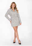Elevate your style with this elegant cropped jacket from the Fashion Look Collection. Featuring a chic lapel collar and long sleeves, it features a woven check pattern. The decorative clasp adds a touch of chic, while the sequins add a touch of sparkle. Perfect for evening events, this piece is a must-have for any fashionista.