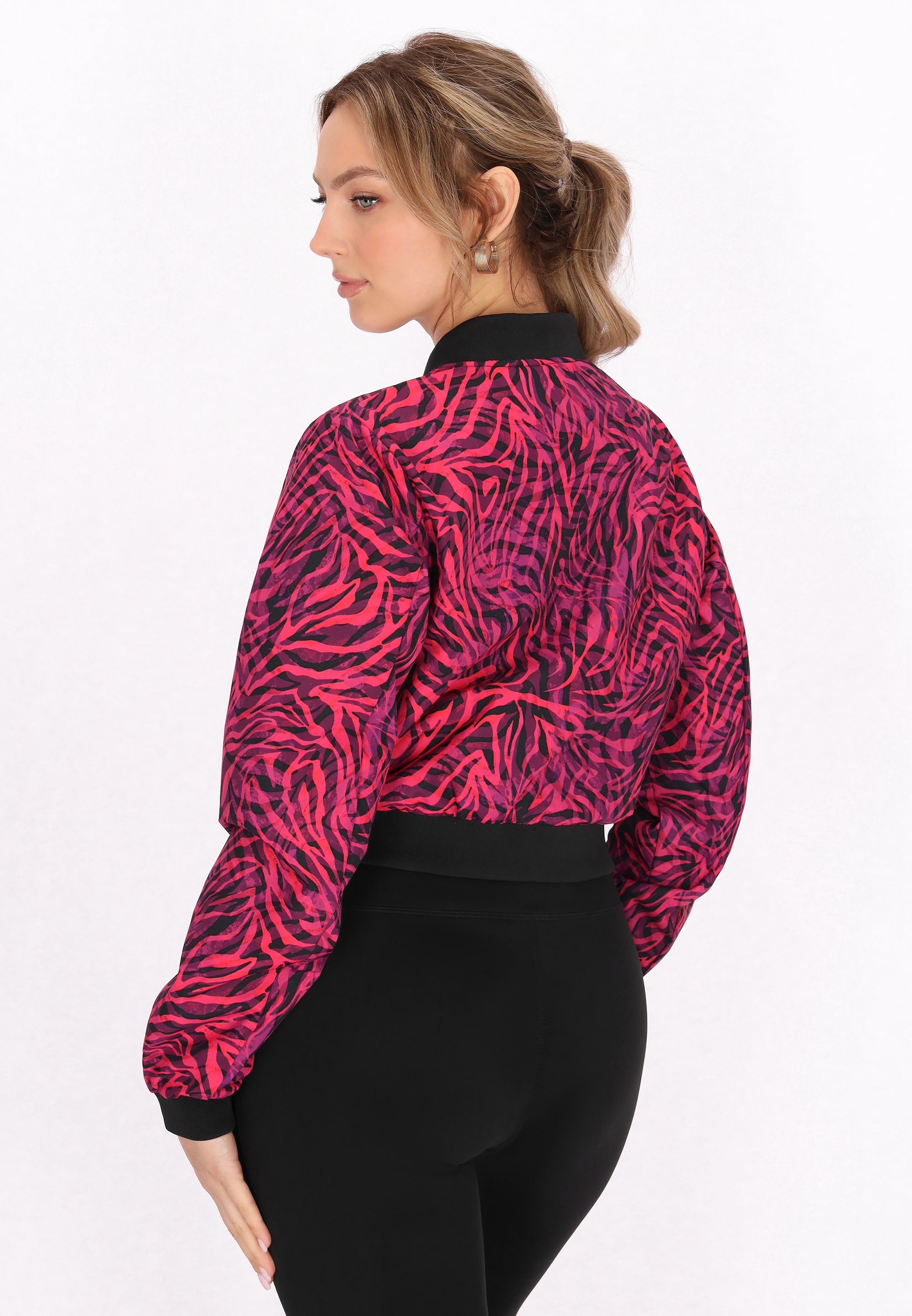 Unleash your style with this trendy bomber jacket, designed with a relaxed fit. The zip-up front and ribbed collar give it a sporty vibe, while the long sleeves have elastic cuffs for extra comfort. Made from woven fabric, the abstract print elevates your everyday fashion game, making it an essential garment in your casual Outwear Collection.