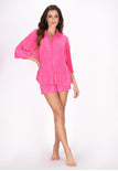 Feel the comfort with this fashionable nightwear set in a relaxed fit. The classic button-down shirt has a stylish classic collar and 3/4 sleeves, while the ruffled trim adds a chic touch. Made of luxurious satin, this set showcases elegant pleated details, making it ideal for those who appreciate both style and relaxation in their nightwear. Paired with short shorts, they will ensure relaxation while you rest or sleep. It is part of the Sleepwear Collection.