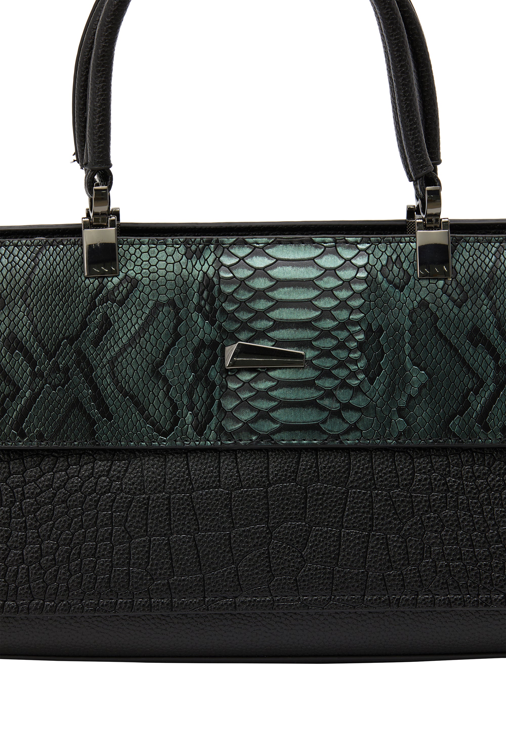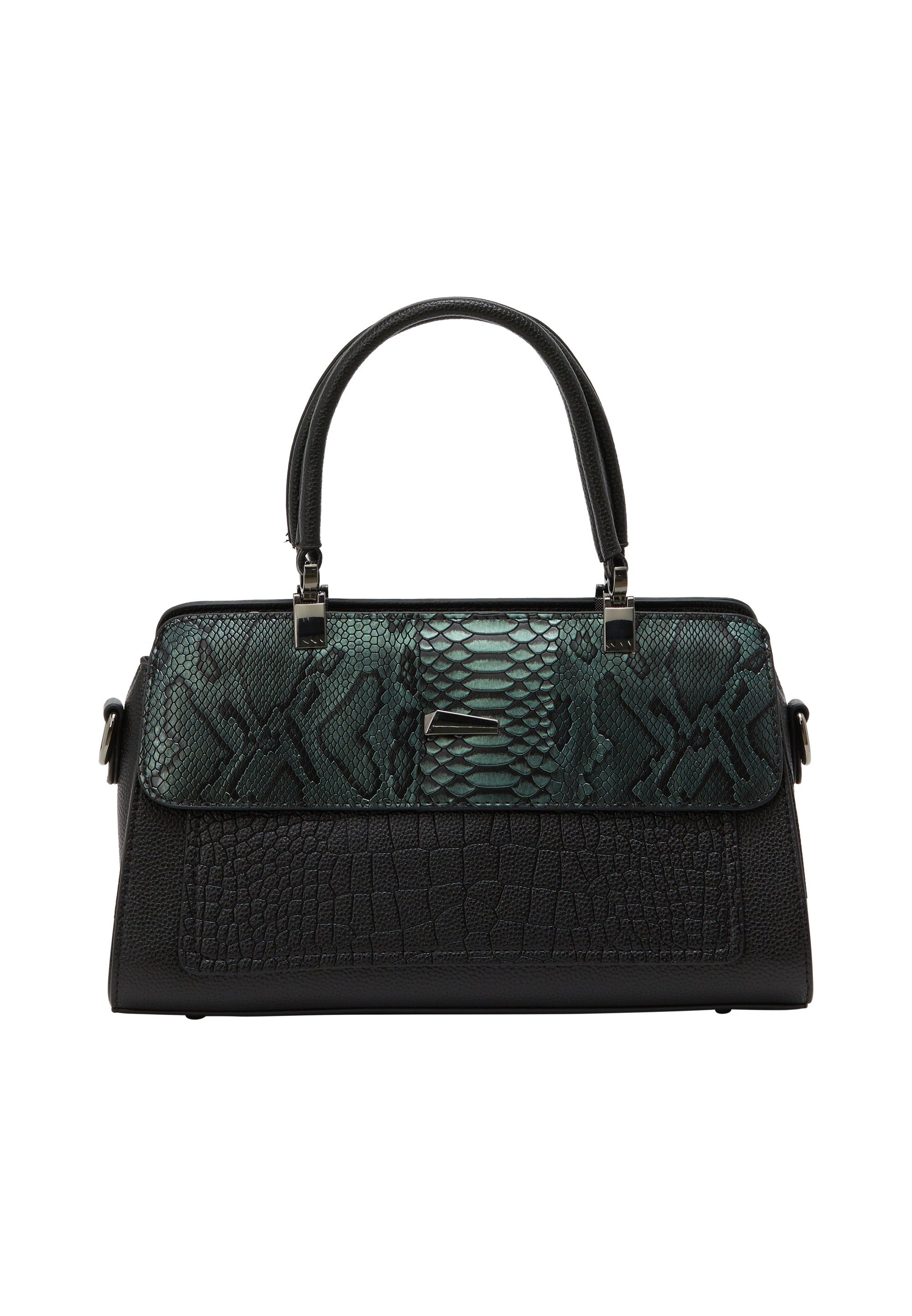 Elevate your style with this sophisticated handbag showcasing an alligator pattern. Its structured silhouette features a glossy front panel that contrasts beautifully with the textured body. A secure metallic clasp and zipper closure ensure safety, while the zippered external pocket adds functionality. Complete with an additional strap, it's perfect for elegant occasions.