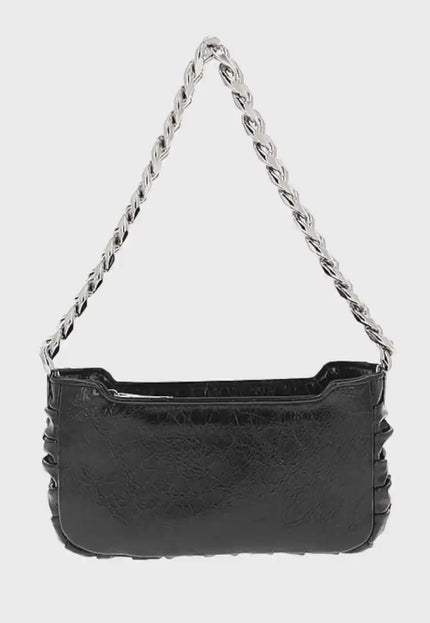 Discover this stylish shoulder bag, designed with a sleek rectangular shape and rounded top edge. The plain color pattern enhances its sophisticated look, while subtle pleats add flair. Featuring a durable chain strap and practical zipper closure, it includes an inner pocket for essentialsideal for any casual occasion while maintaining elegance effortlessly.