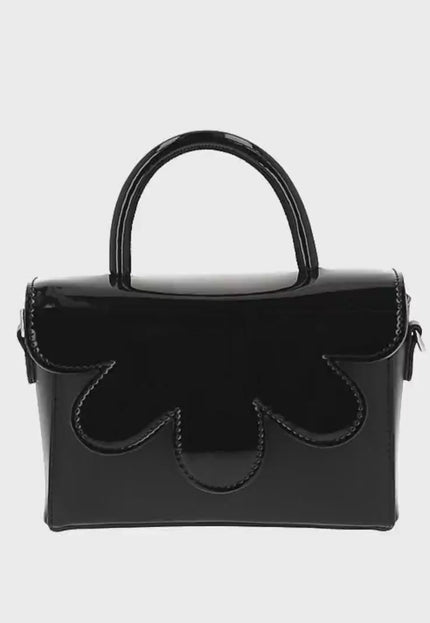 Elevate your style with this structured handbag showcasing a boxy silhouette and a convenient top handle for effortless carrying. The chic flap closure enhances its appeal, while the decorative flower design adds flair. With elegant chain detailing on the handle, this bag is ideal for casual occasions and features inner pockets for added practicality.
