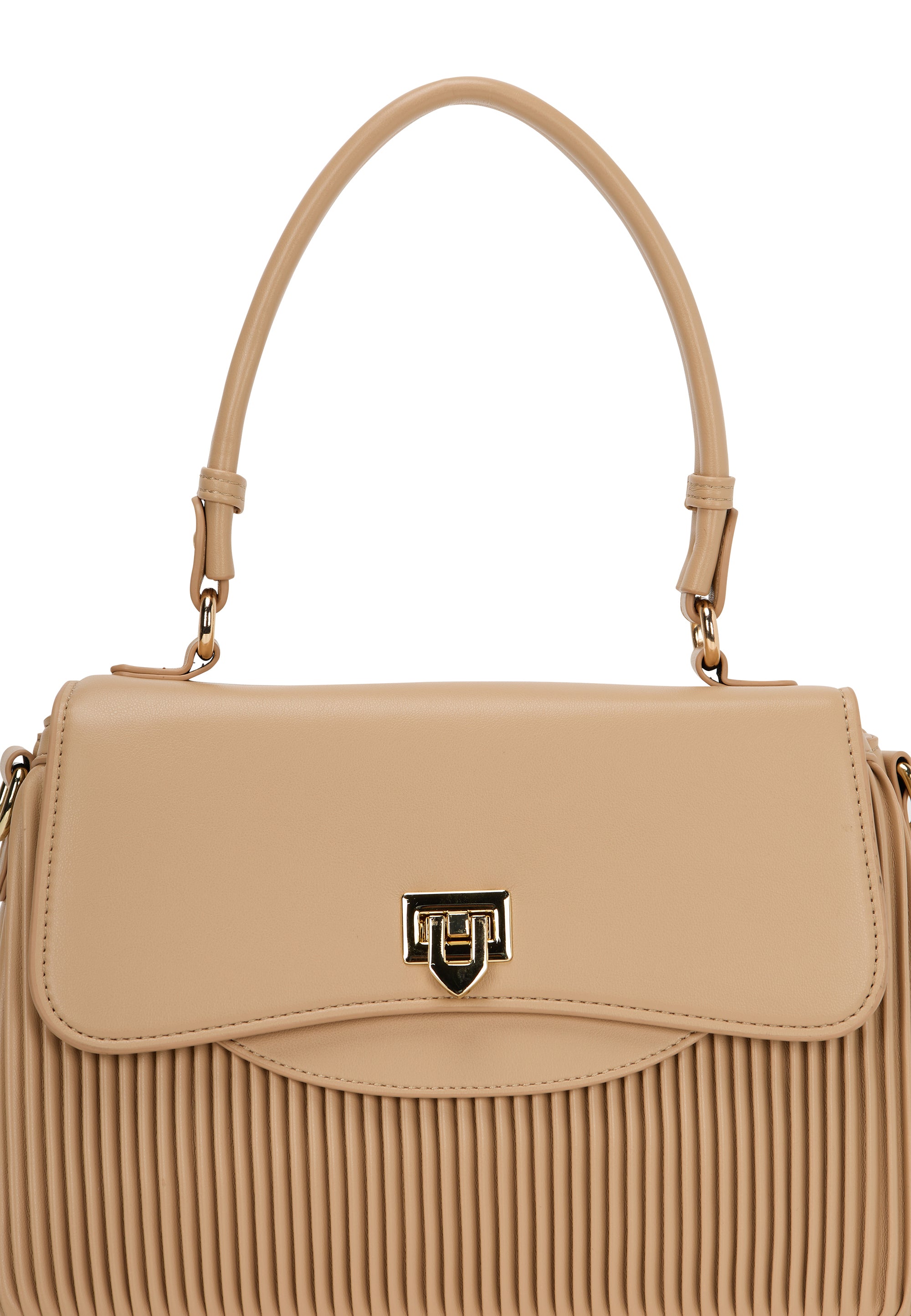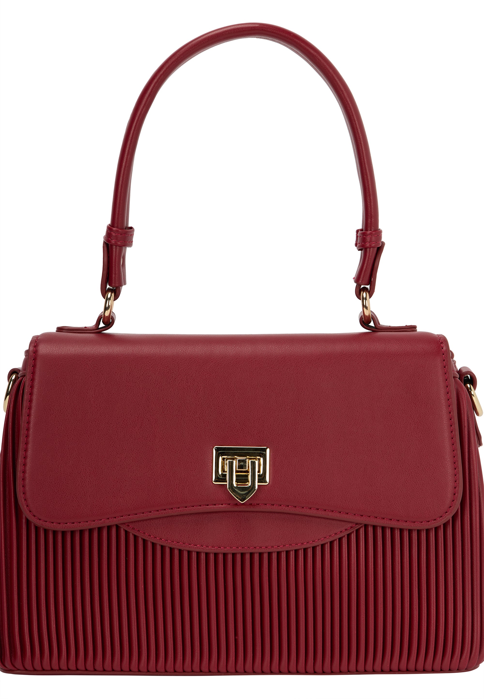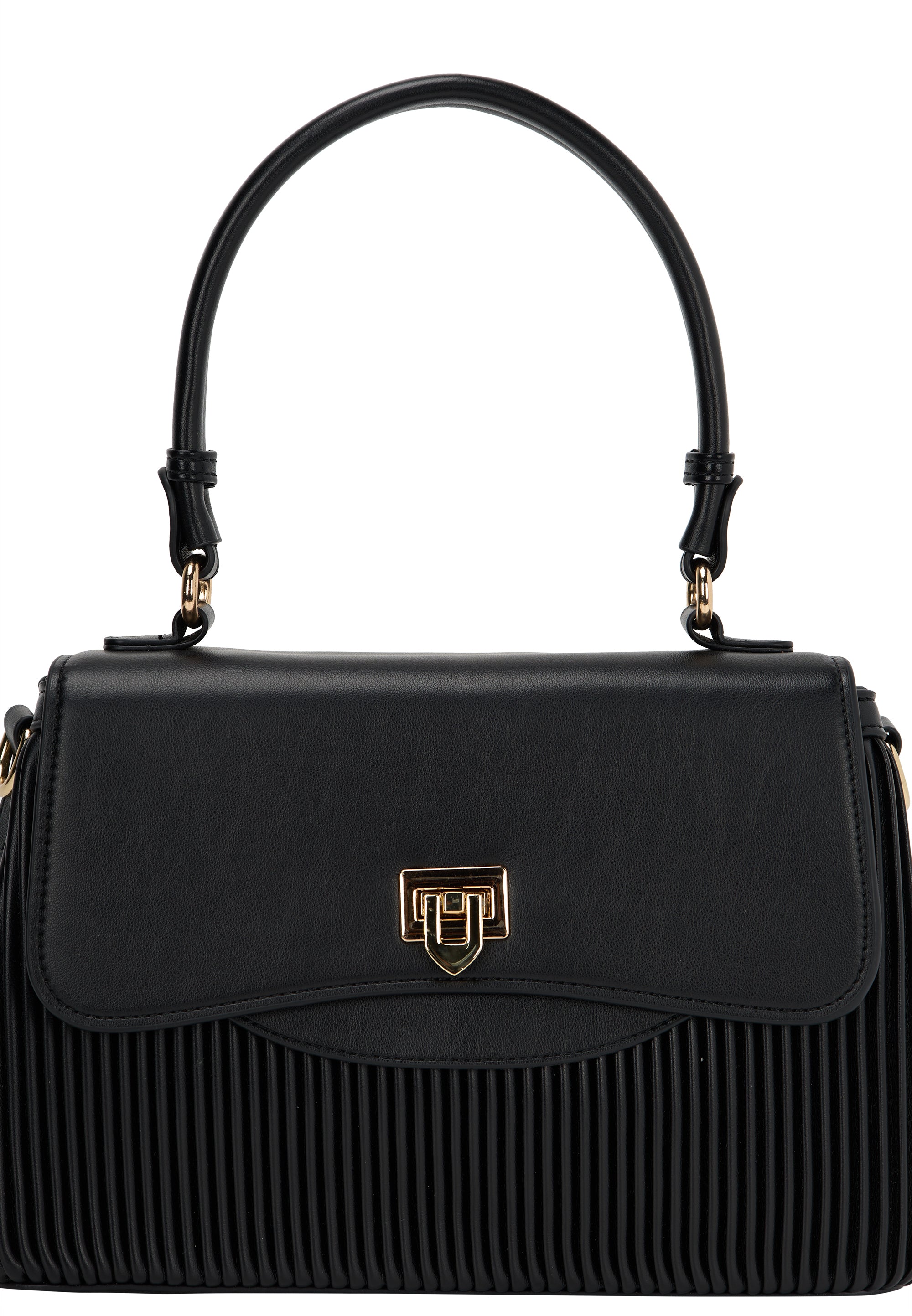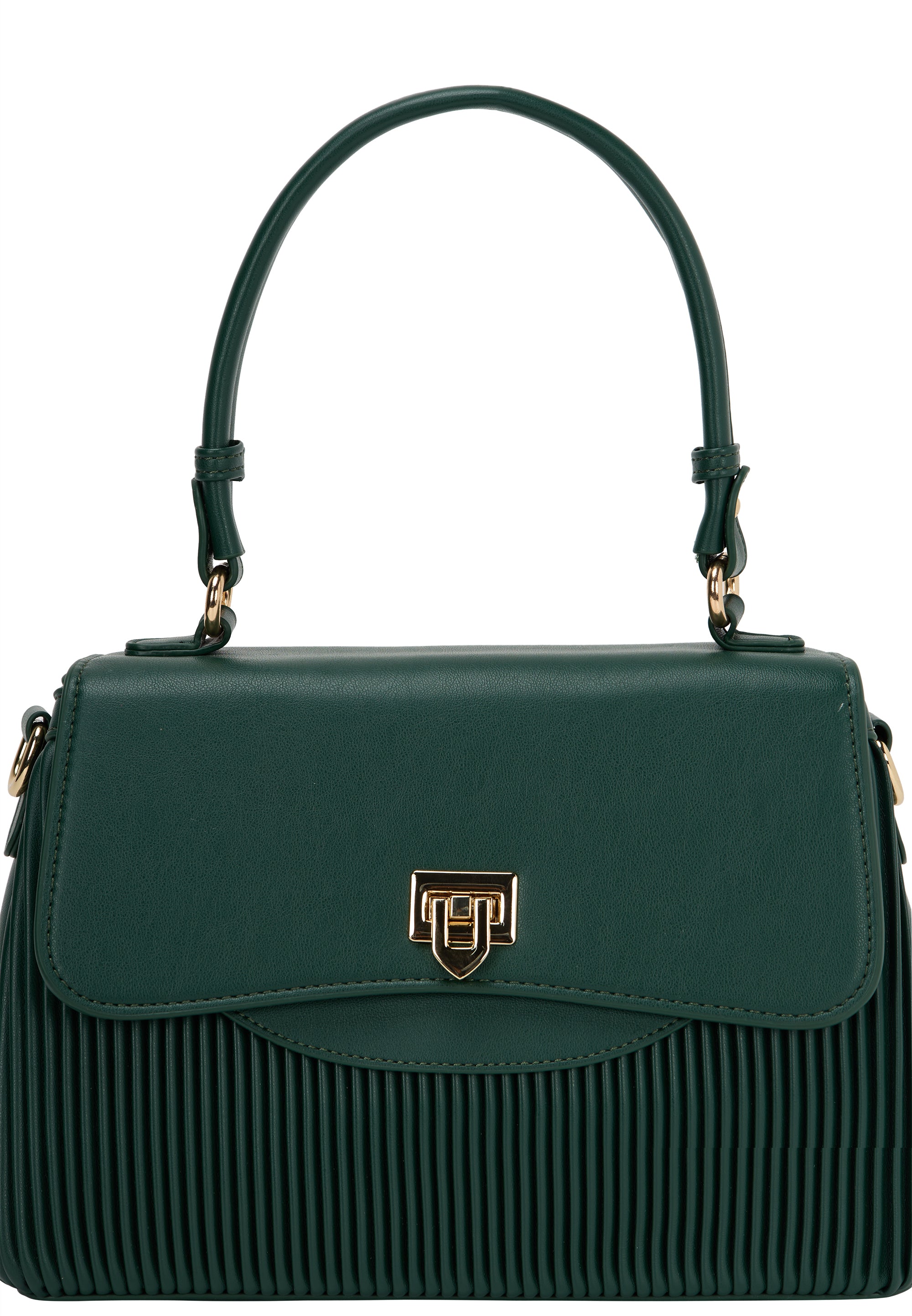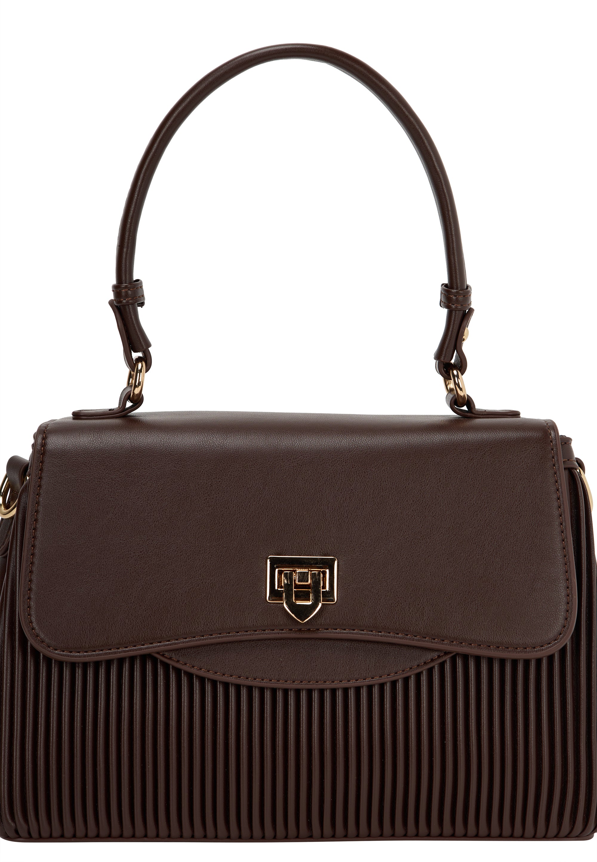 Discover a sophisticated handbag designed with a structured silhouette, featuring a top handle and an additional strap for versatility. The elegant clasp on the front flap adds charm, while the plain color pattern enhances its appeal. With three compartments inside, this bag is ideal for any elegant occasion you have in mind.