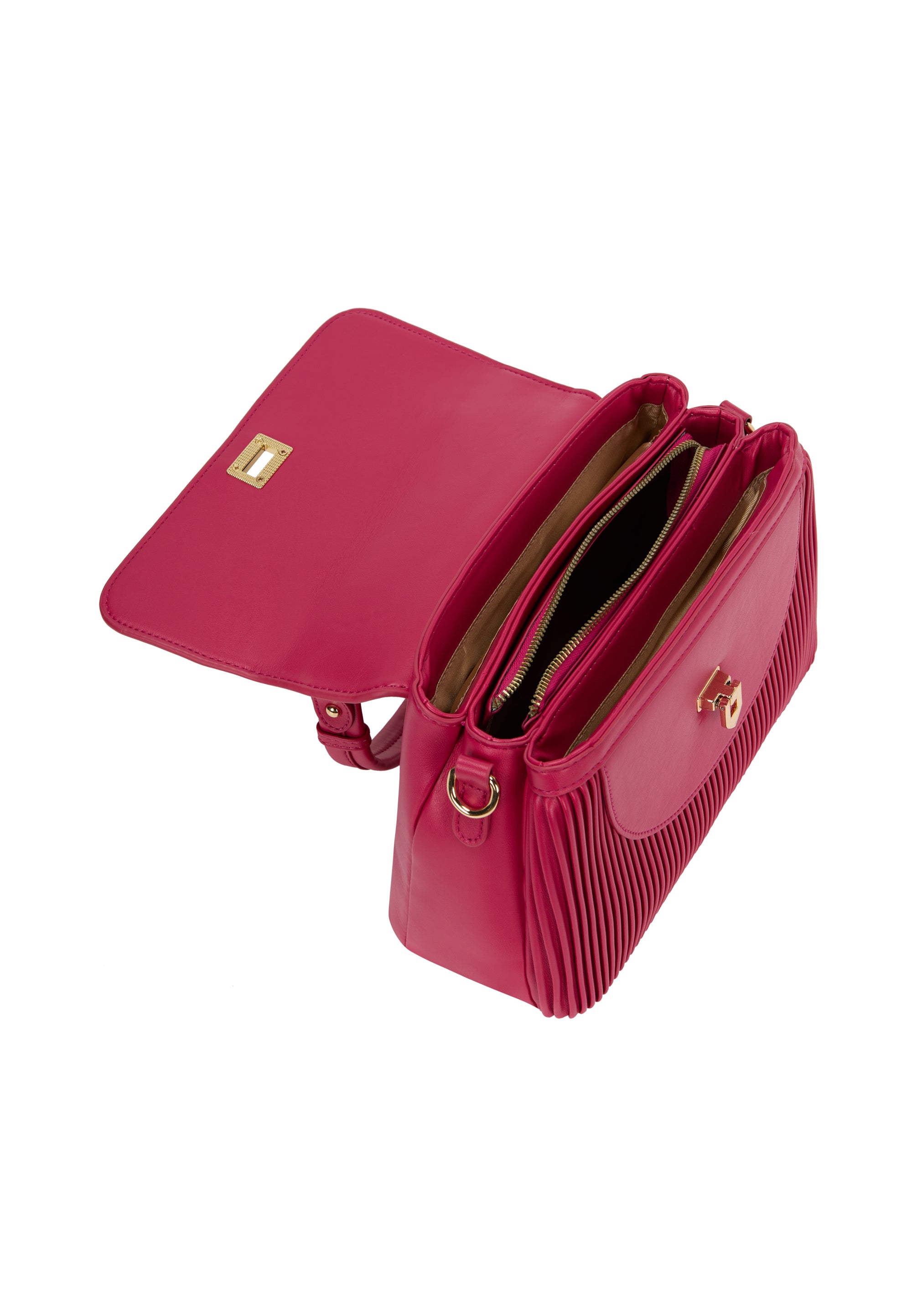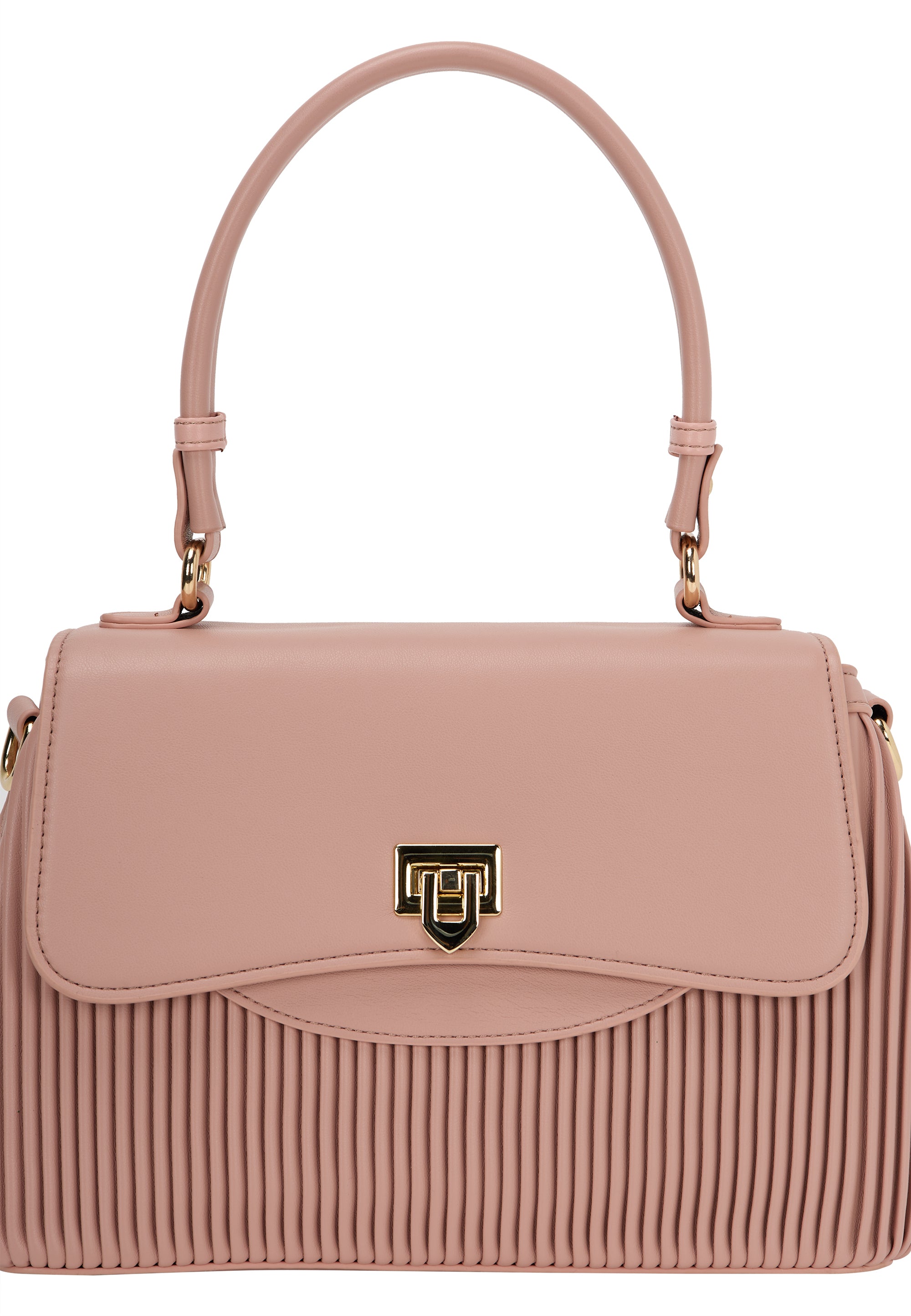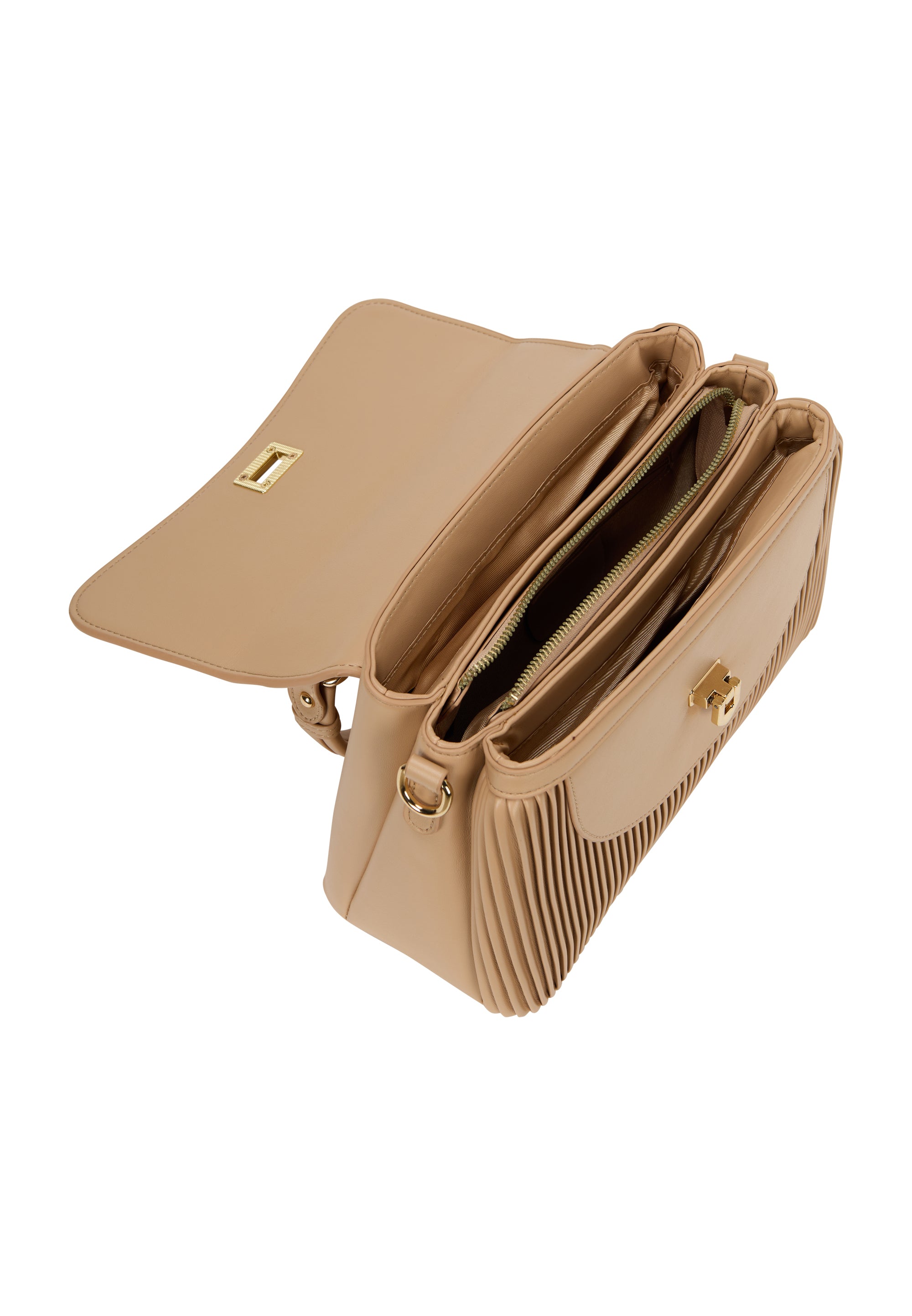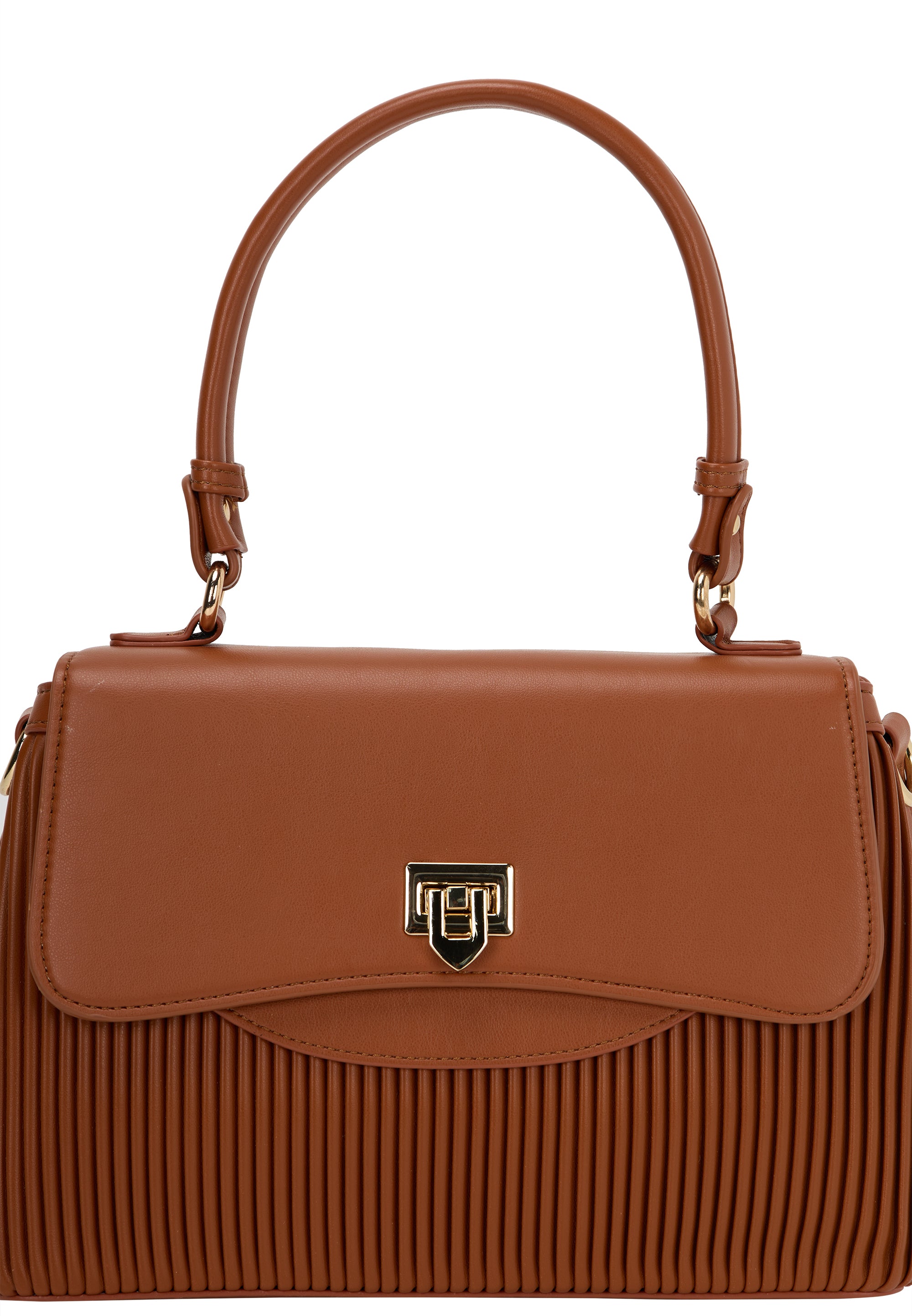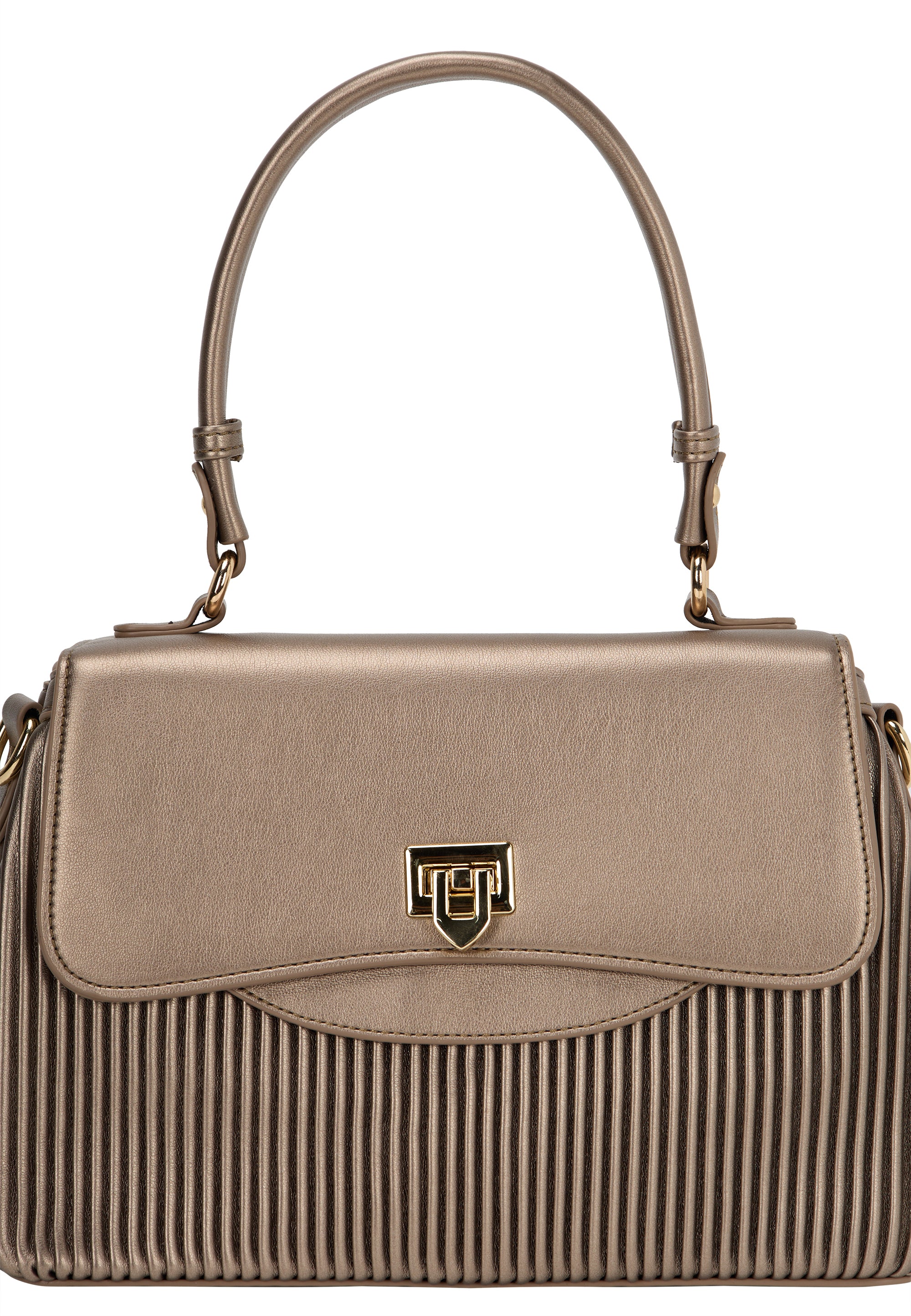 Discover a sophisticated handbag designed with a structured silhouette, featuring a top handle and an additional strap for versatility. The elegant clasp on the front flap adds charm, while the plain color pattern enhances its appeal. With three compartments inside, this bag is ideal for any elegant occasion you have in mind.
