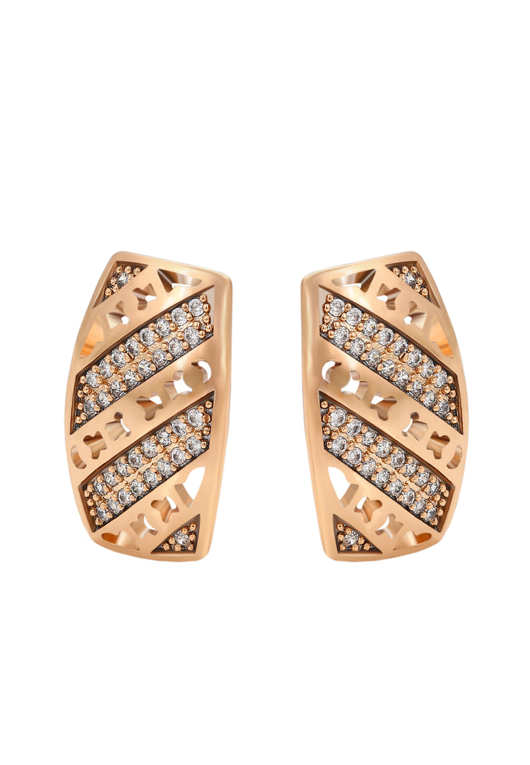 Experience luxury with these elegant copper stud earrings, beautifully adorned with sparkling crystals that shimmer with every movement. Featuring a shiny pattern and secured with a butterfly clutch, they offer both comfort and secure wear. Their sophisticated and shimmering design makes them a versatile addition to the Jewelry Collection, perfect for elevating both everyday and special occasion looks.