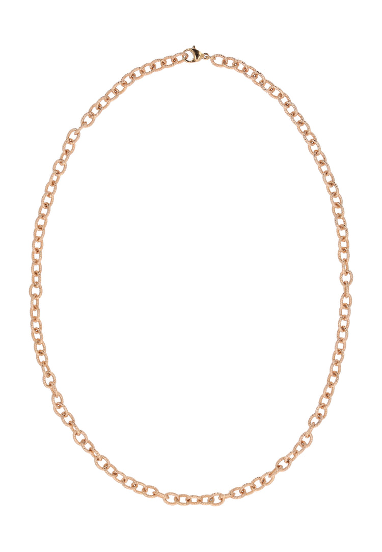 Add a refined edge to your style with this chain necklace from our Jewelry Collection. Expertly made from high-quality copper, it features a textured pattern that enhances its elegant and timeless appeal. Secured with a lobster clasp, this piece ensures both comfort and durability. Versatile and effortlessly stylish, its perfect for complementing everyday outfits or adding a sophisticated touch to special occasions.