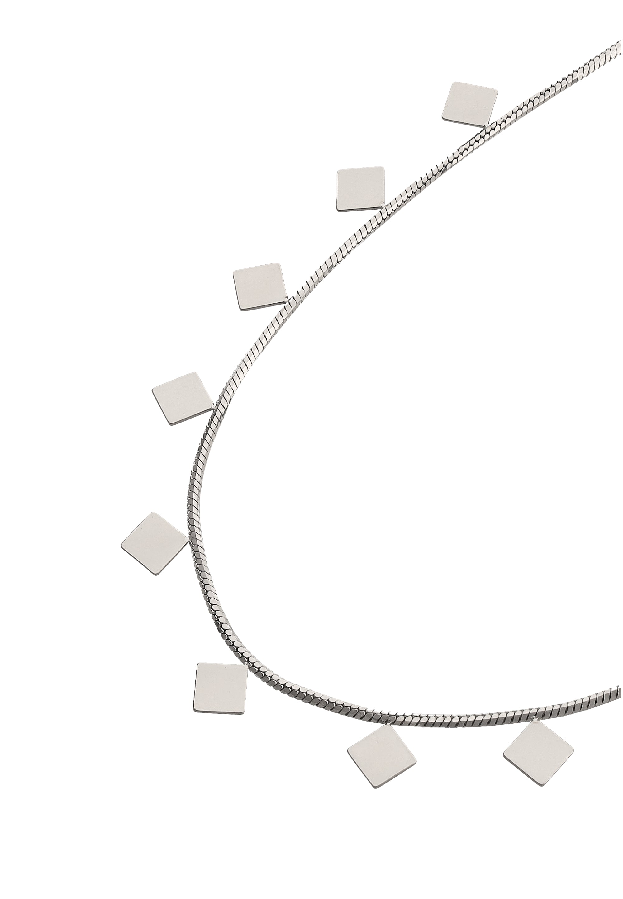 Add a touch of timeless elegance with this snake chain necklace from our Jewelry Collection. Crafted from durable stainless steel, it features a plain pattern accented with delicate charms for a refined look. Secured with a reliable lobster clasp, this elegant and versatile piece effortlessly complements both everyday outfits and special occasion ensembles, making it a must-have addition to any jewelry collection.