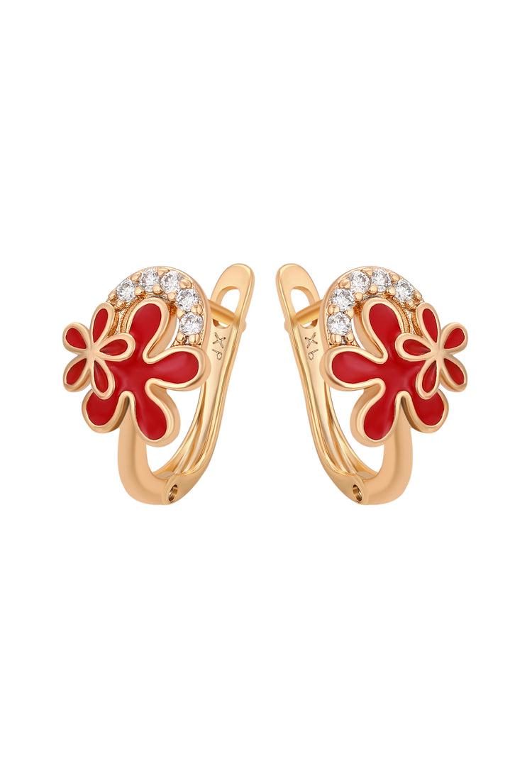 Experience timeless elegance with these stunning copper earrings, featuring a delicate floral motif adorned with shimmering rhinestones. The intricate floral pattern and secure latch back closure combine beauty with comfort and reliability. An elegant addition to our Jewelry Collection, perfect for adding a graceful sparkle to both everyday and special occasion looks.