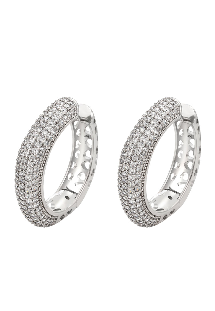 These huggie hoop earrings from the Jewelry Collection feature a charming heart pattern, beautifully accented with shimmering rhinestones. Crafted from copper with a shiny finish, they exude elegance and timeless appeal. The hinged closure offers a secure and comfortable fit, making them perfect for both everyday wear and special occasions. Delicate yet eye-catching, these earrings add a touch of romantic sophistication to any jewelry collection.