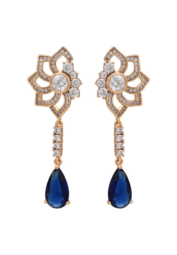 These luxurious drop earrings from the Jewelry Collection showcase a delicate floral motif, richly adorned with shimmering crystals and sparkling rhinestones. Crafted from copper with a radiant shiny pattern, they exude timeless elegance and refined sophistication. Secured with a classic butterfly clutch, these earrings offer both comfort and a secure fit, perfect for adding a shimmering accent to any ensemble. A graceful and dazzling addition to any jewelry collection.
