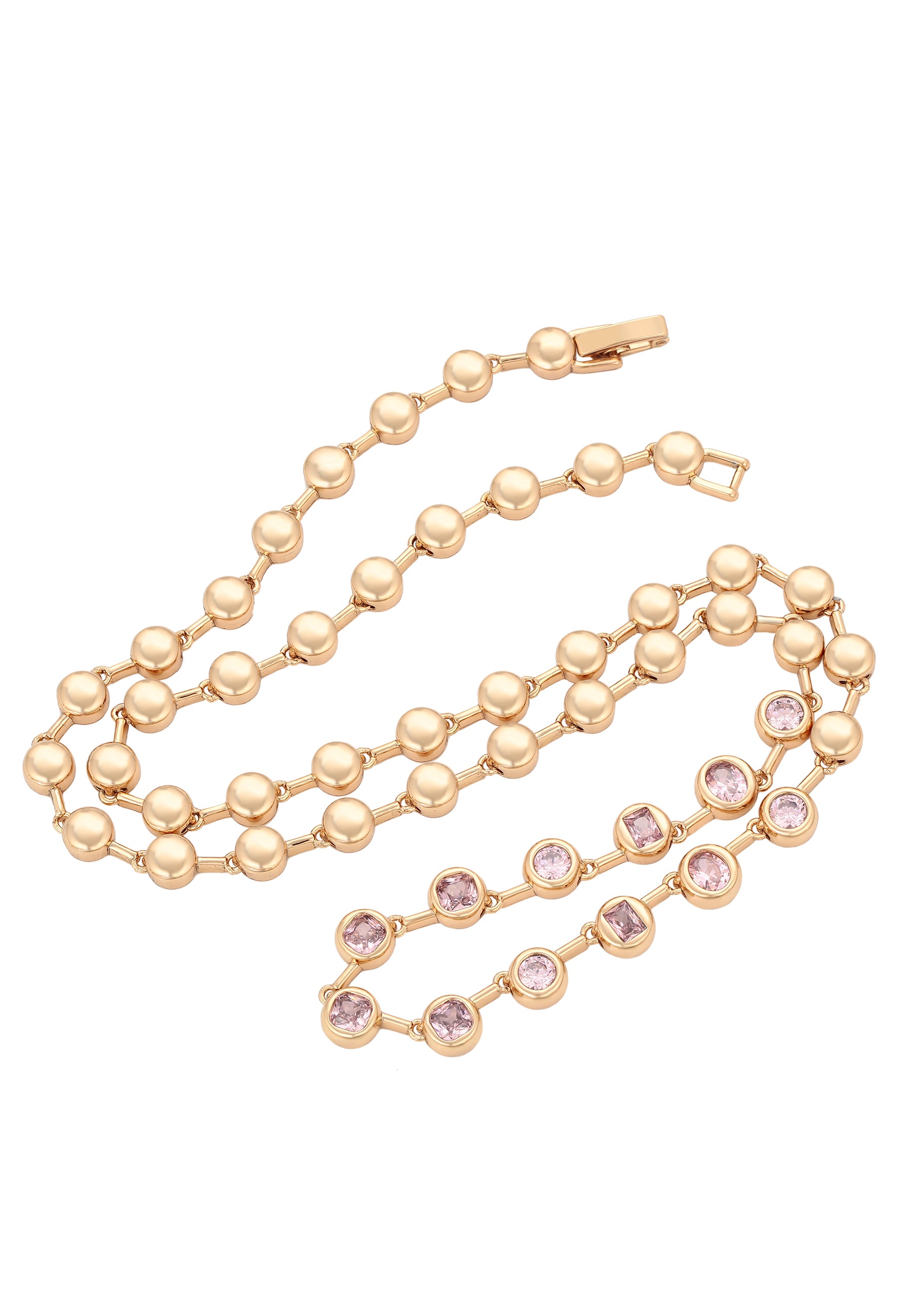 Elevate your look with this link necklace from our Jewelry Collection. Crystal-studded and made from copper with a plain pattern, it radiates elegance and timeless sophistication. The fold-over clasp ensures secure wear, while its shimmering design adds a refined sparkle to any outfit. Perfect for both everyday styling and special occasions, this necklace is a versatile and eye-catching accessory.