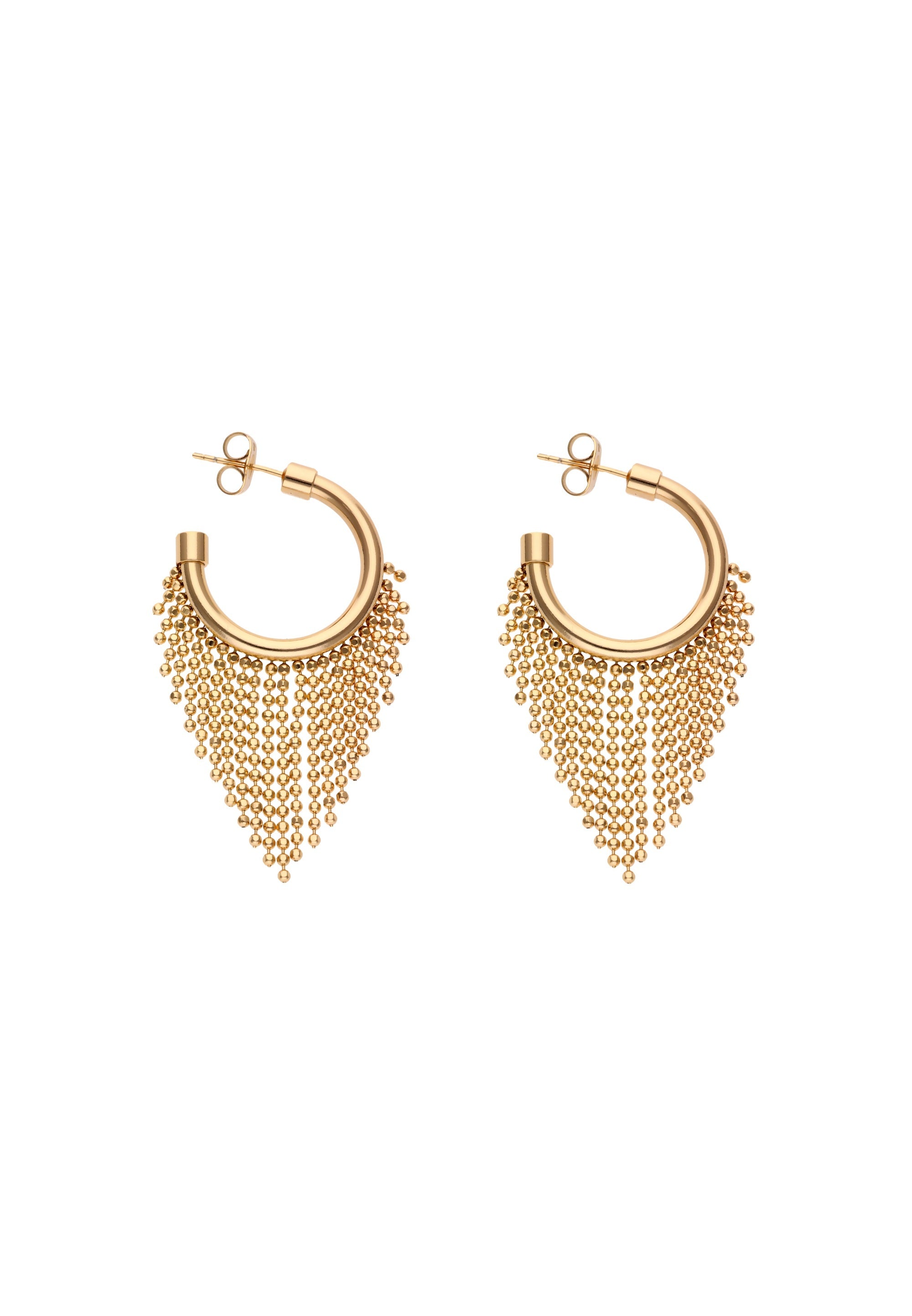 Add a playful yet elegant touch with these hoop earrings featuring a beaded fringe from our Jewelry Collection. Crafted from high-quality copper, they showcase a plain pattern that highlights their timeless and versatile design. Secured with a butterfly clutch for comfort and reliability, these elegant earrings are perfect for elevating everyday outfits or adding a refined accent to special occasions.