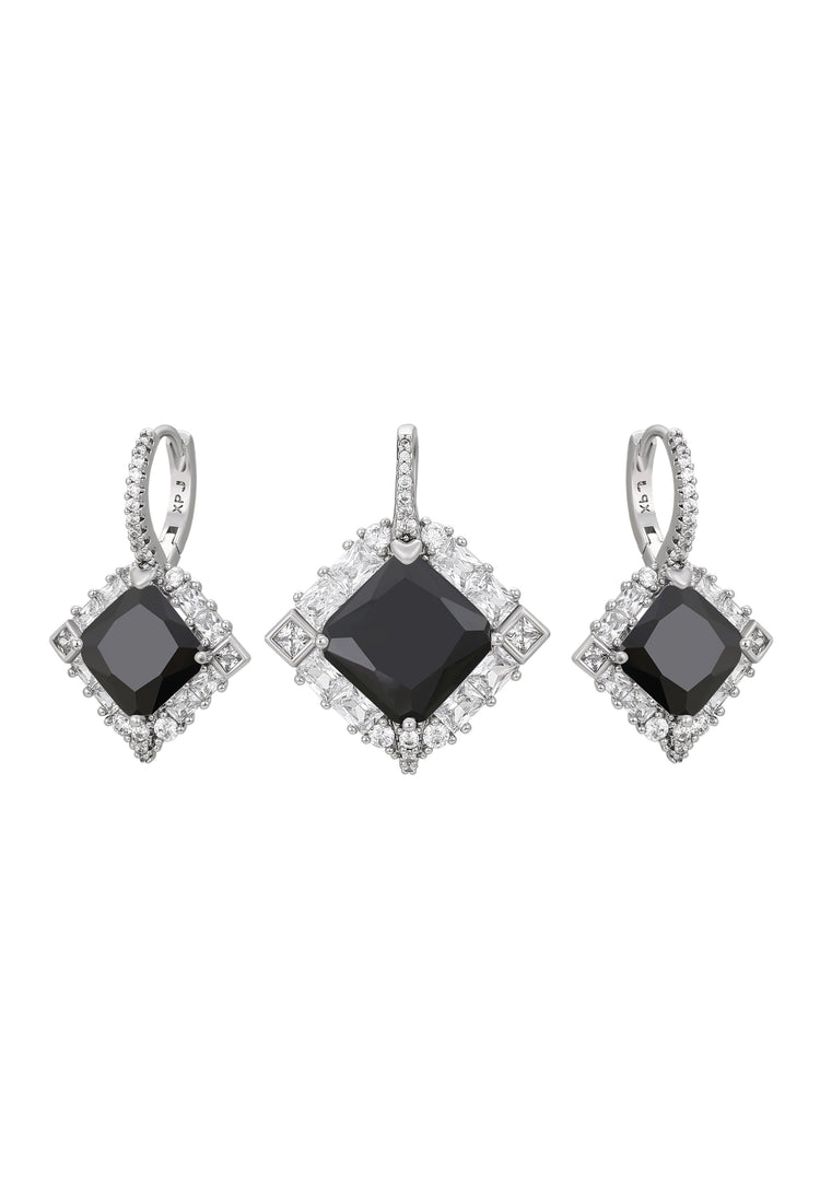 Elevate your style with this luxurious jewelry set from our Jewelry Collection. Featuring a pendant and drop huggie earrings adorned with crystal-studded rhinestones, each piece is made from copper with a shiny finish. The drop earrings feature hinged closures for secure and comfortable wear. Elegant, shimmering, and timeless, this set adds refined sophistication and a touch of glamour to any outfit, perfect for both everyday wear and special occasions.
